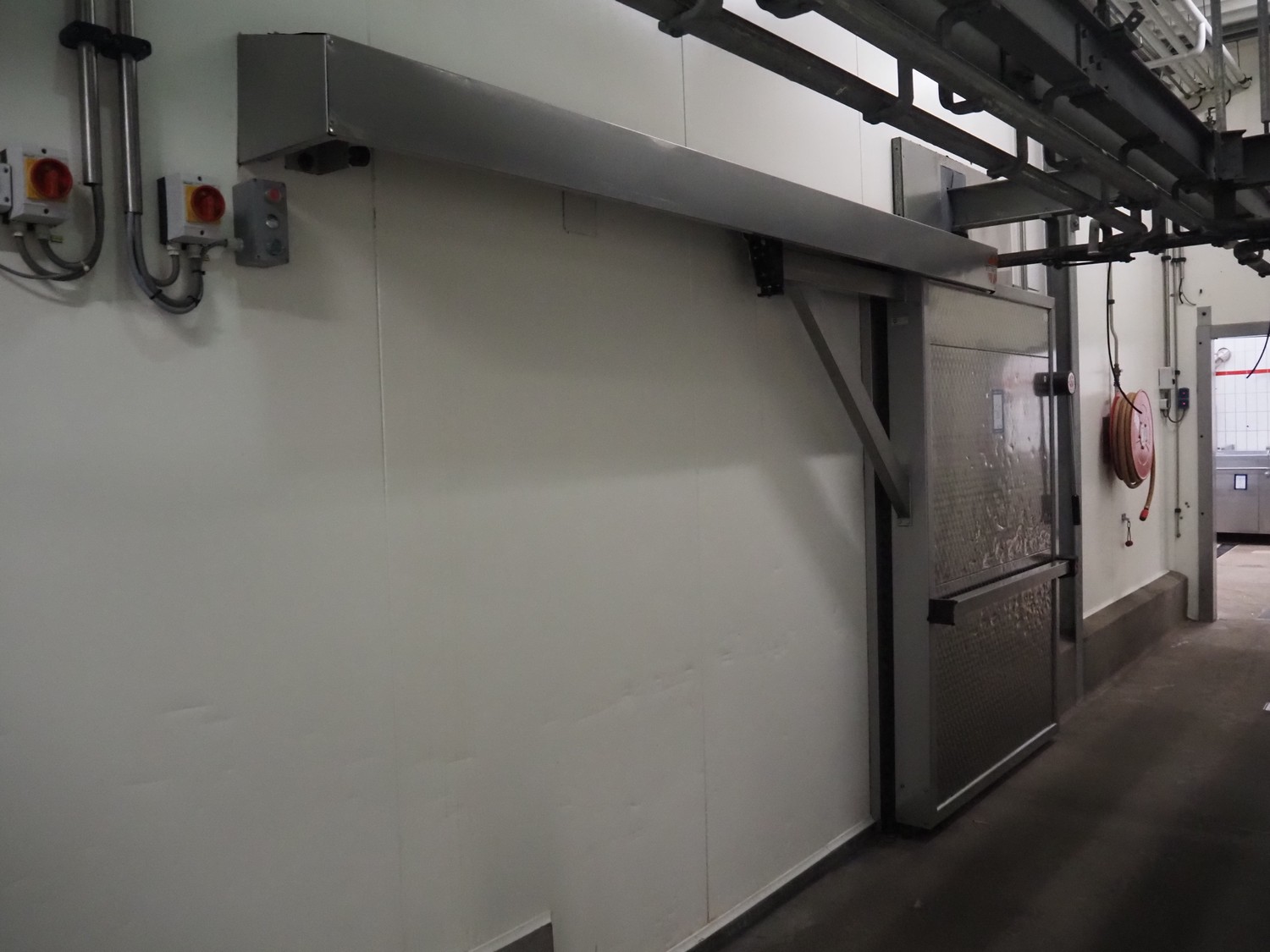 Metaflex s/s refrigeration sliding door, dimensions door: 1600 mm x 2250 mm, thickness: 150 mm, rail length: 3000 mm.