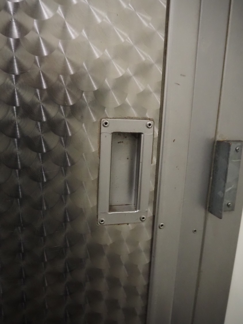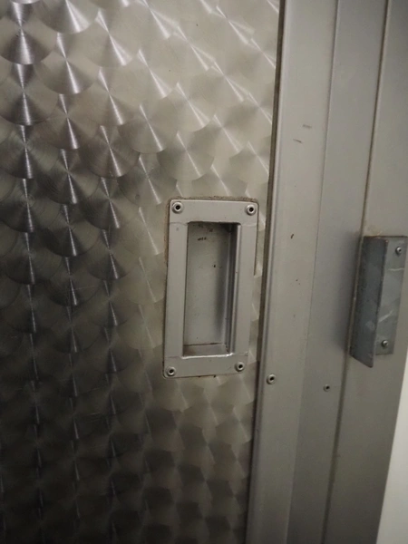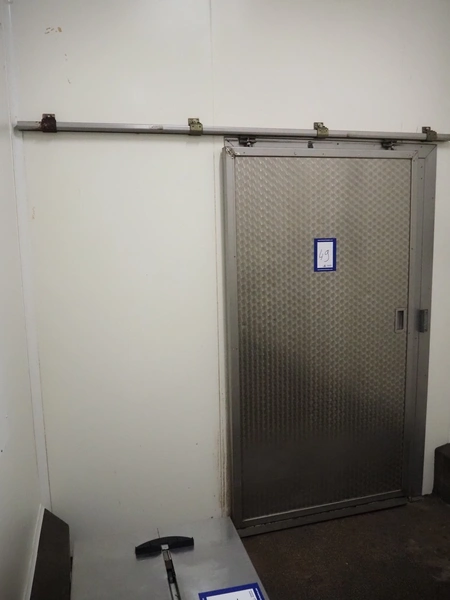 S/s sliding door, dimensions door: 1220 mm x 2300 mm, thickness: 75 mm, rail length: 2000 mm.