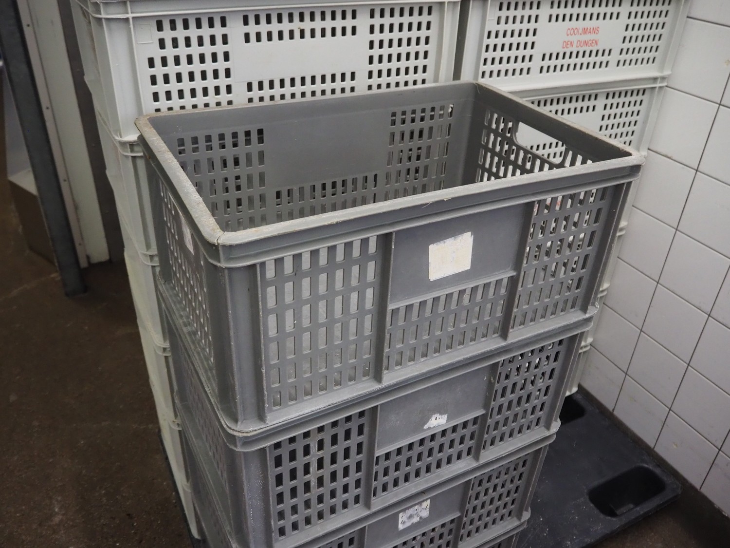 23 plastic crates, dimensions: (19x) 600 mm x 400 mm x 190 mm, dimensions: (4x) 600 mm x 400 mm x 250 mm.