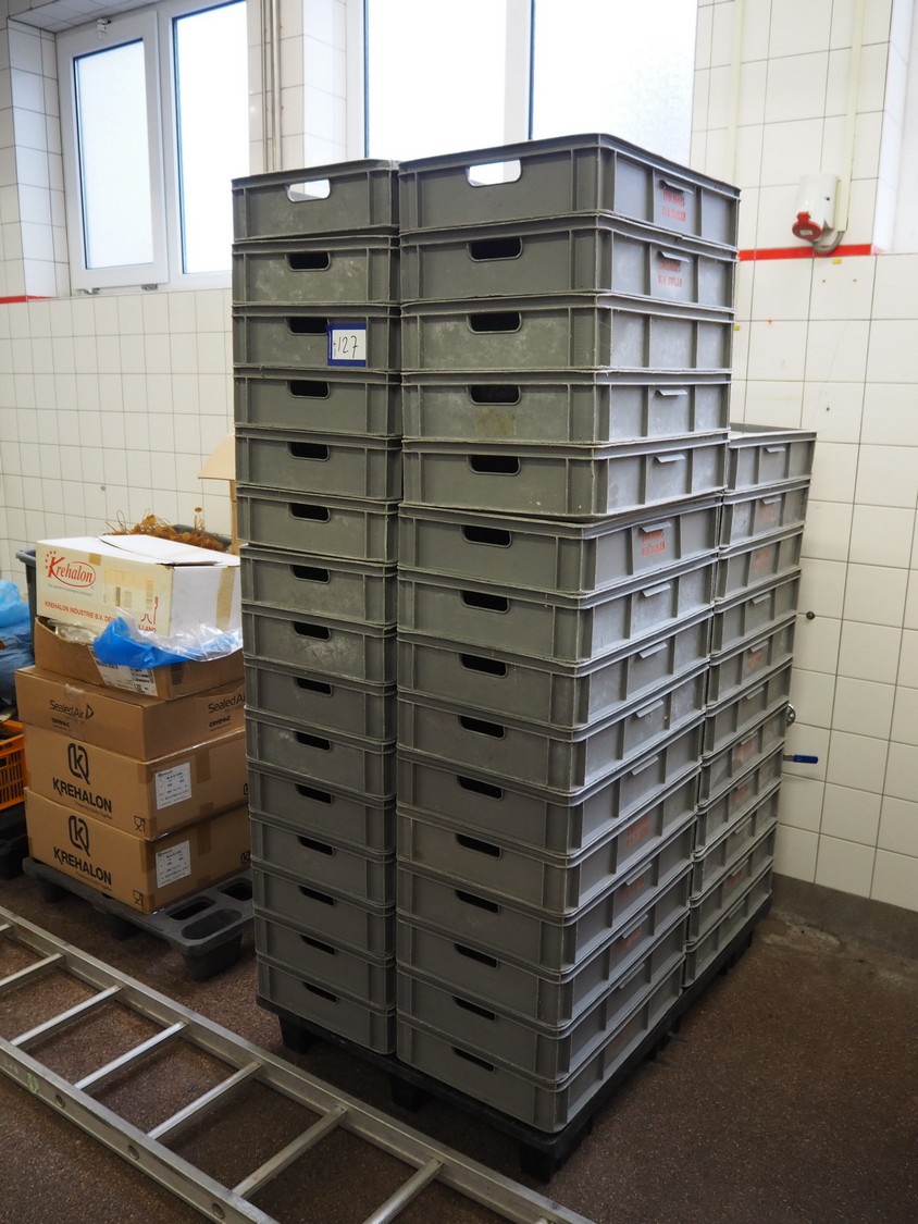 49 plastic crates, dimensions: (41x) 600 mm x 400 mm x 110 mm.