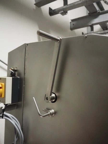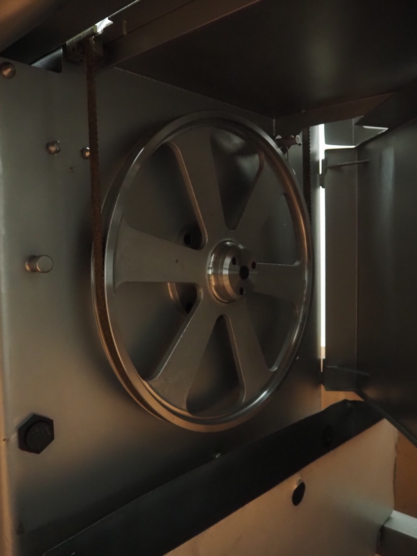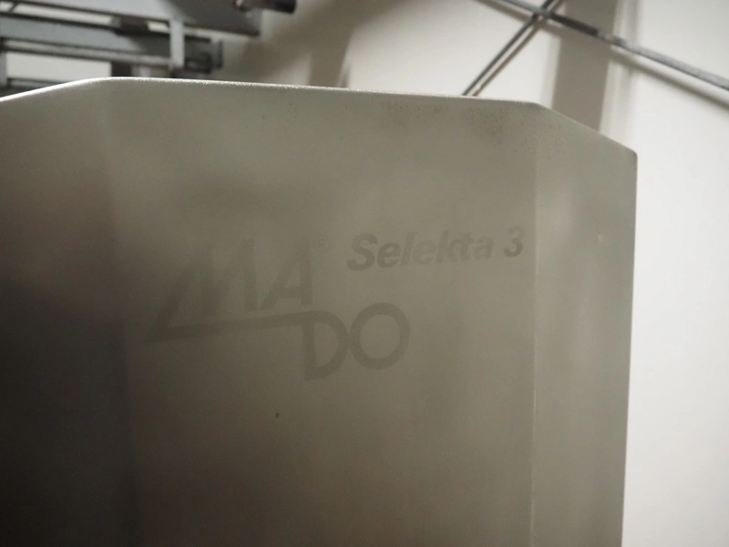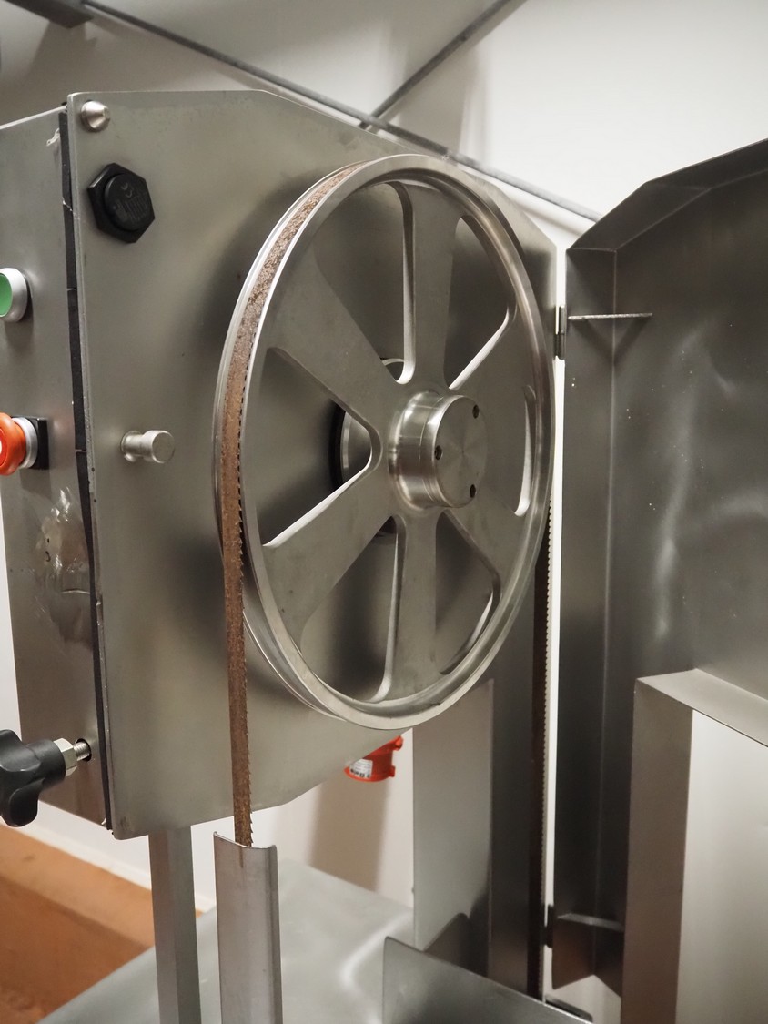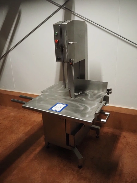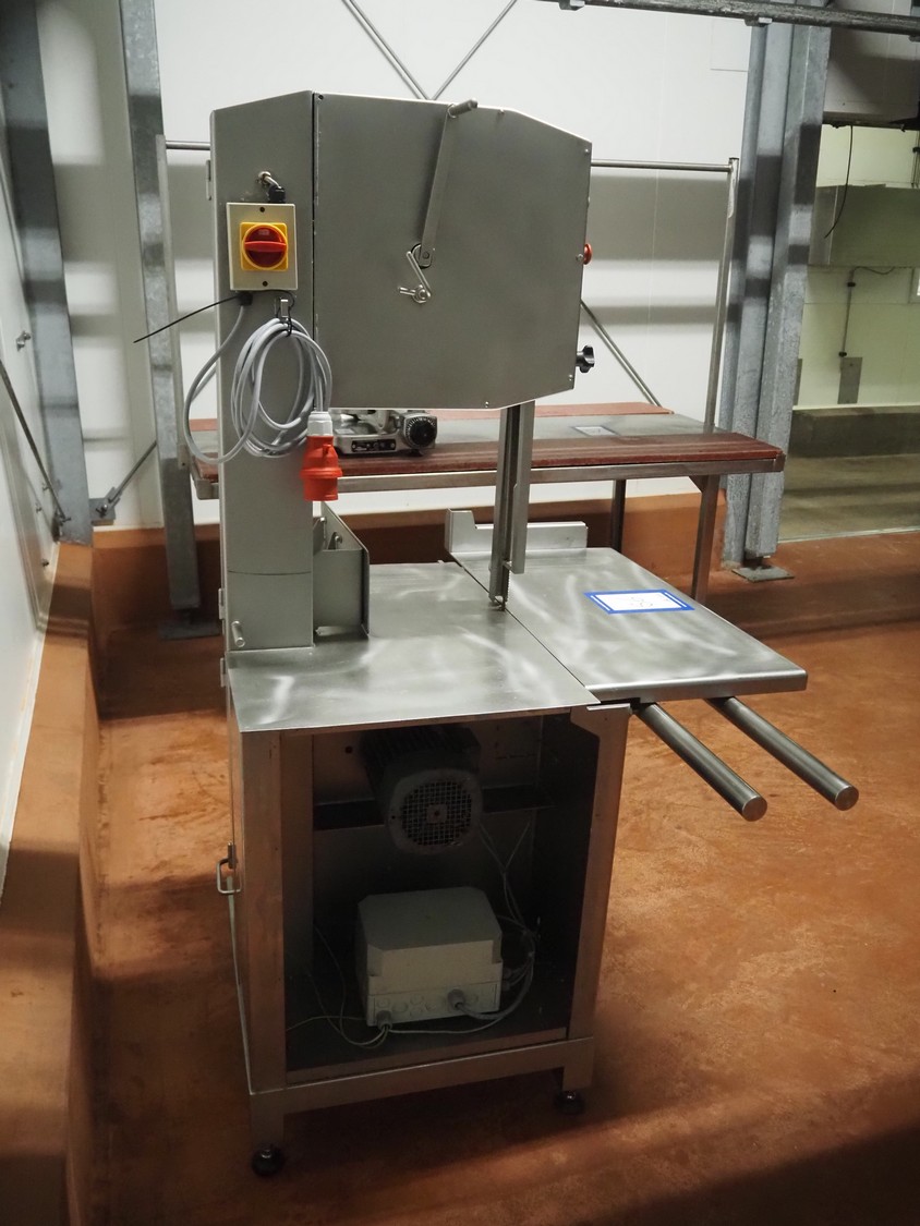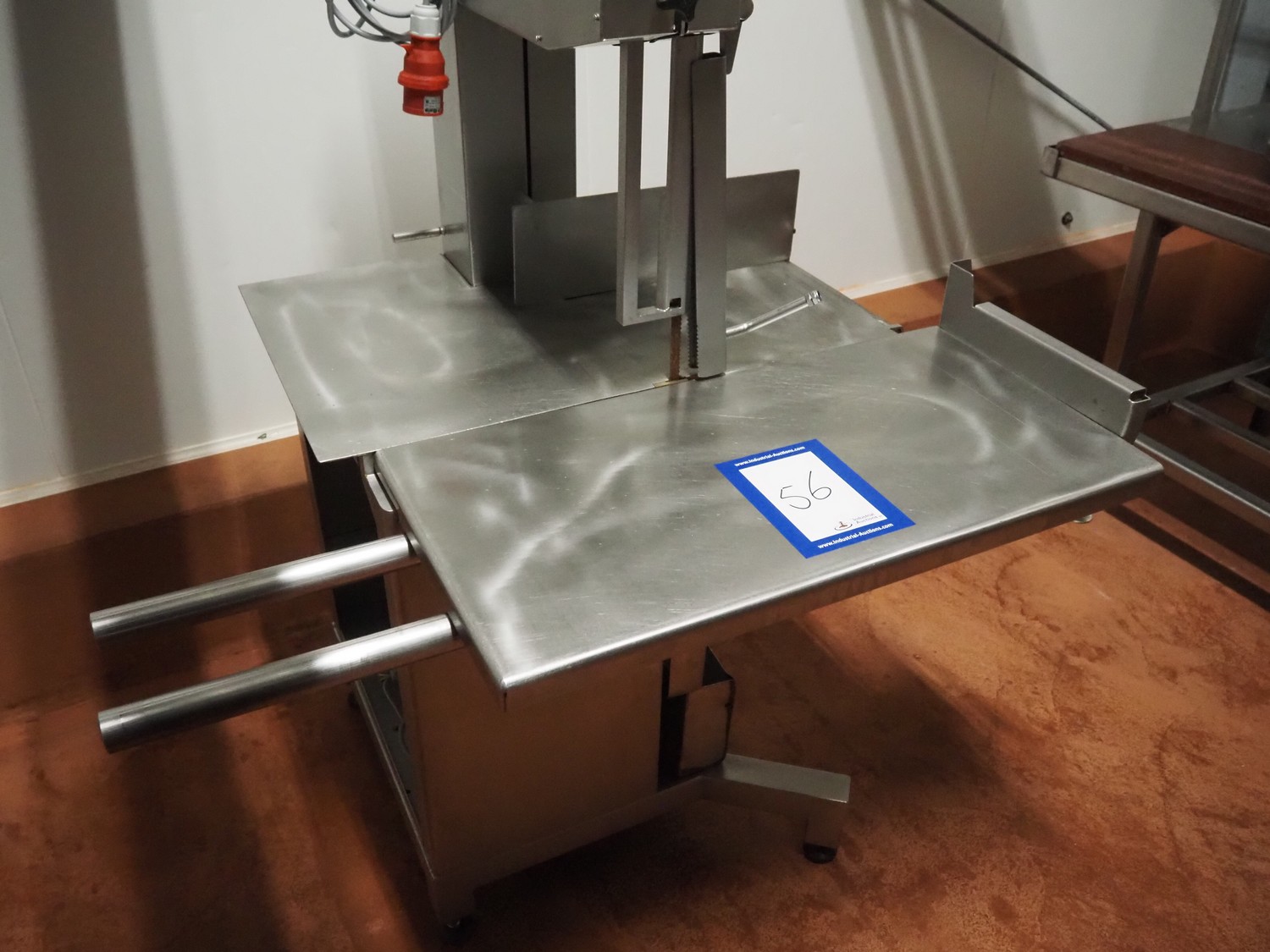 Mado bandsaw, type: MKB 654, serial number: 30404, year of construction: 2003, 230/400 V, 3 Ph, 50 Hz, 8.6/5.0 A, table dimensions: 850 mm x 720 mm, total dimensions: 1300 mm x 1000 mm x 1800 mm. Missing cover.