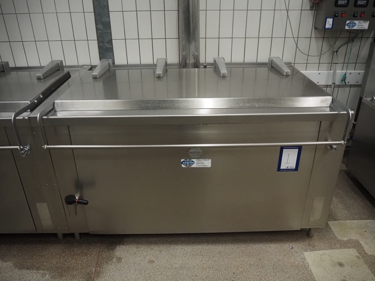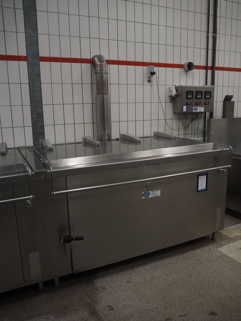Bayha & Strackbein GmbH cooking vessel, type: 8110-7, year of construction: 2008, 230 V, 50 Hz, 0.15 kW, capacity: 700 liter, inside dimensions: 1800 mm x 800 mm x 500 mm, total dimensions: 2000 mm x 1400 mm x 2000 mm.