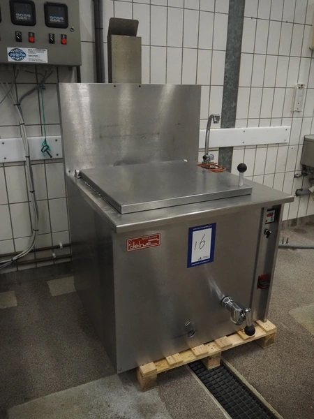 Delrue cooking vessel, model: A200A1, number: 20030911A, year of construction: 2003, 18.5 kW, inside dimensions: 620 mm x 620 mm x 540 mm, total dimensions: 900 mm x 940 mm x 1120 mm.