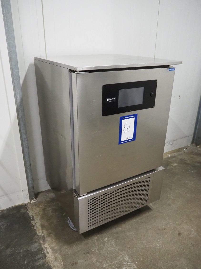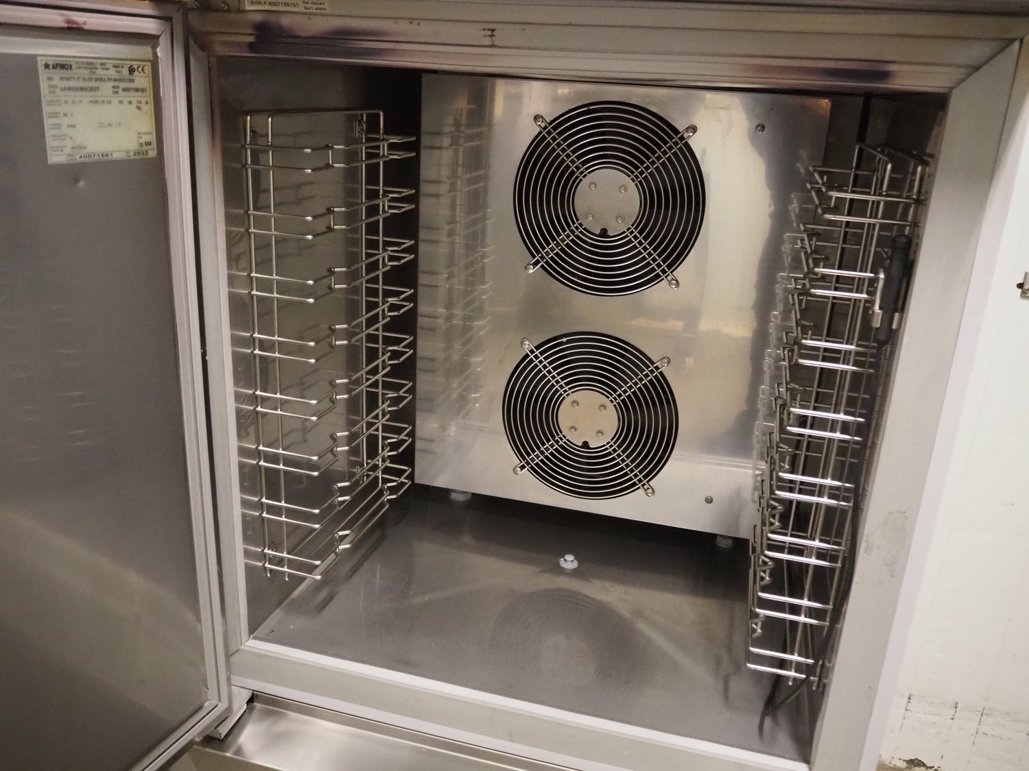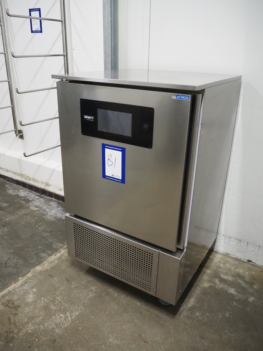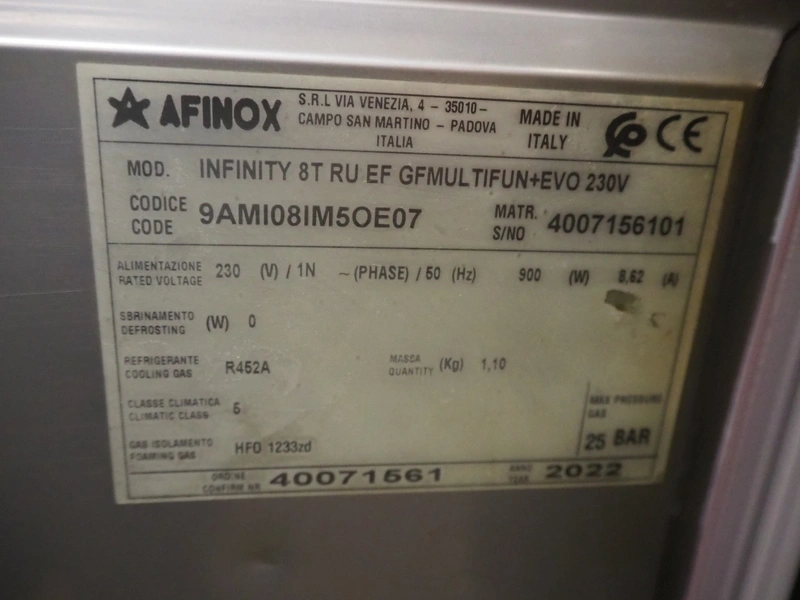 Afinox blast chiller, model: Infinity 8T RU EF GFMULTIFUN+EVO 230V, serial number: 4007156001, year of construction: 2022, 230 V, 1 Ph, 50 Hz, 8.62 A, 900 W, refrigerant: R452A/1.10 kg, 8 floors, floor dimensions: 600 mm x 300 mm, total dimensions: 790 mm x 800 mm x 1330 mm.