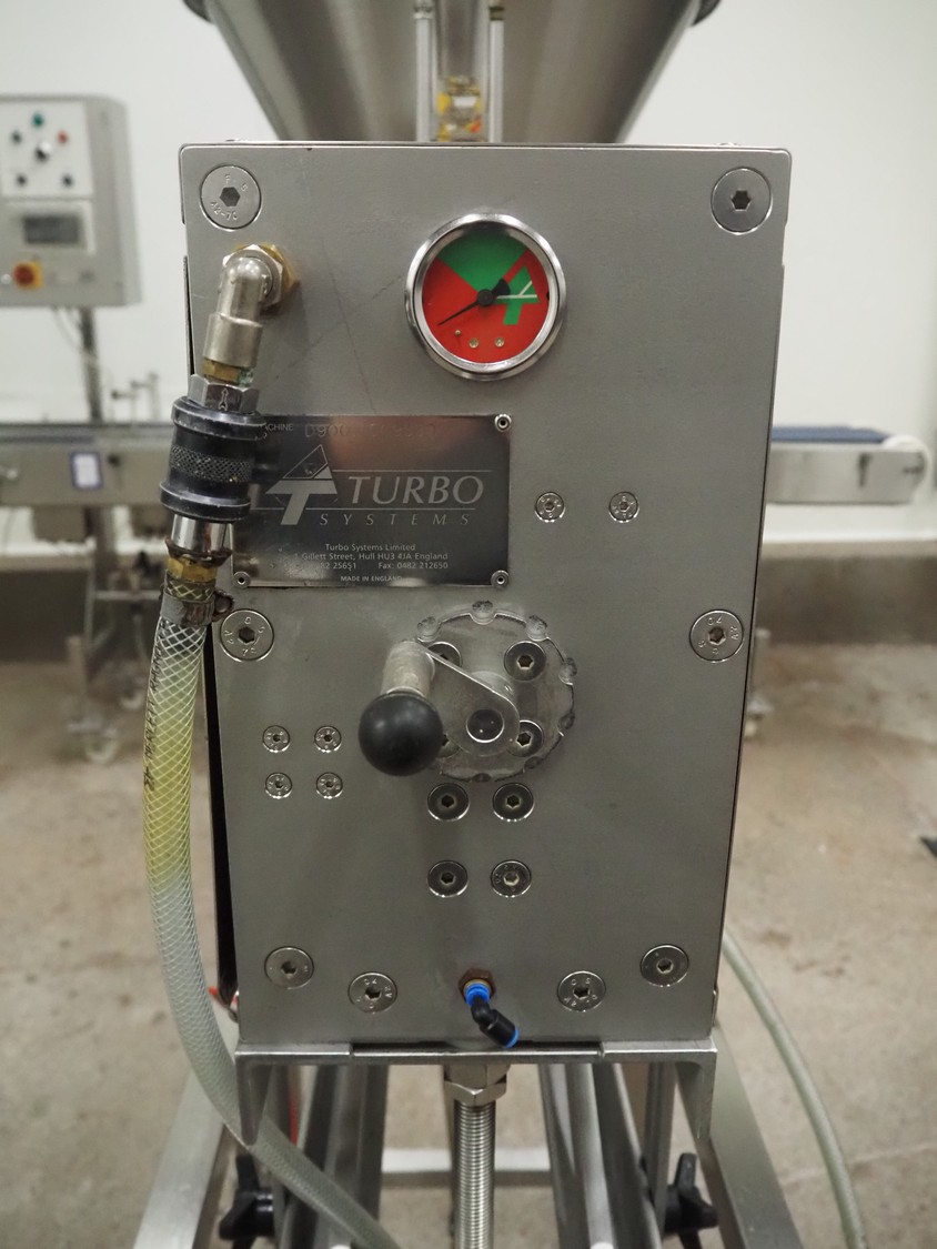 Turbo Systems Limited mobile depositor, machine number: D90014509880, dimensions: 1100 mm x 400 mm x 1680 mm.