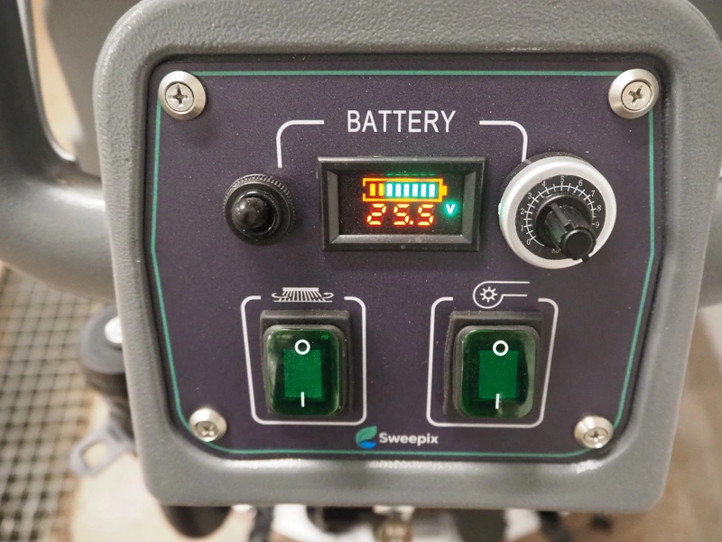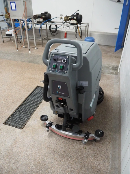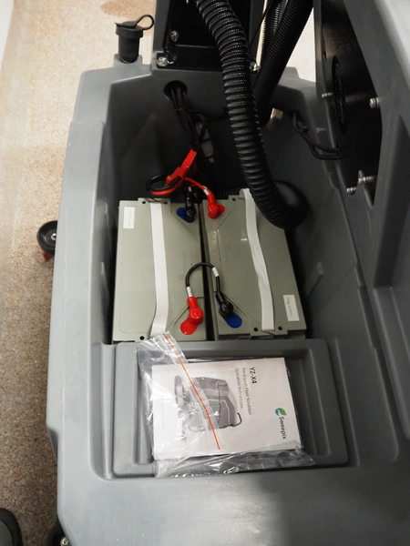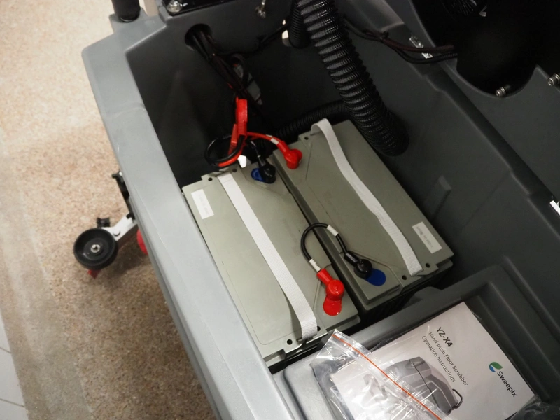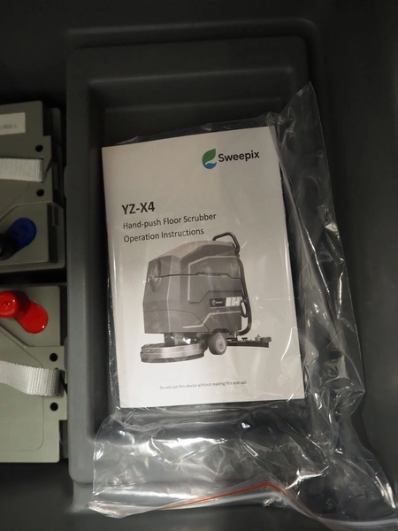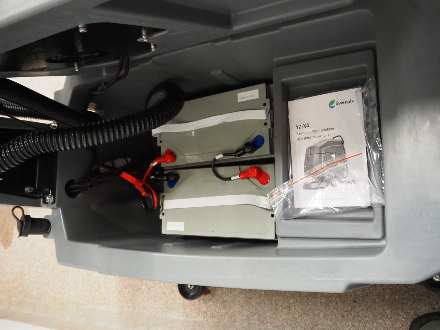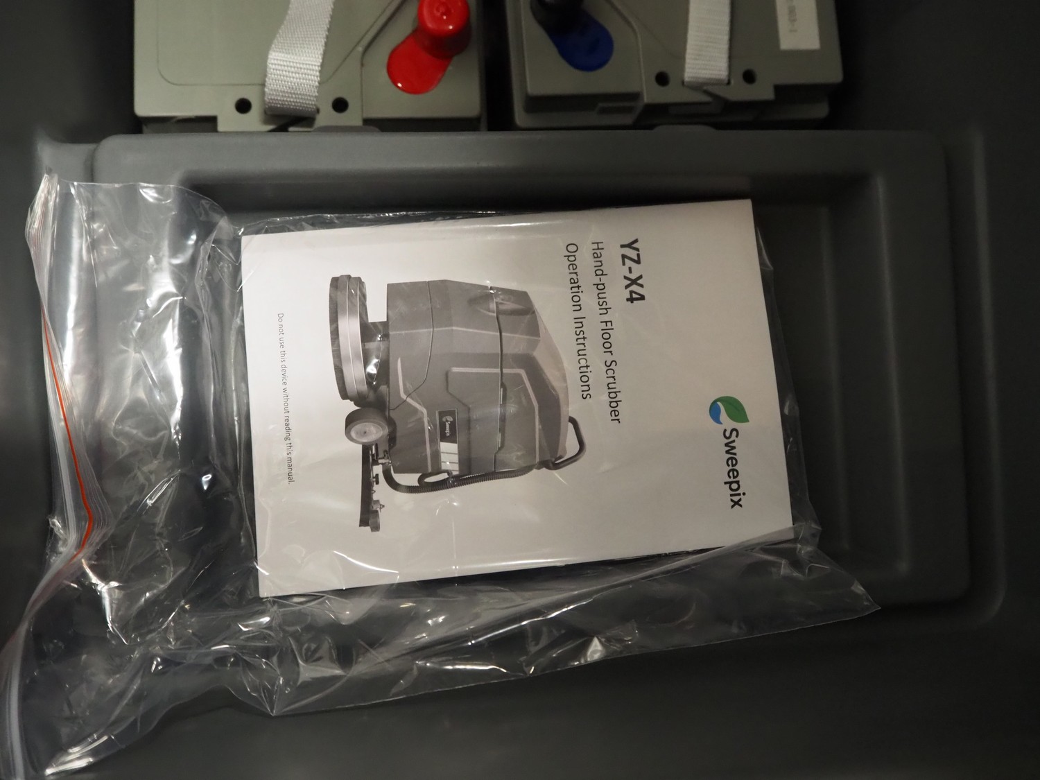 Sweepix floor scrubbing machine, serial number: 57277CX20250826004, cleaning width: 560 mm, squeegee width: 825 mm, working efficiency: 3600 m², battery capacity: 24V/103Ah, water tank capacity: 55/65 liter, 550/300 W, total dimensions: 1350 mm x 700 mm x 1200 mm. New, never used.