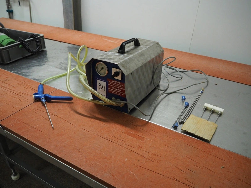 Hand injector, type: HI-M, machine number: 1814.01, year of construction: 2001, 230 V, 50 Hz, 0.09 kW, dimensions: 450 mm x 200 mm x 300 mm.