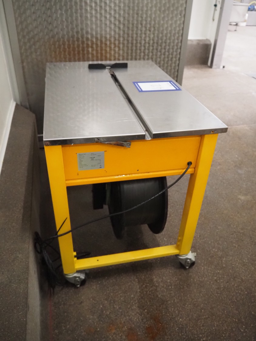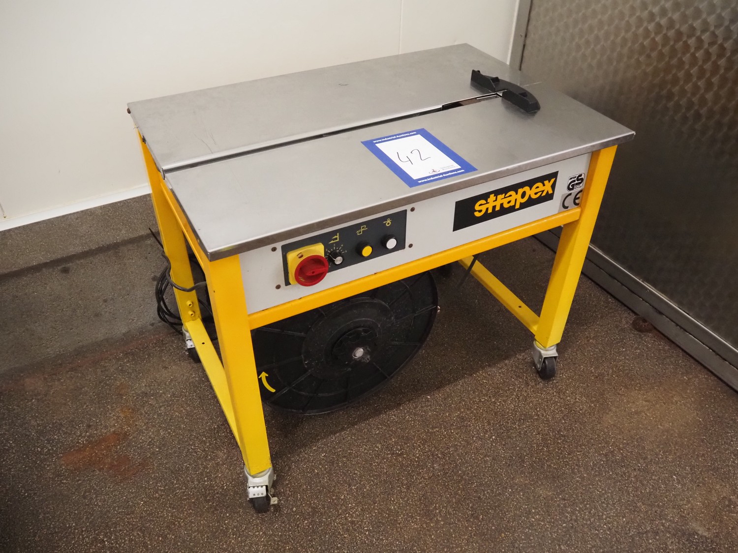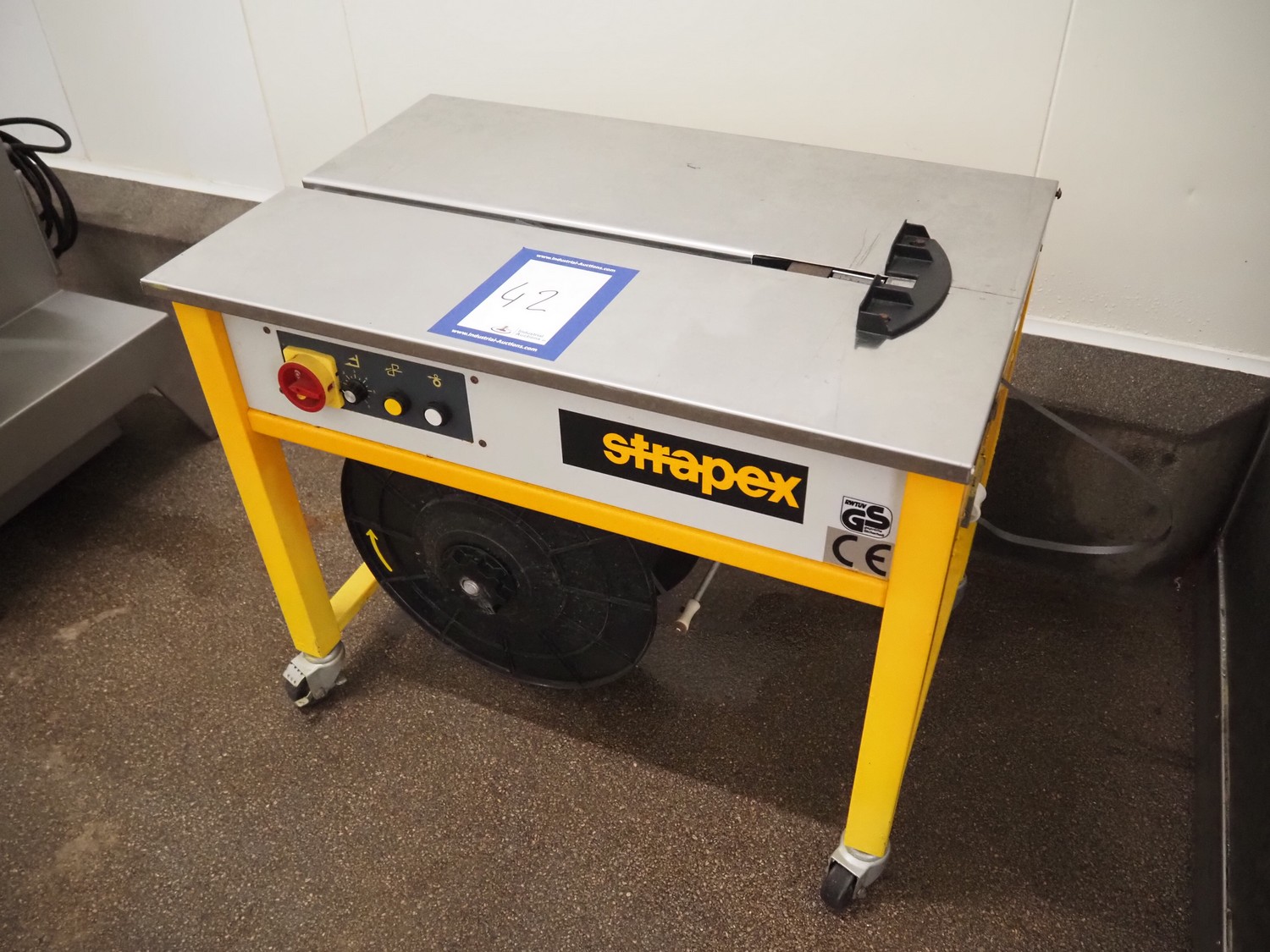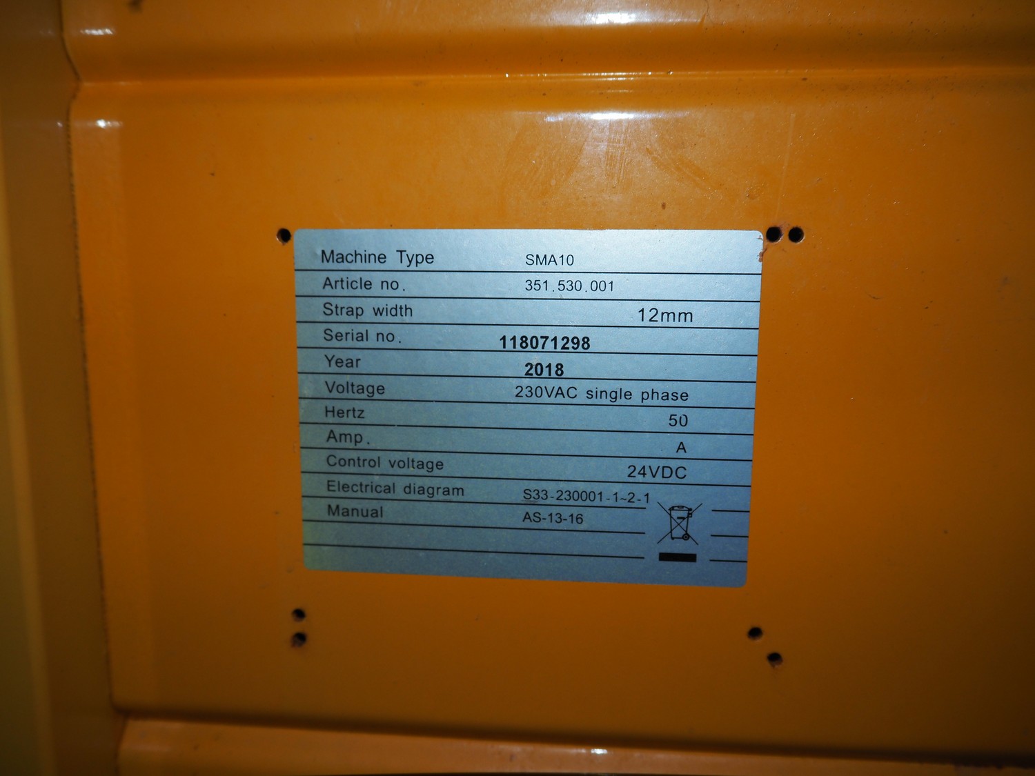 Strapex mobile binding machine, type: SMA10, serial number: 118071298, year of construction: 2018, 230 V, 50 Hz, strap width: 12 mm, dimensions: 900 mm x 600 mm x 750 mm.