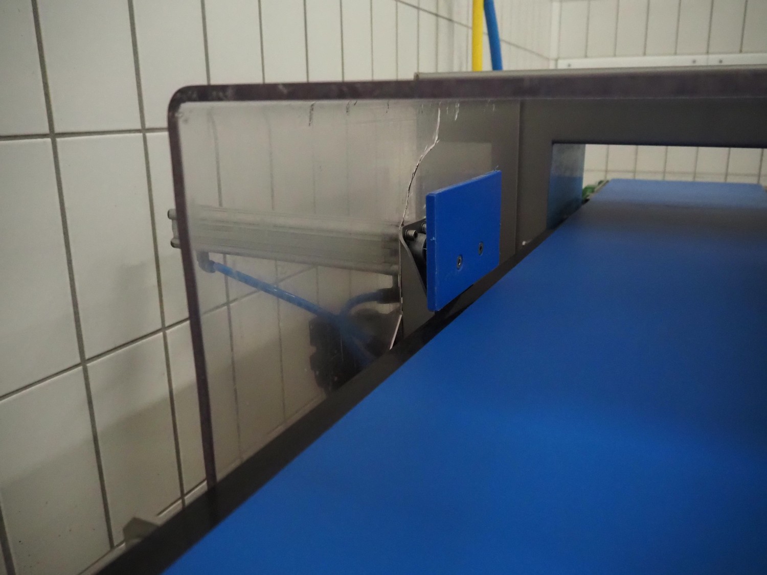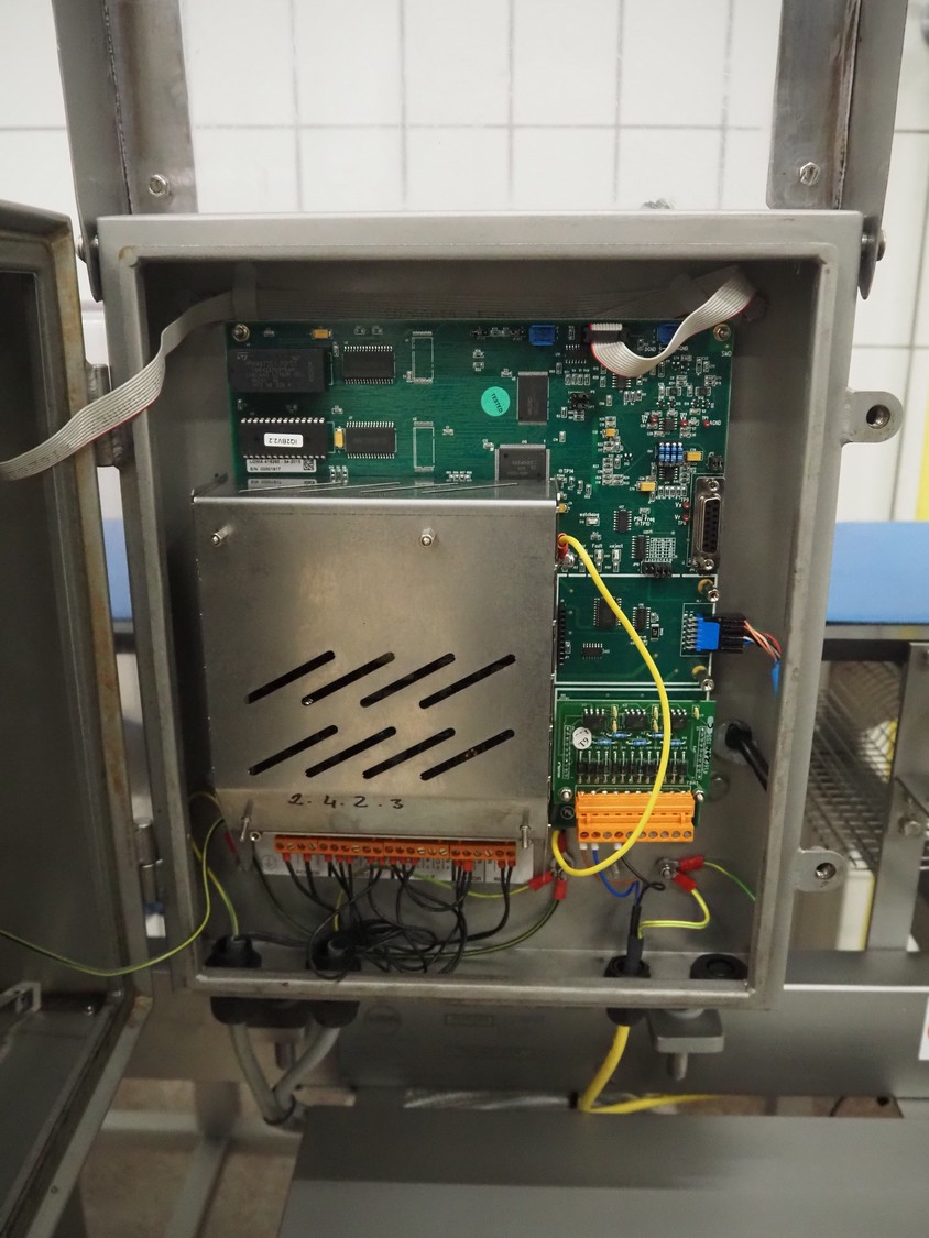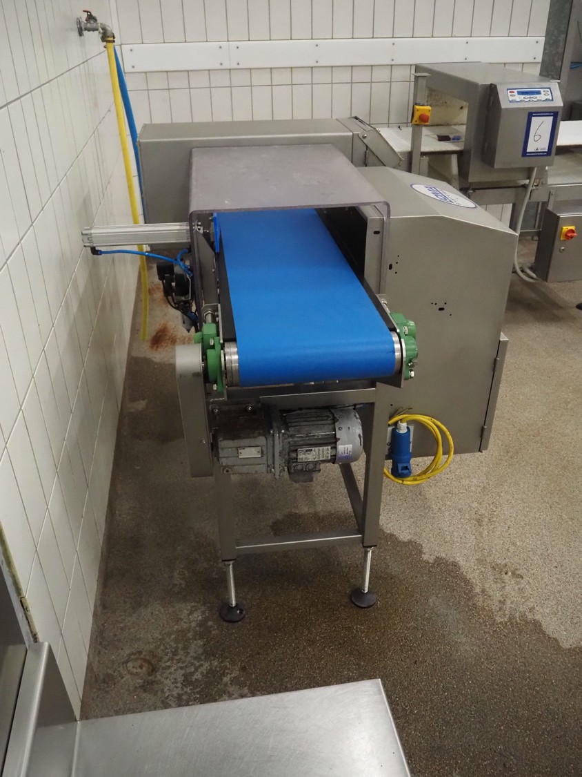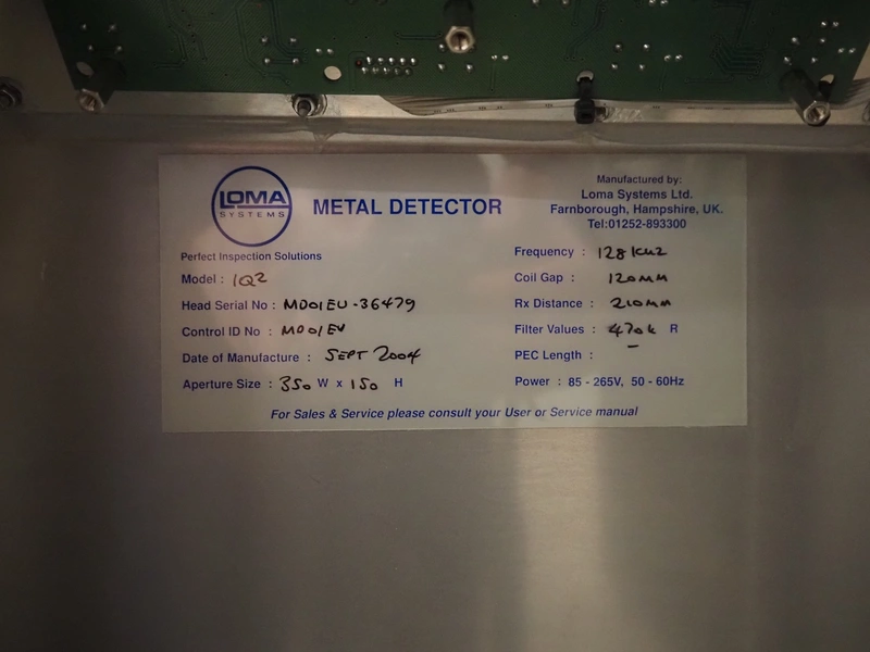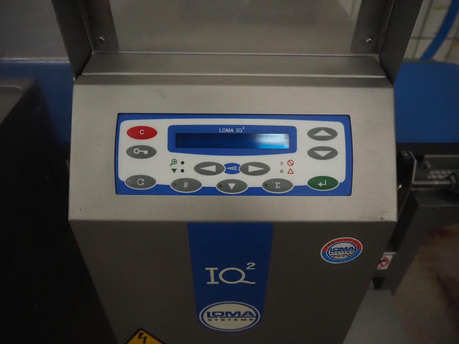 Loma Systems metal detector with rejector, model: IQ², serial number: MDOIEU-36479, year of construction: Sept 2004, plastic belt, belt width: 300 mm, clearance: 350 mm x 120 mm, total dimensions: 1700 mm x 1100 mm x 1200 mm.