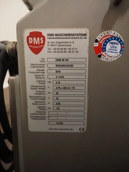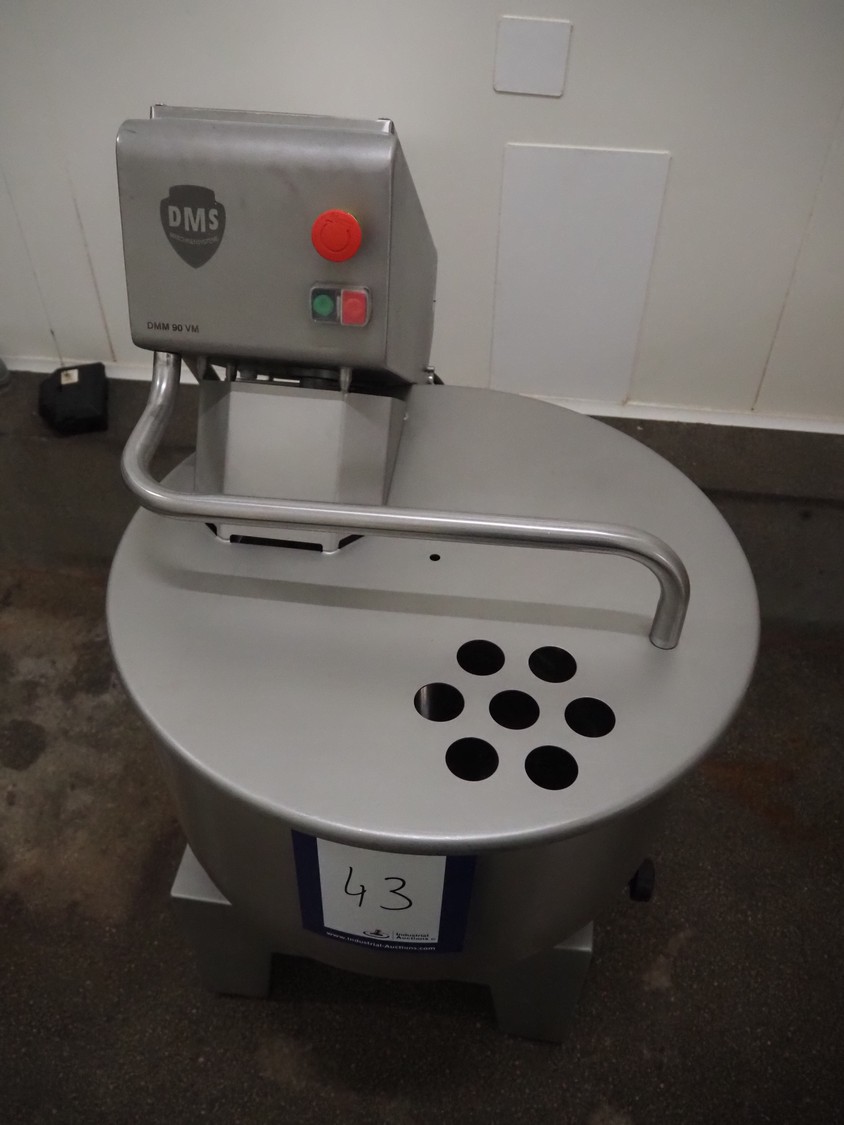 DMS mixer, type: DMM 90 VM, serial number: S 17476, year of construction: 2019, 400 V, 3 Ph, 50 Hz, 0.85 A, 0,75 kW, weight: 110 kg, volume: 90 liter, dimensions: 600 mm x 900 mm x 1120 mm.