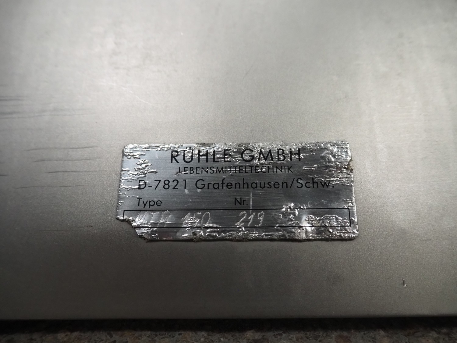 Rühle GmbH vacuum tumbler, type: MTR 150, number: 219, volume: 150 liter, dimensions: 1100 mm x 750 mm x 1400 mm.