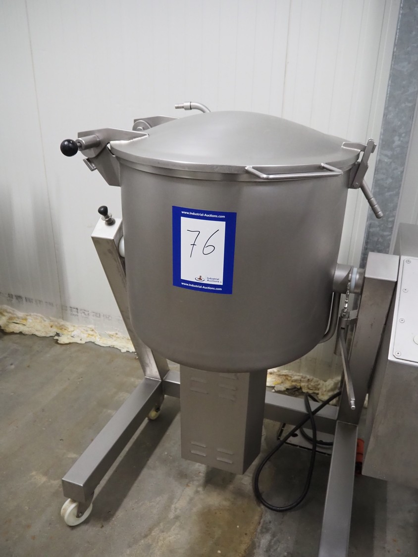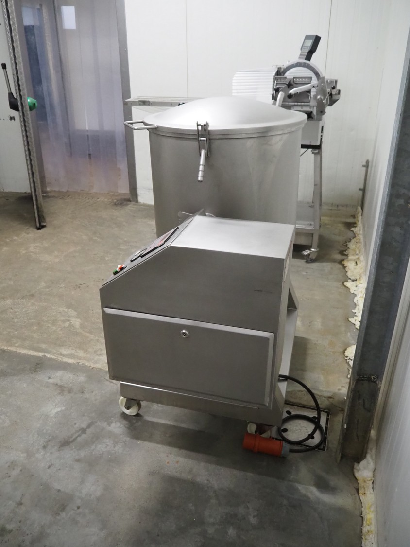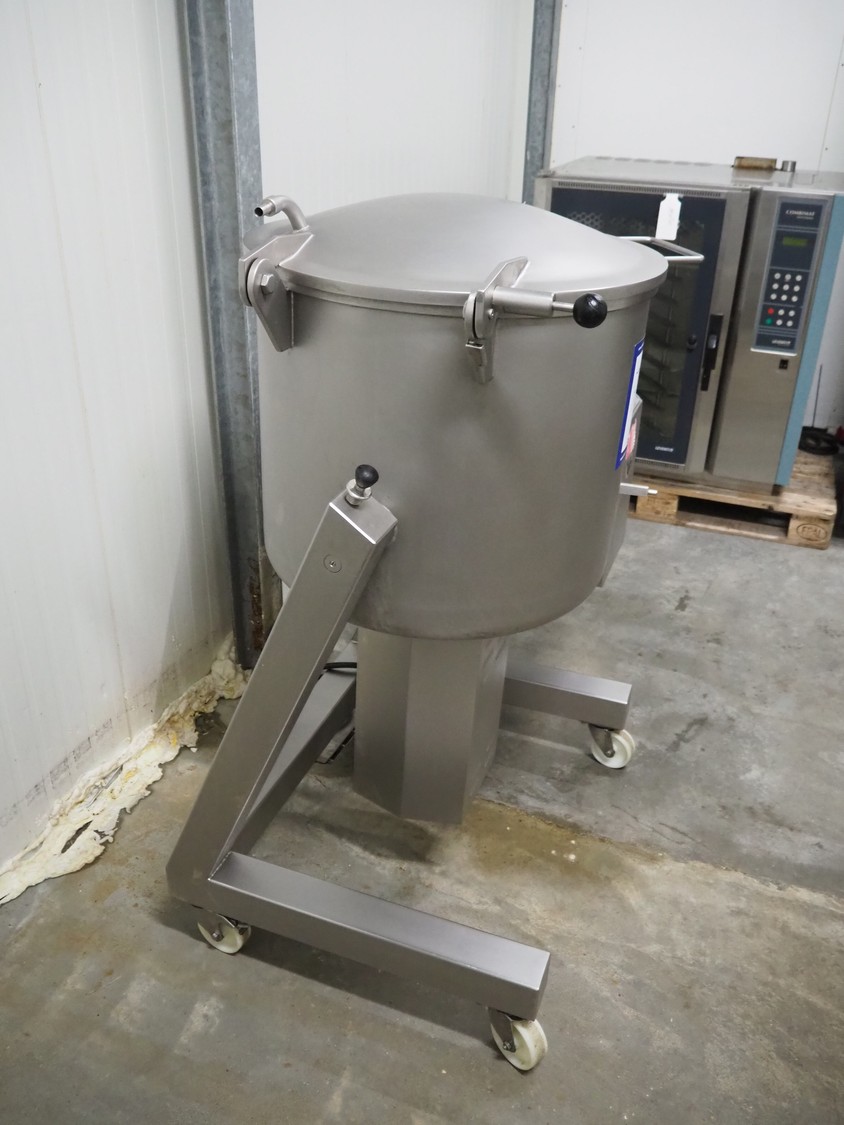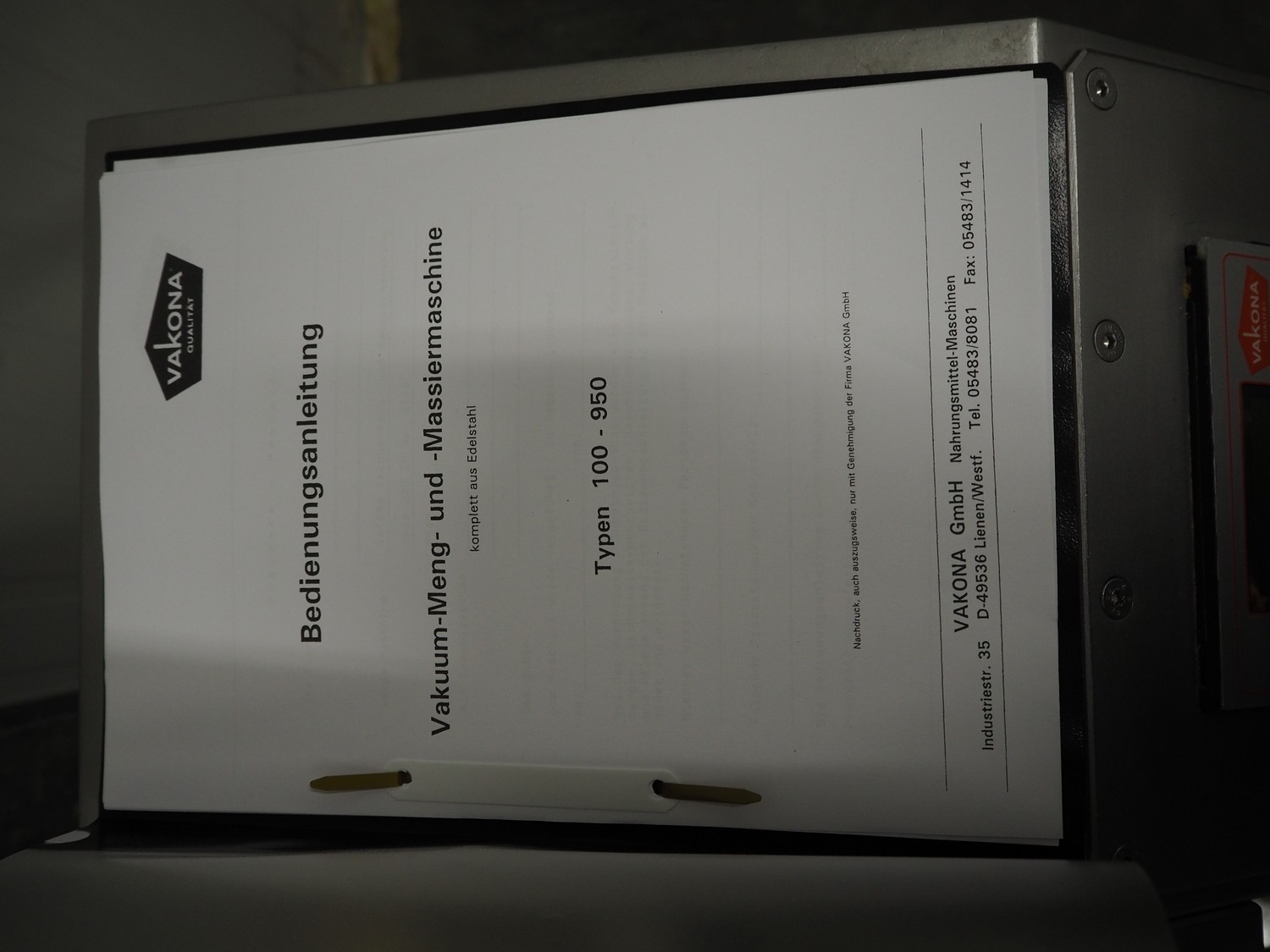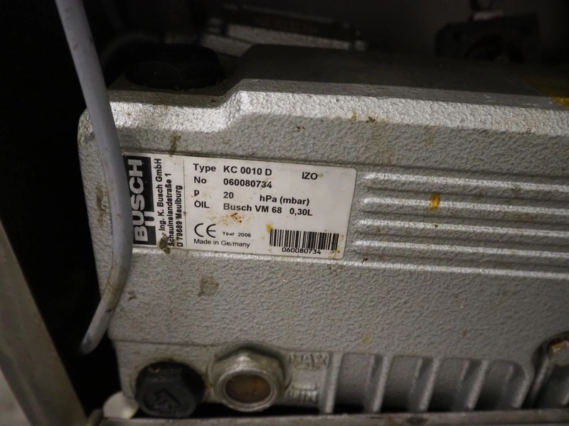 Vakona GmbH mobile vacuum tumbler, type: 150 IPV, year of construction: 2006, 400 V, 3 Ph, 50 Hz, 16 A, 1 kW, capacity: 150 liter, Busch vacuum pump, type: KC 0010 D, capacity: 10 m³ per hour, dimensions: 1200 mm x 700 mm x 1300 mm.