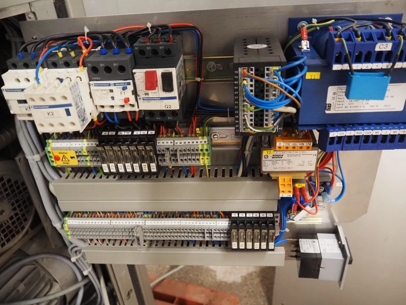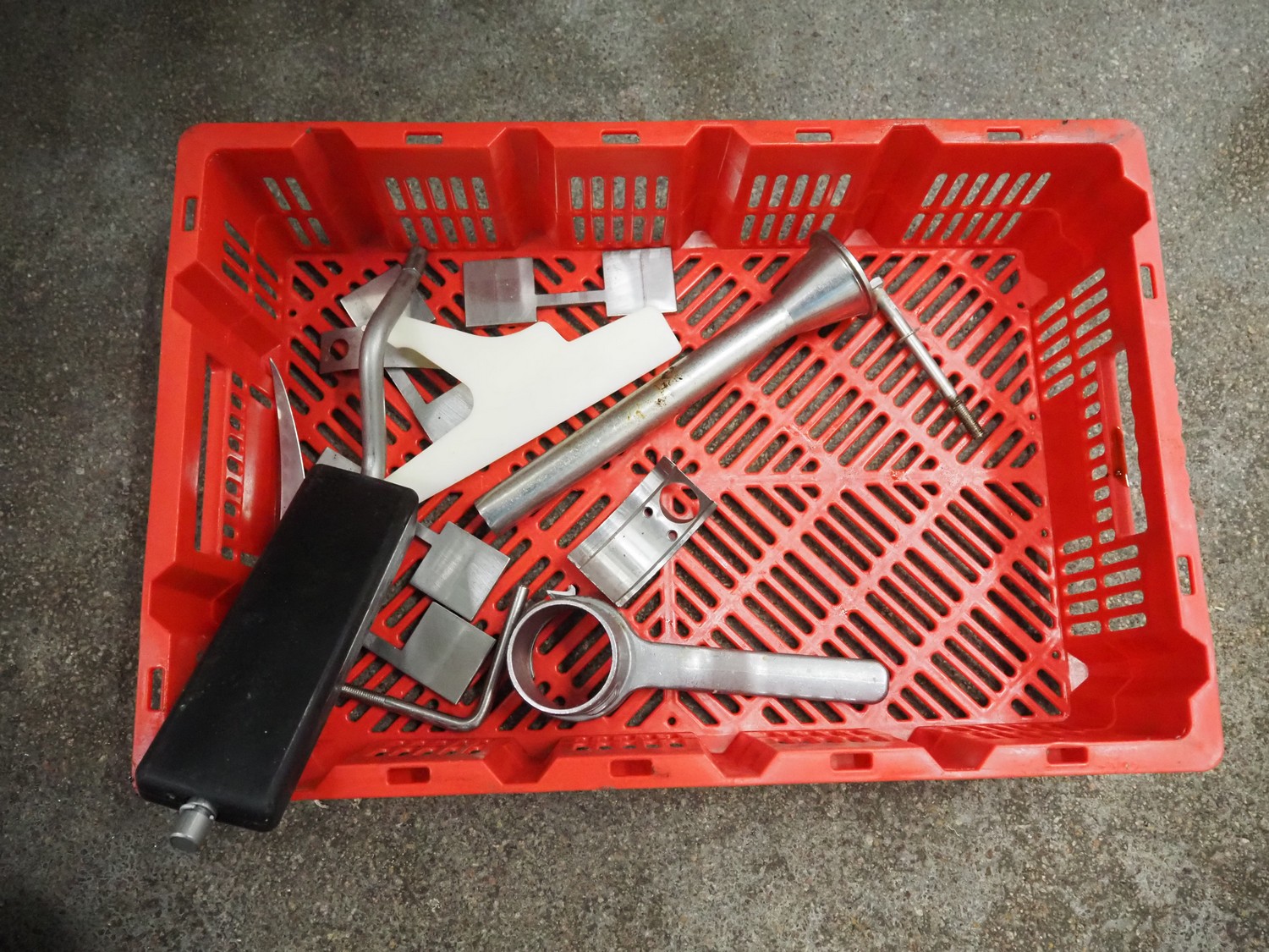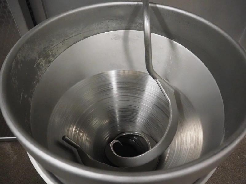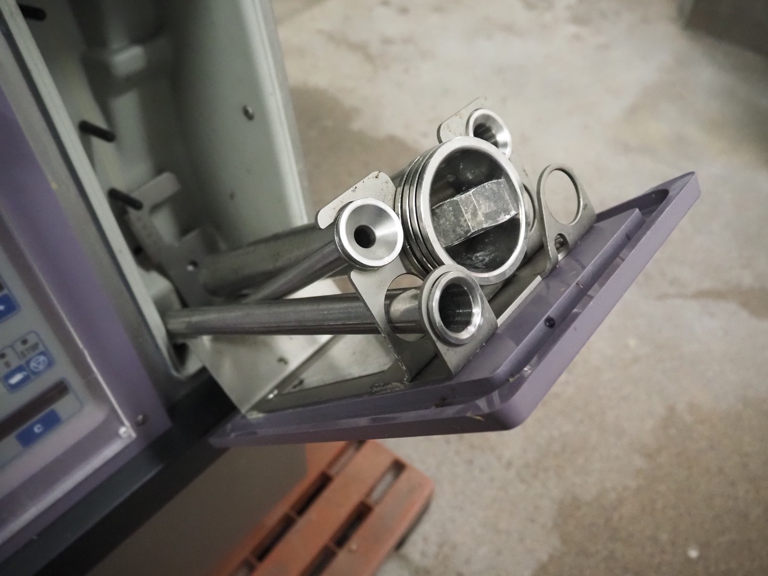 Handtmann vacuum filling machine, type: VF50, number: 19315, year of construction: 2005, 400 V, 3 Ph, 50 Hz, 11 A, 4 kW, dimensions: 850 mm x 500 mm x 1600 mm.