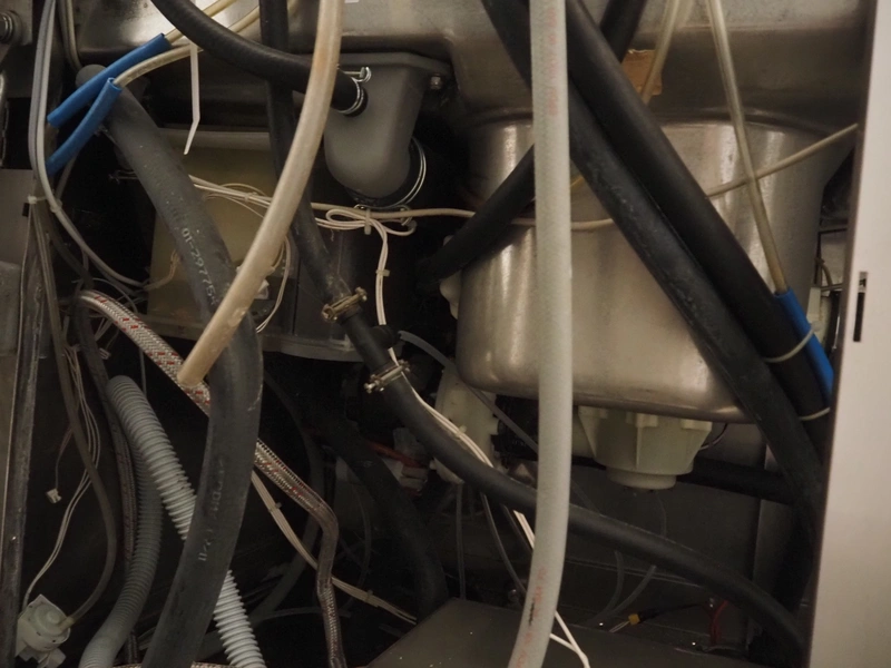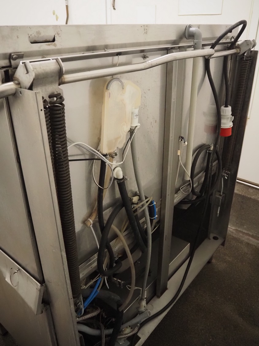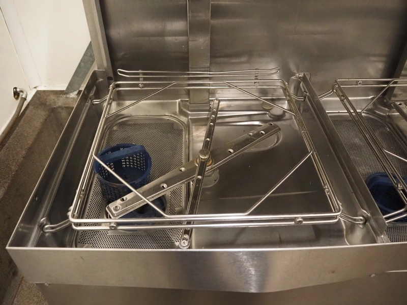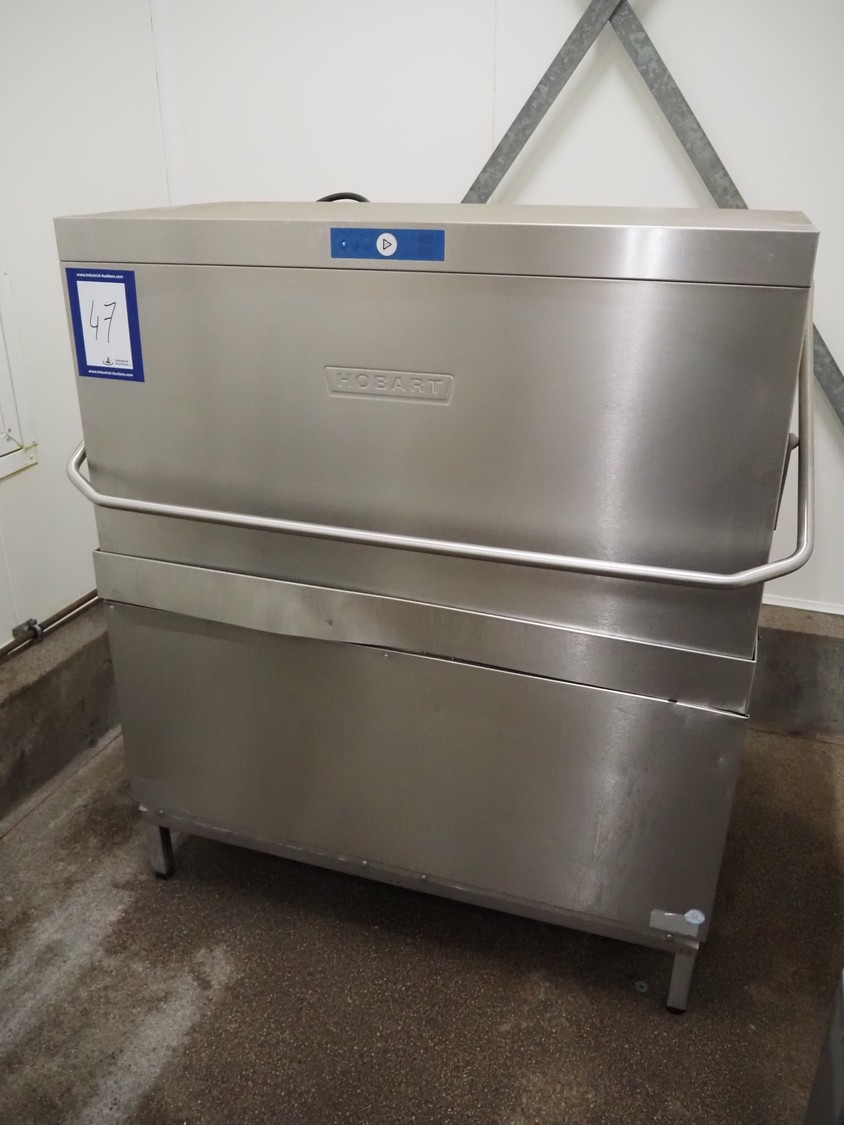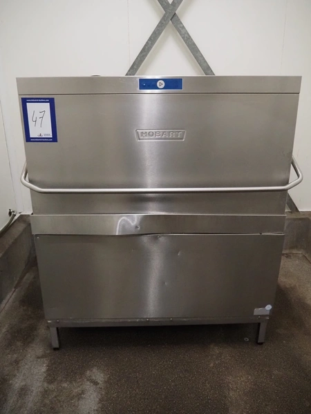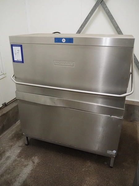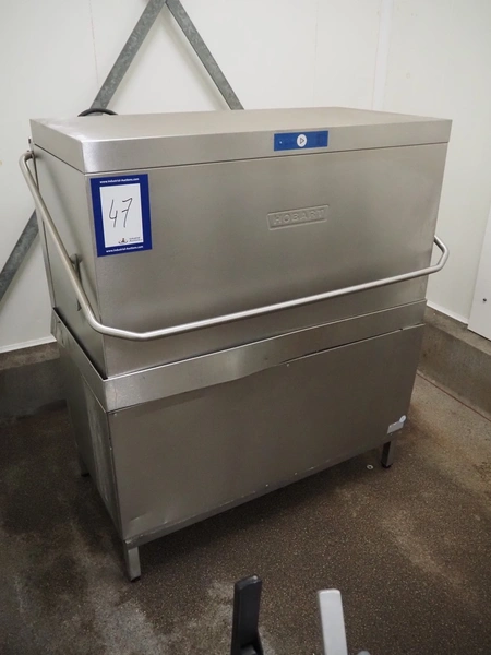 Hobart double dishwasher, inside dimensions: (2x) 300 mm x 500 mm x 400 mm, total dimensions: 1350 mm x 850 mm x 1500 mm. Technical condition unknown.