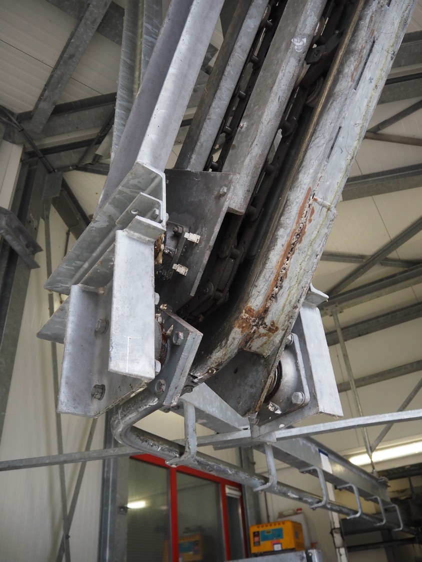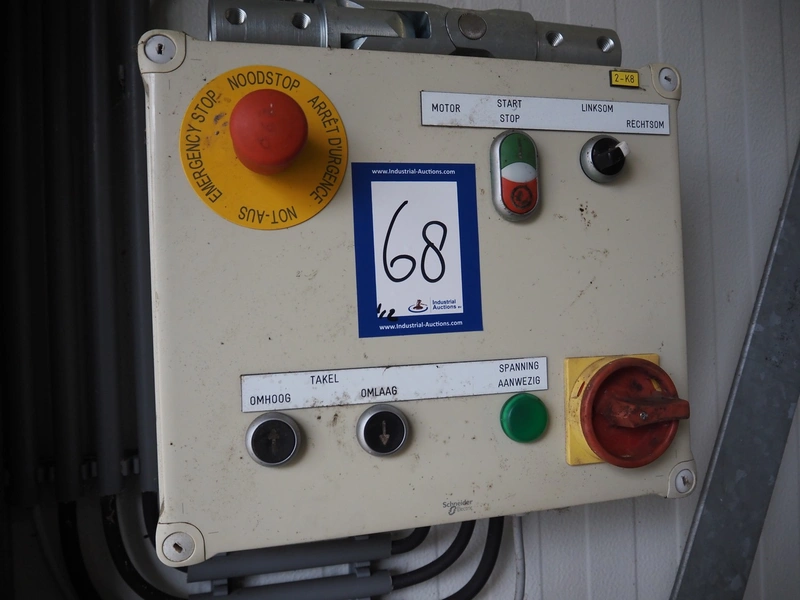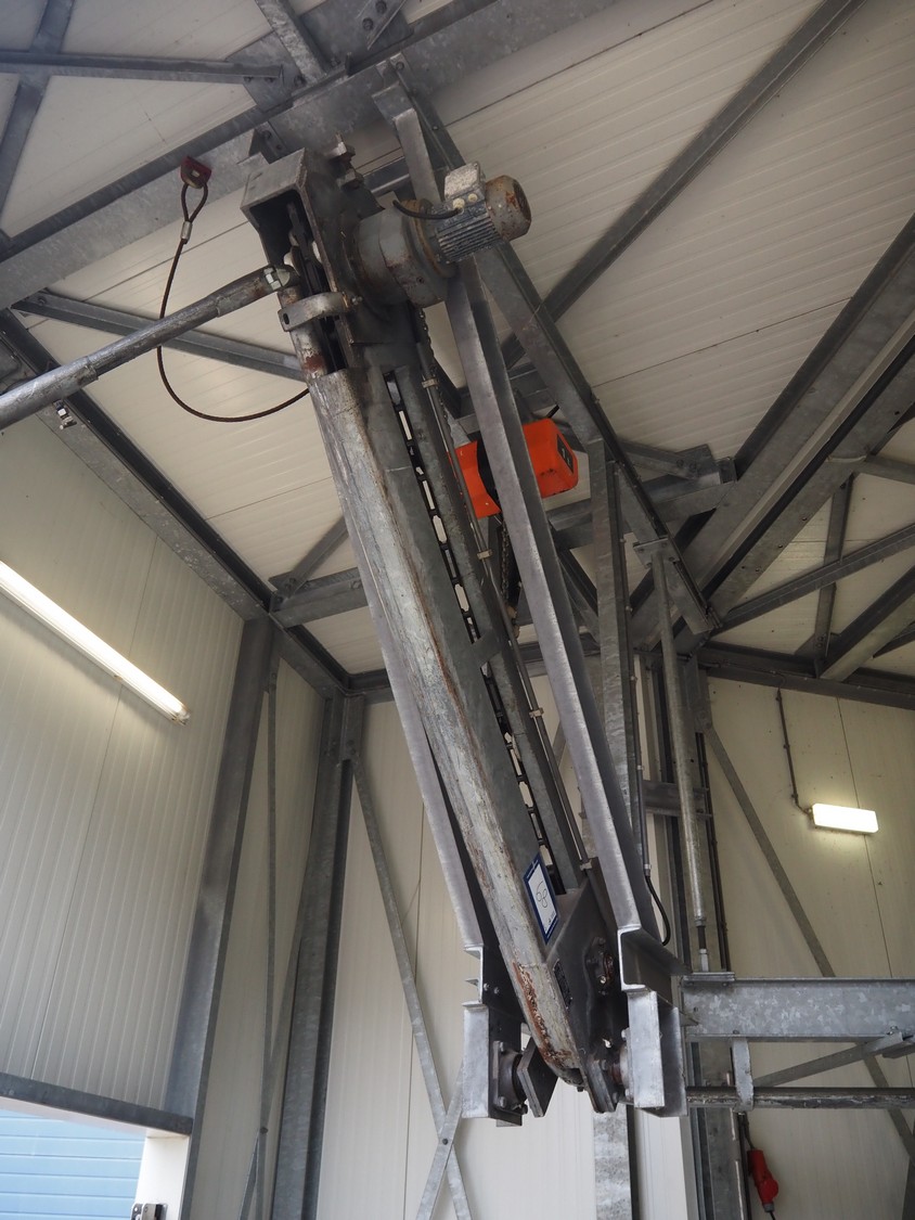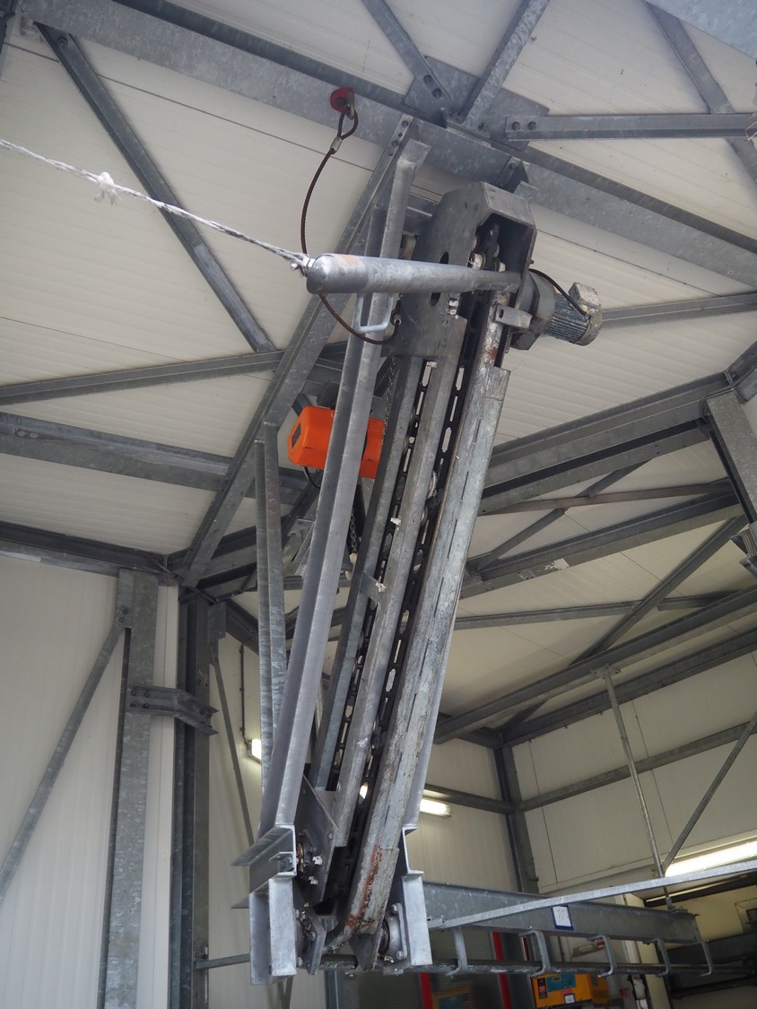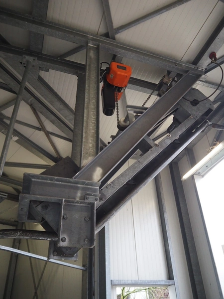 Broeze overhead elevating conveyor, model: BRZST 17, serial number: 112020, year of construction: 2011, 400 V, 3 Ph, 16 A, 0.75 kW, maximum capacity: 400 kg, dimensions: 2300 mm x 560 mm x 2200 mm.