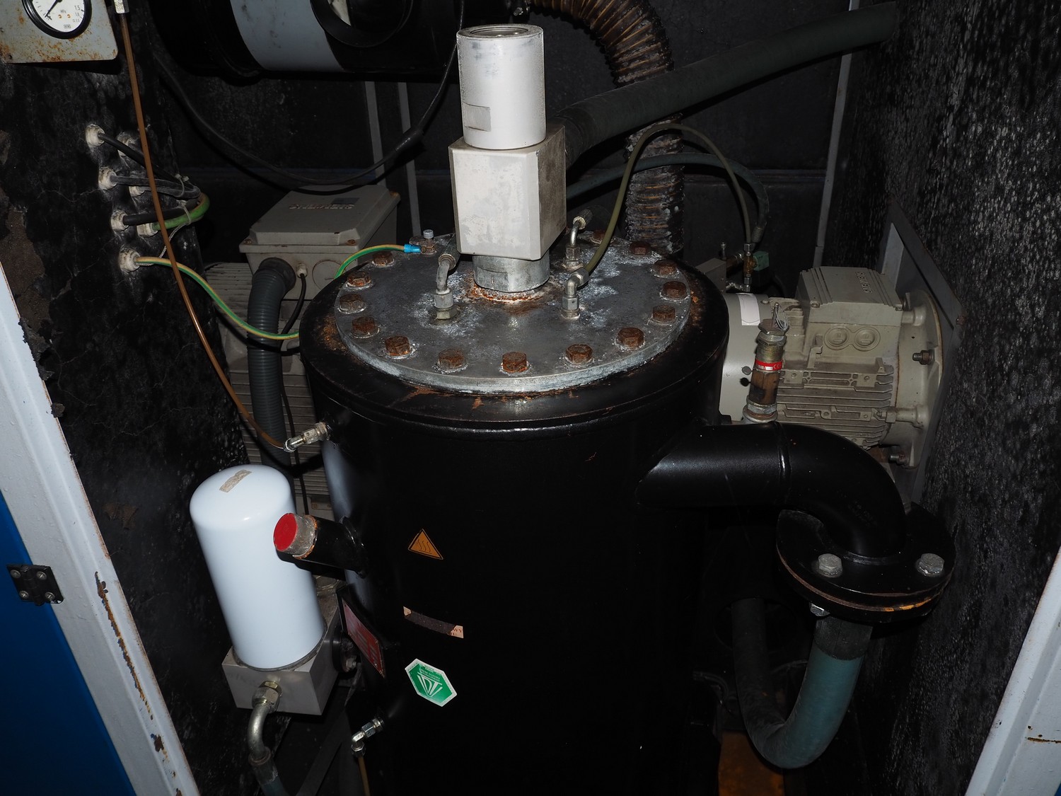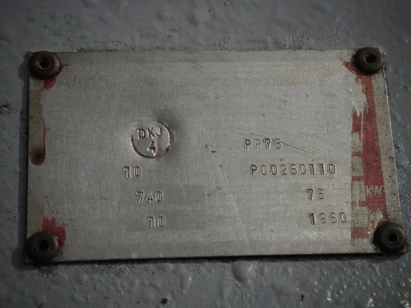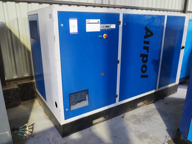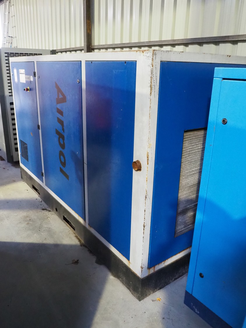 Airpol screw air compressor, type: PR75, serial number: P00250110, 10 A, 7.5 kW, dimensions: 2800 mm x 1420 mm x 1720 mm.