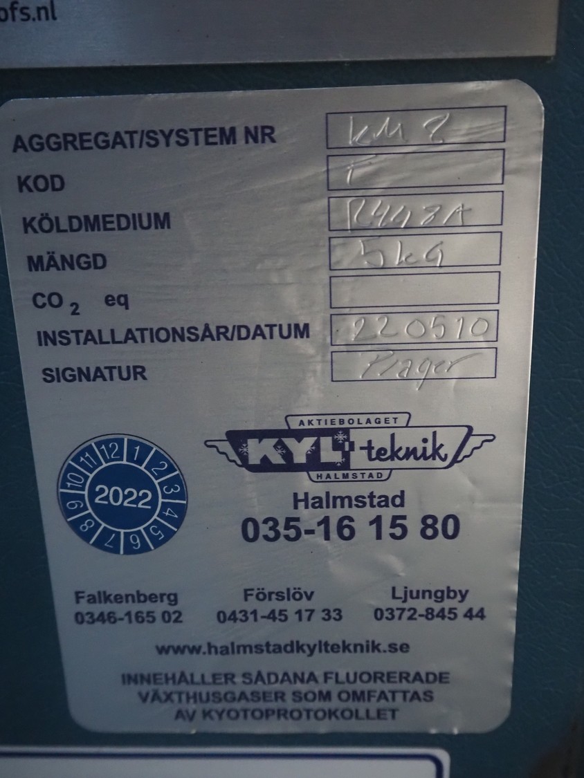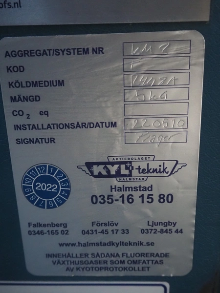 KYLteknik cooling compressor installation with scroll compressors, type: KM 2, year of construction: 22-05-2010, refrigerant: R448A, dimensions: 1200 mm x 800 mm x 850 mm.