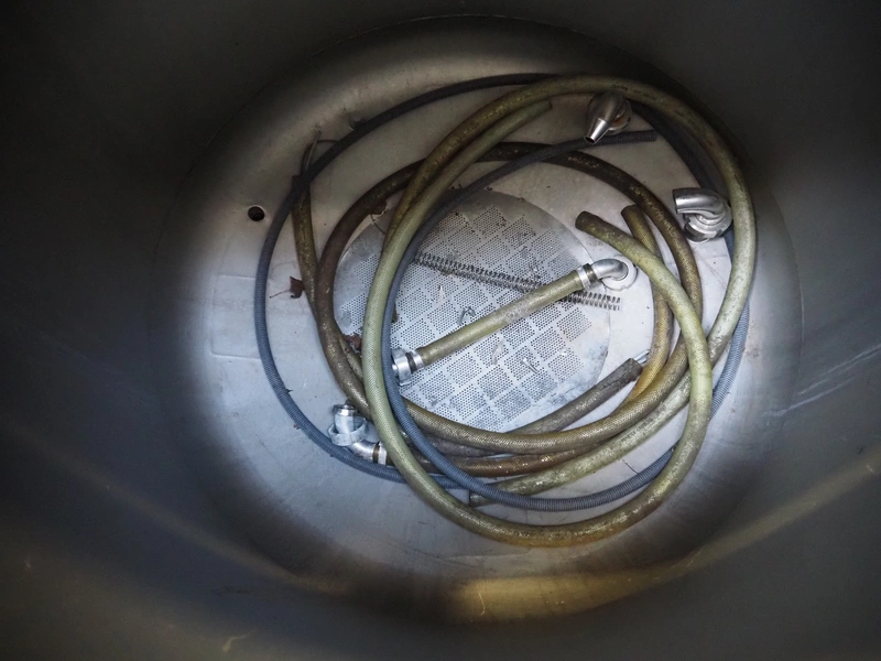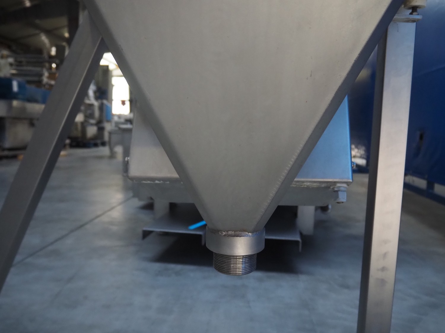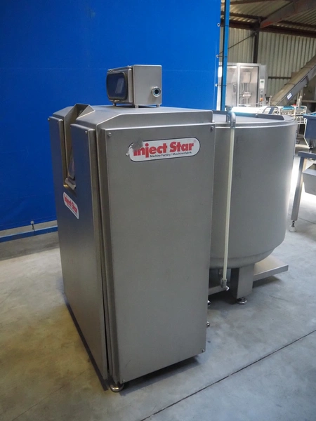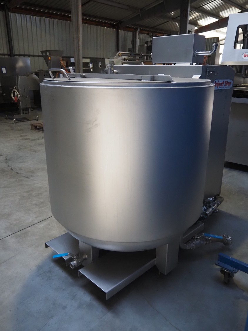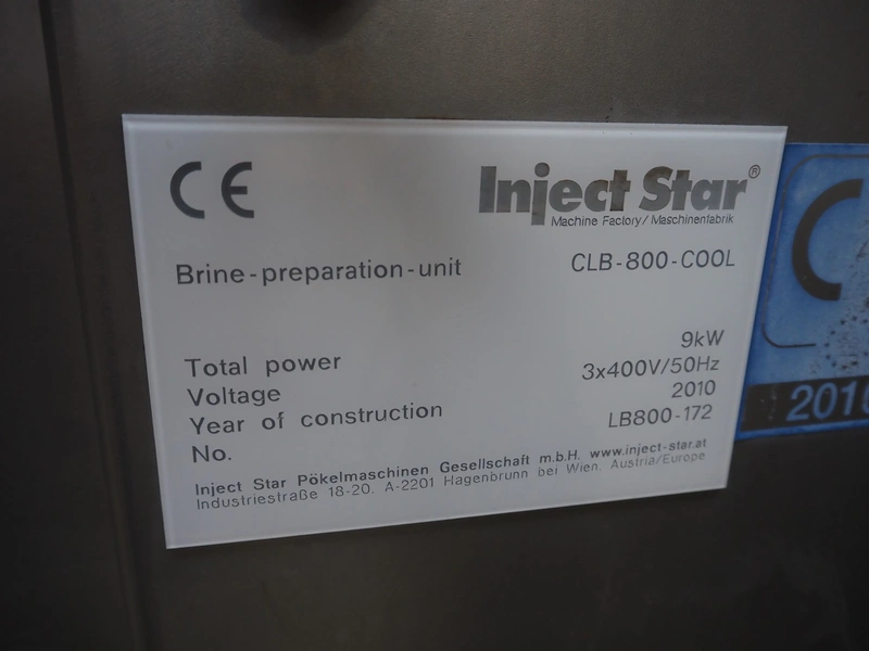 Inject Star brine preparation unit, type: CLB-800-COOL, serial number: LB800-172, year of construction: 2010, 3x400 V, 50 Hz, 9 kW, capacity: 800 liter, total dimensions: 1800 mm x 1600 x 1720 mm. Including Inject Star infeed bunker, dimensions: 900 mm x 650 mm x 1420 mm.