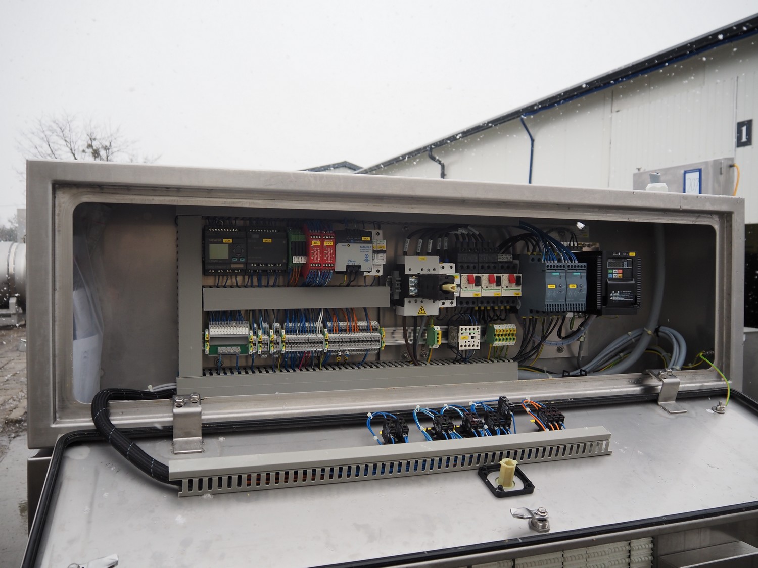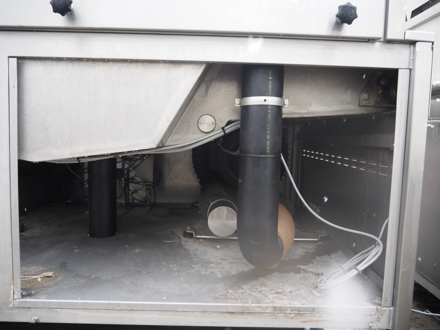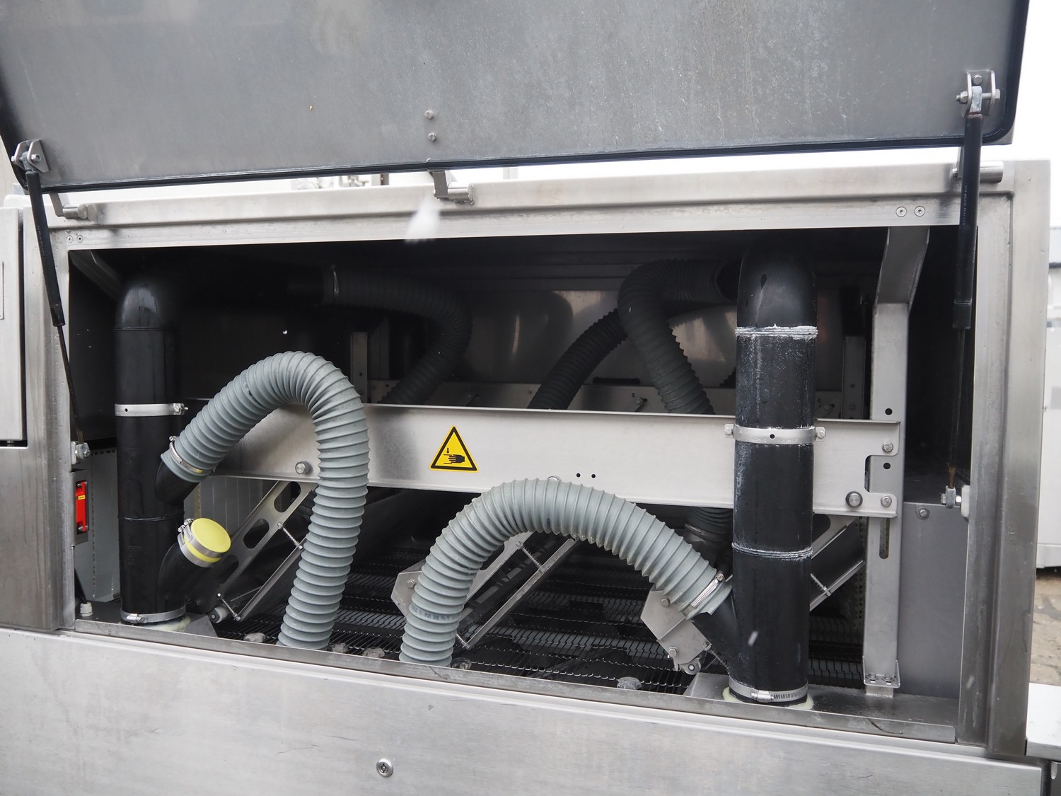 Cryovac drying tunnel, type: WR81-800, serial number: SN01307, year of construction: 2016, 400-460 V, 3 Ph, 50 / 60 Hz, 32 A, 17.6 kW, s/s mesh belt, belt width: 845 mm, working width: 800 mm, clearance: 810 mm x 300 mm, total dimensions: 2050 mm x 1320 mm x 1650 mm.
