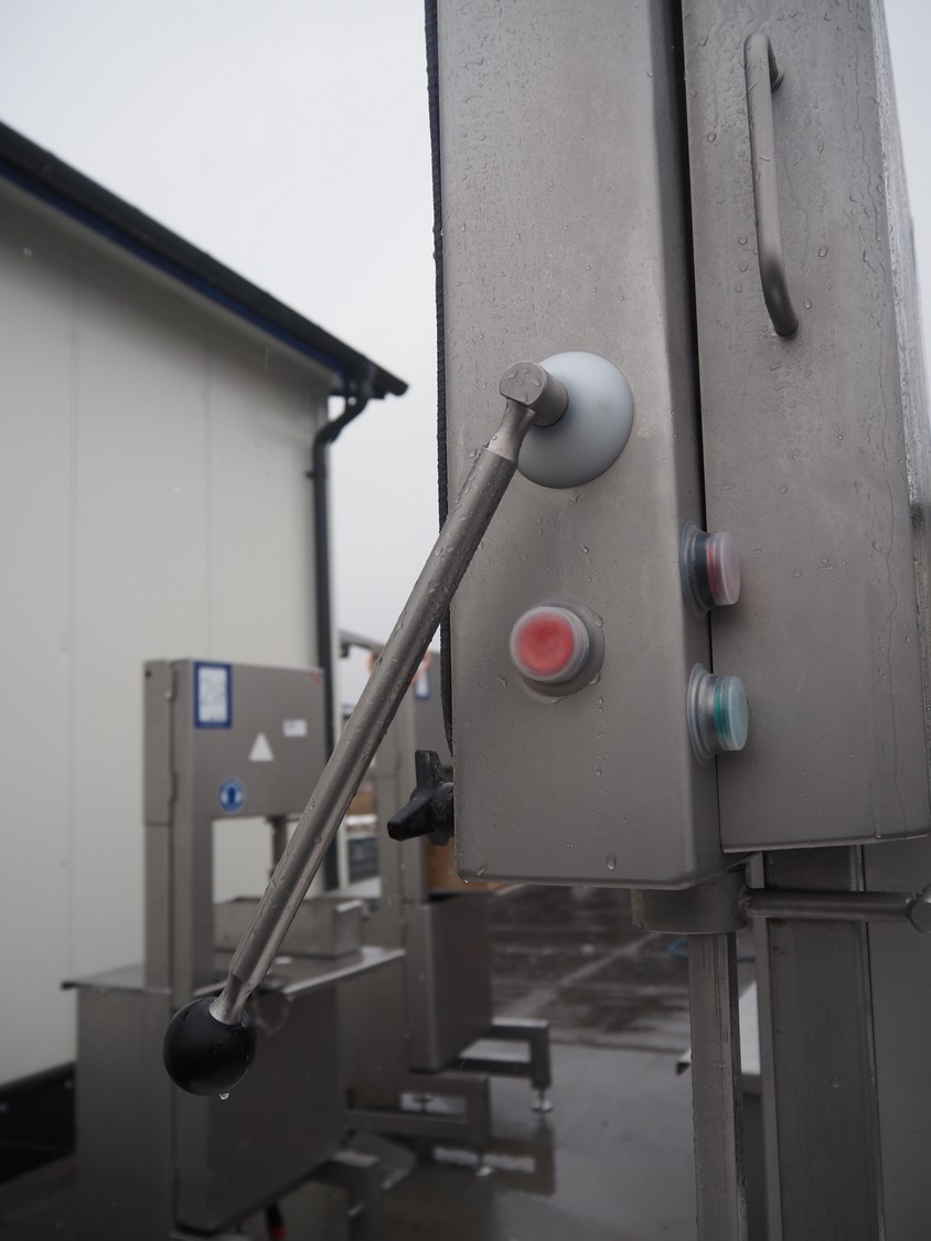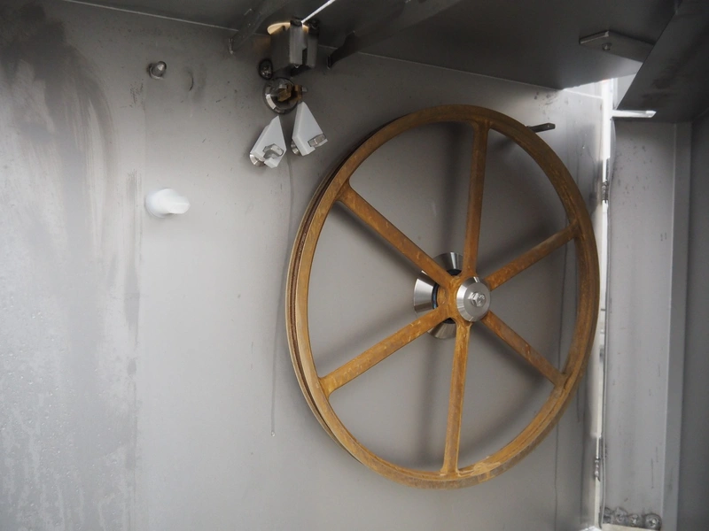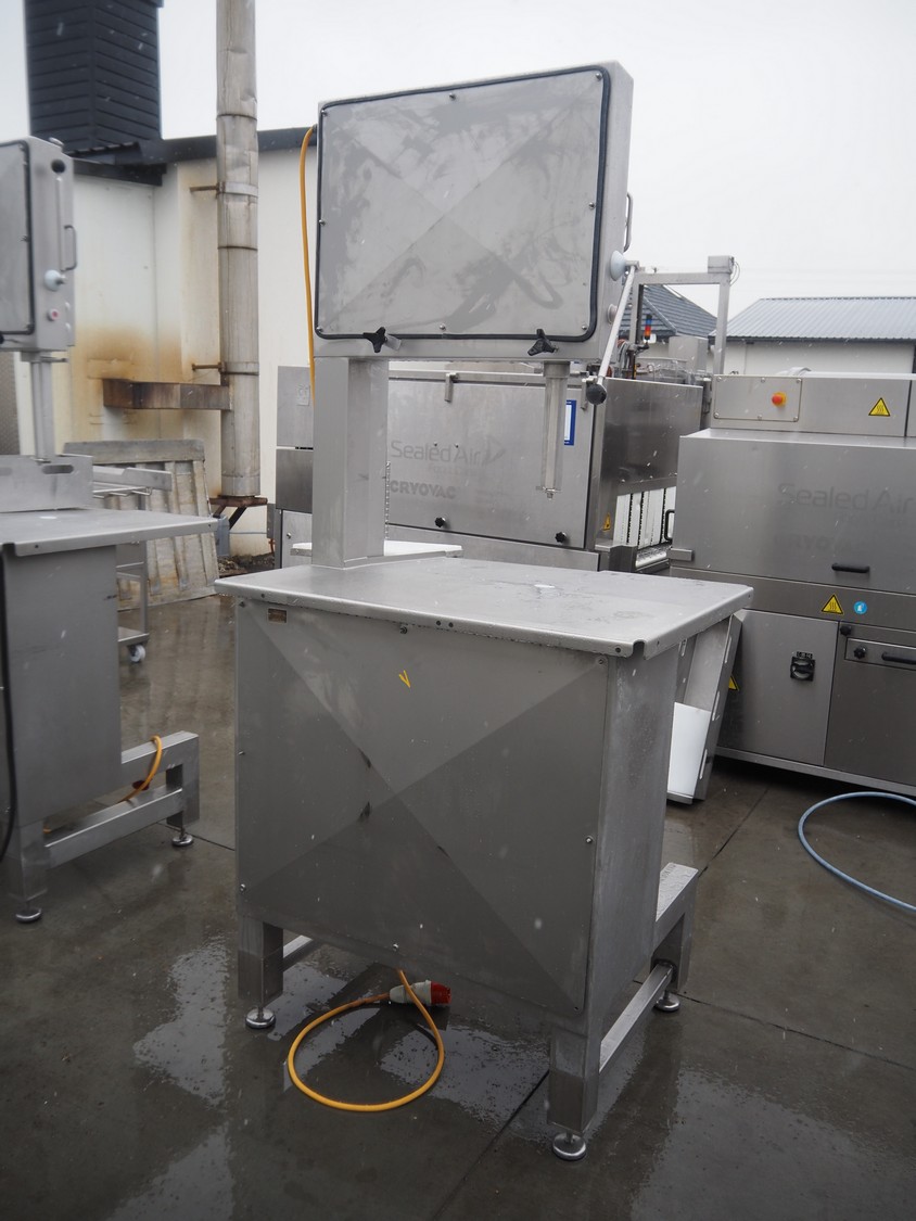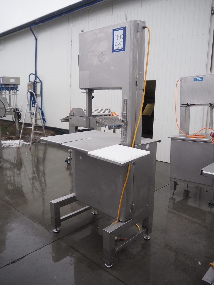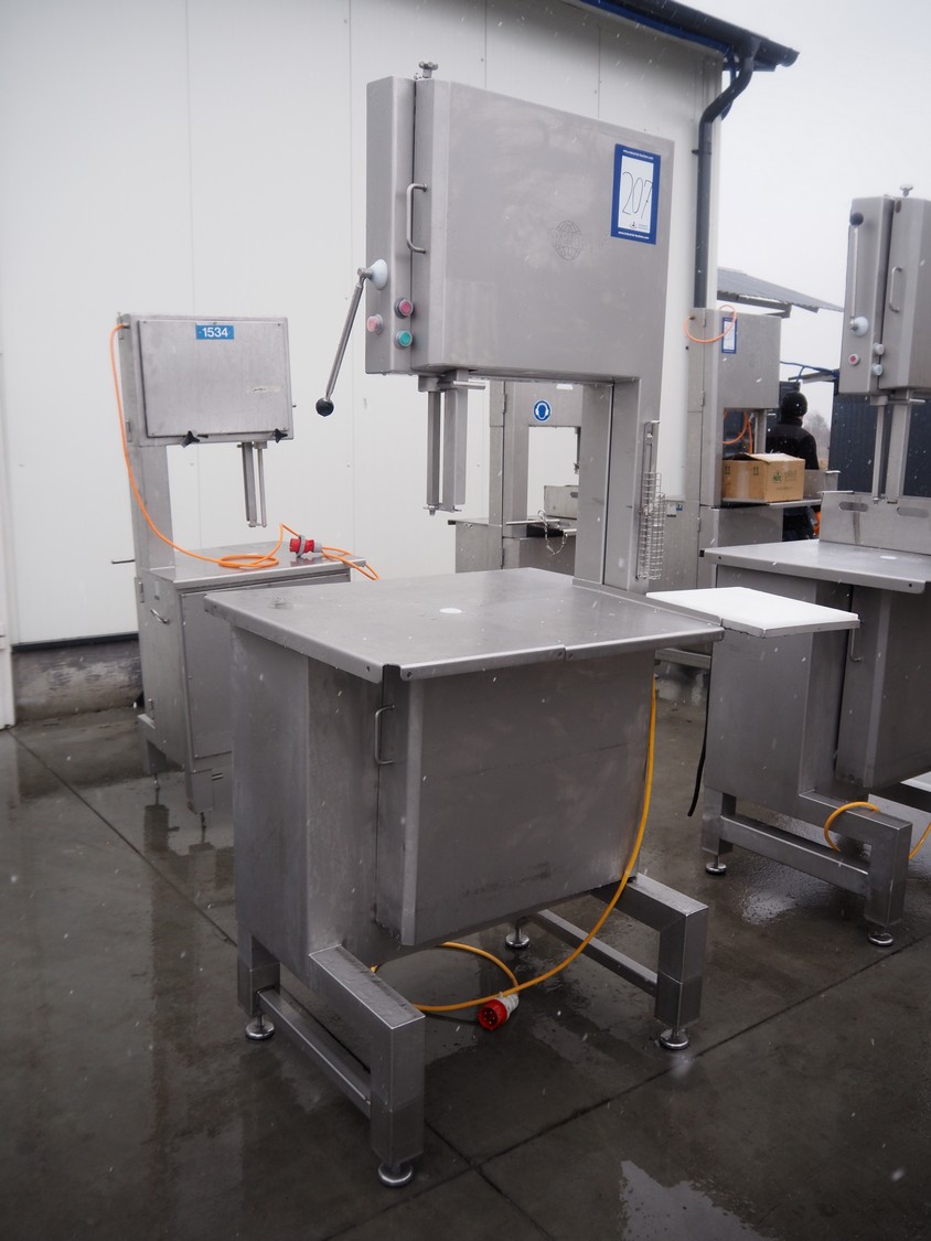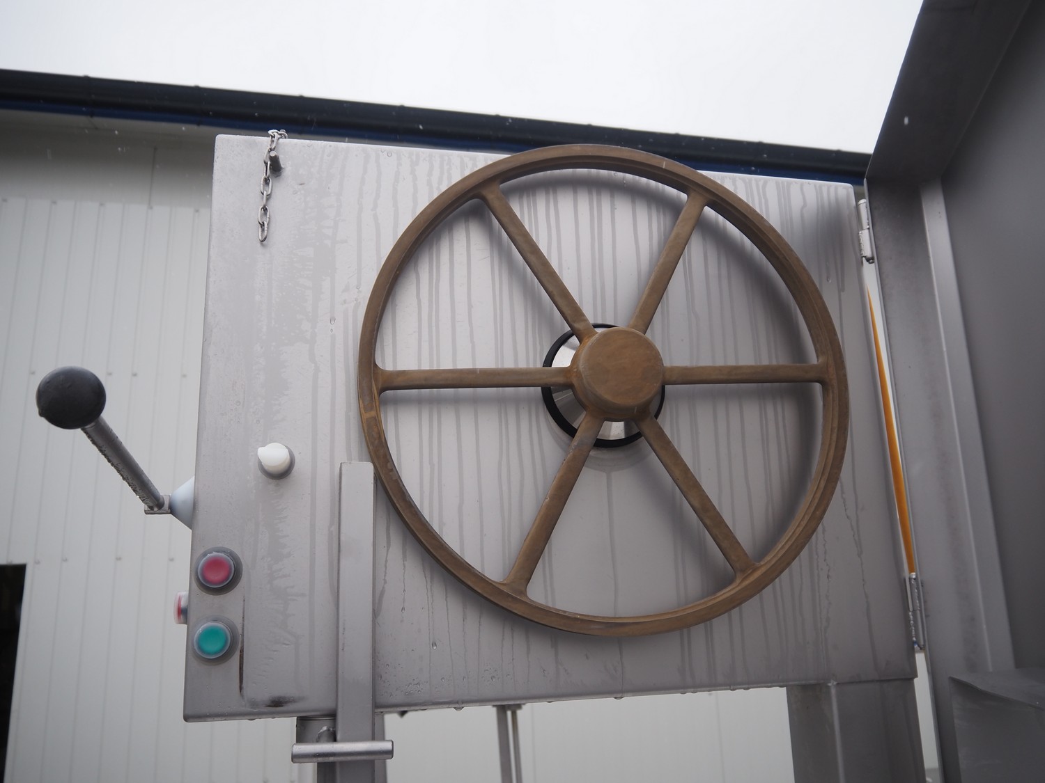 Reich bandsaw, number: 6477, table dimensions: 860 mm x 820 mm, total dimensions: 1200 mm x 930 mm x 2200 mm.