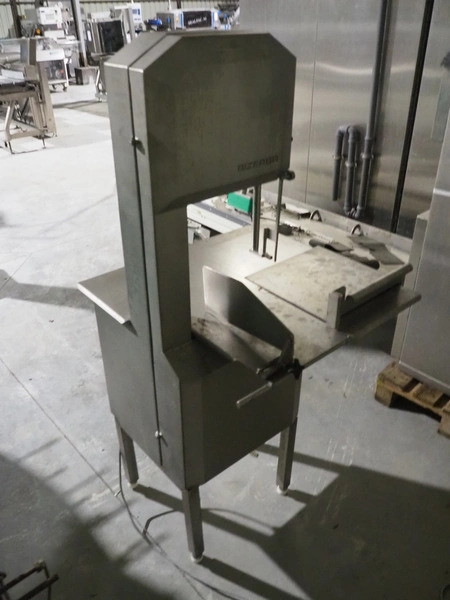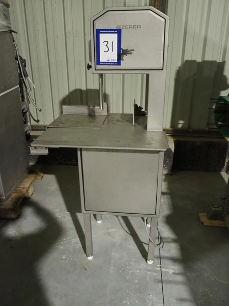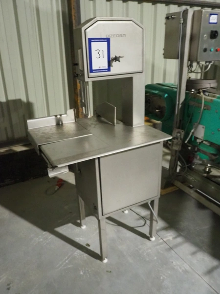 Bizerba GmbH & Co. KG bandsaw, type: FK 32, serial number: 2168141, year of construction: 2004, 400 V, 3 Ph, 50 Hz, 3.6 A, table dimensions: 750 mm x 780 mm, total dimensions: 710 mm x 780 mm x 1600 mm.