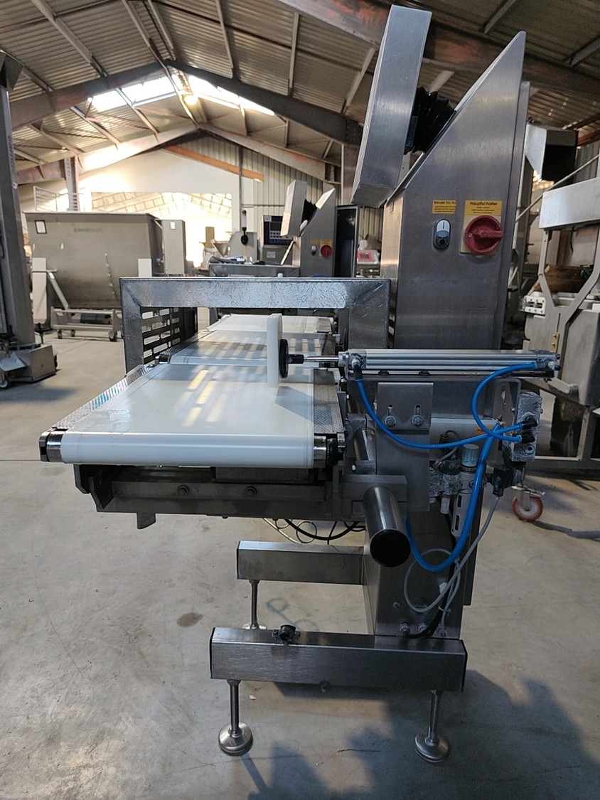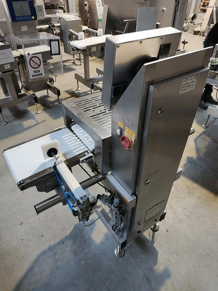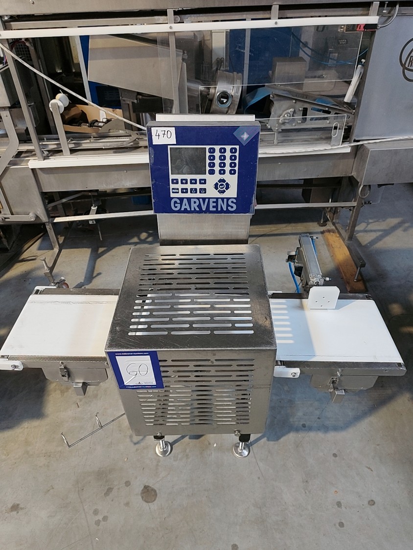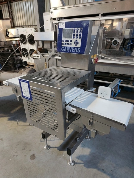 Garvens Automation GmbH checkweigher with rejector, model E3, serial number: 333476, year of construction: 2005, 230 V, 50 Hz, weigher: DMS, dimensions: 1340 mm x 850 mm x 1680 mm. 1 belt missing.