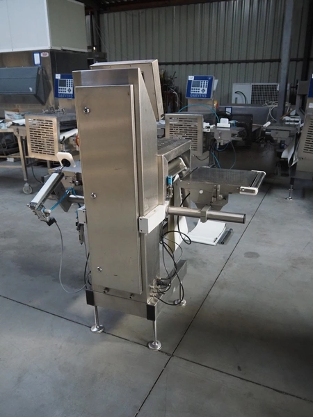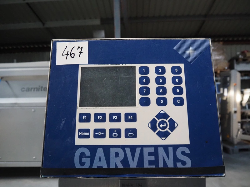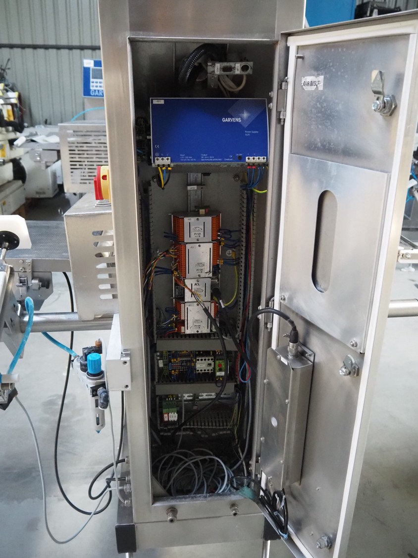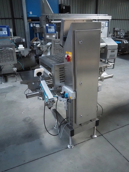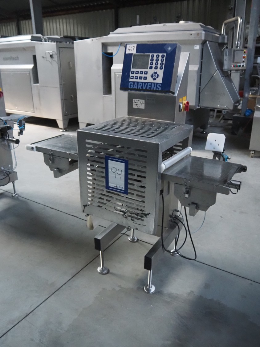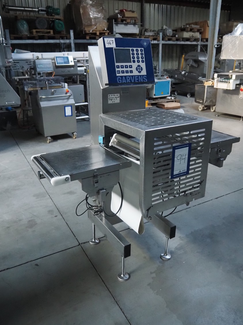 Garvens Automation GmbH checkweigher with rejector, type: E3, plastic belt, belt width: 300 mm, clearance: 150 mm x 380 mm, total dimensions: 1350 mm x 850 mm x 1600 mm. Missing belt.