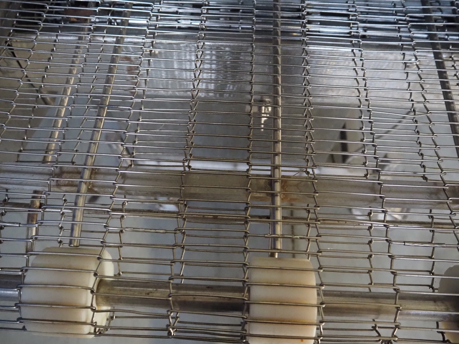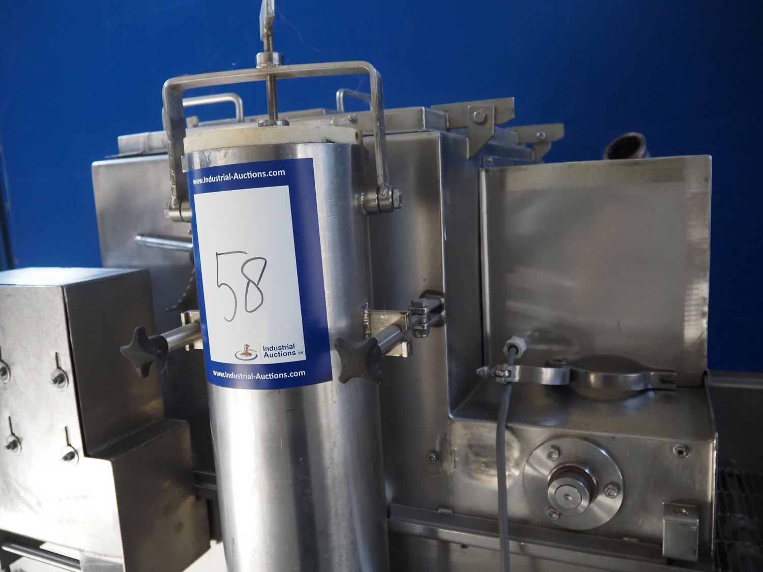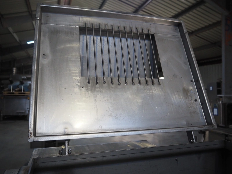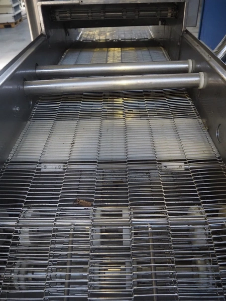 S/s mobile breading machine, s/s mesh belt, belt width: 600 mm, total dimensions: 2760 mm x 1100 mm x 1760 mm.