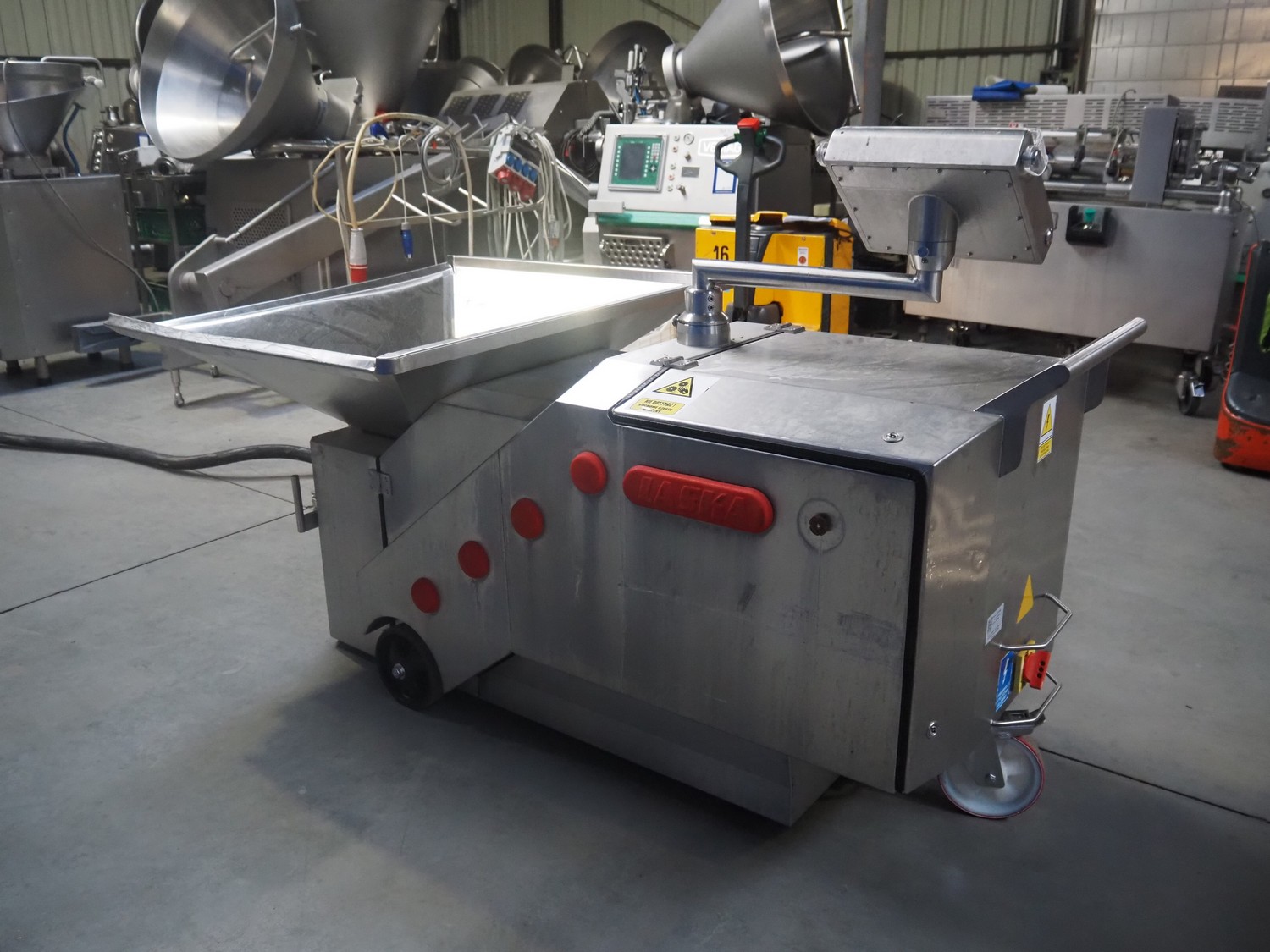 Laska mobile micro cutter, type: emulsifier FZ 175, number: 15248, year of construction: 2016, 400 V, 3 Ph, 50 Hz, 155 A, 91 kW, dimensions: 2150 mm x 1160 mm x 1300 mm. Including crate with parts.