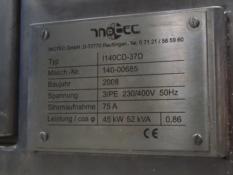Inotec GmbH mobile micro cutter, type: I140CD-37D, machine number: 140-00685, year of construction: 2008, 400 V, 3 Ph, 50 Hz, 75 A, 45 kW, total dimensions: 1560 mm x 1120 mm x 1200 mm.