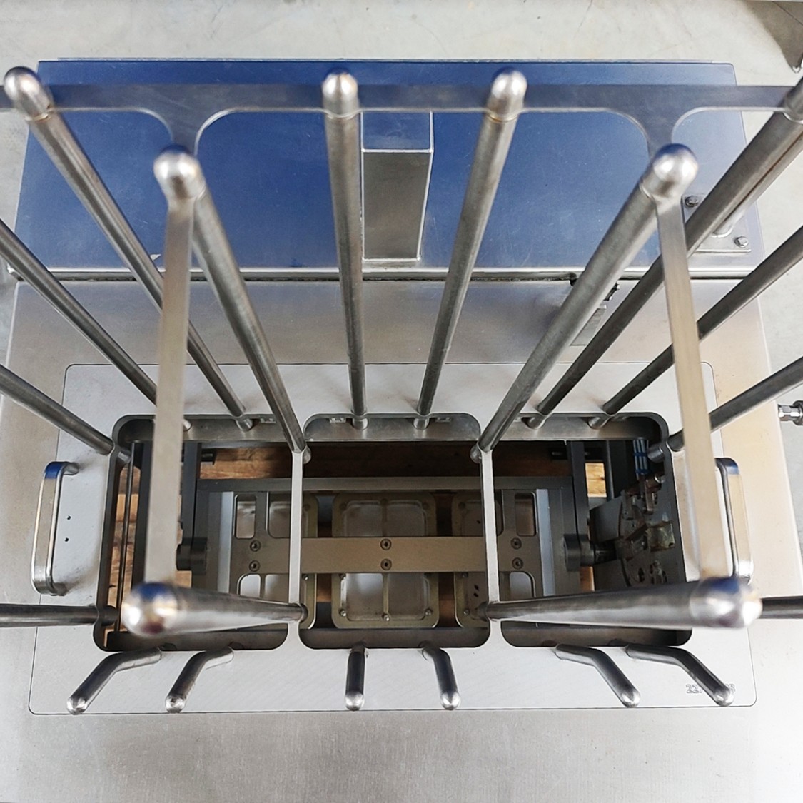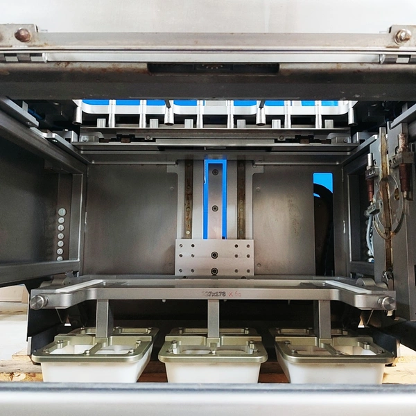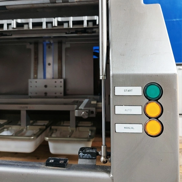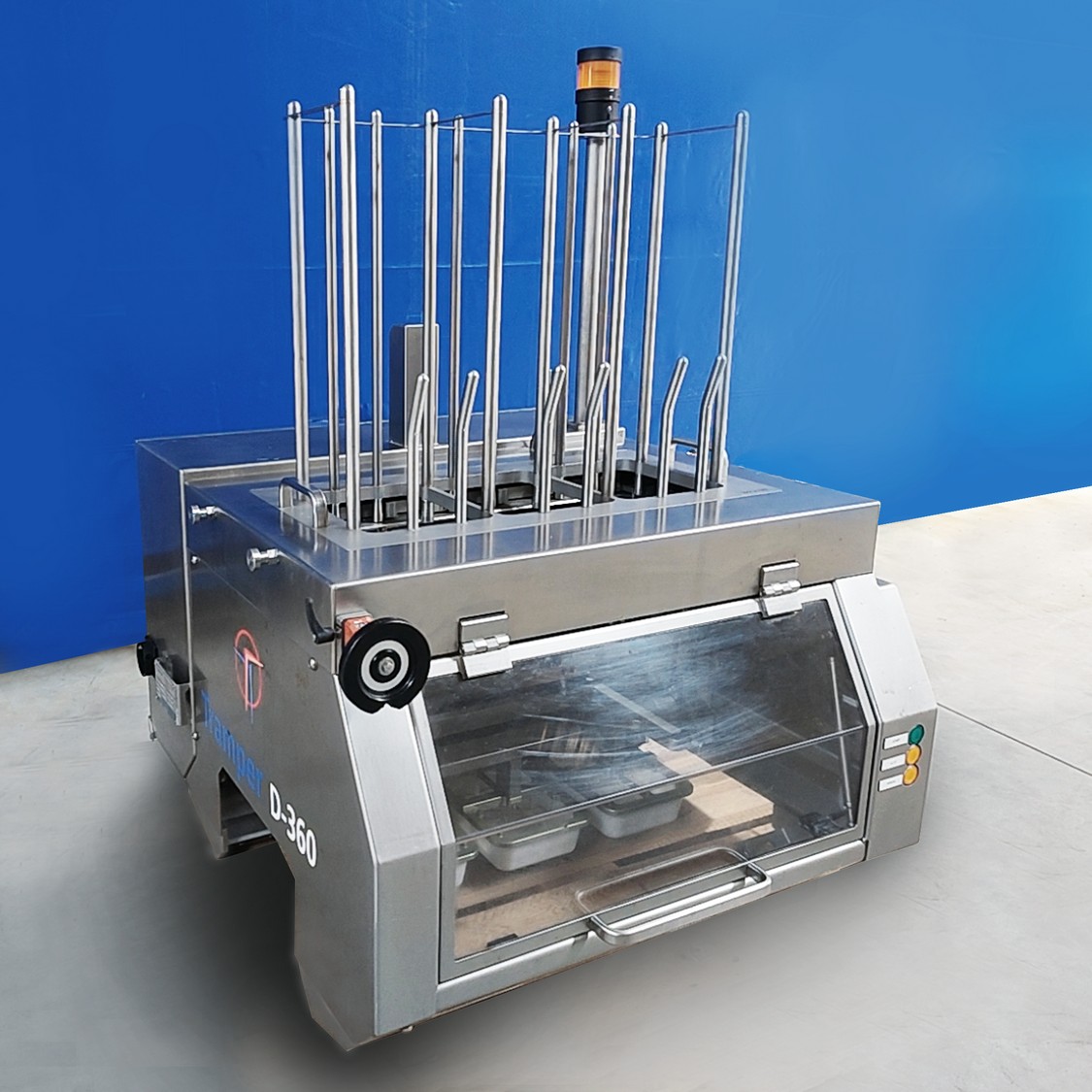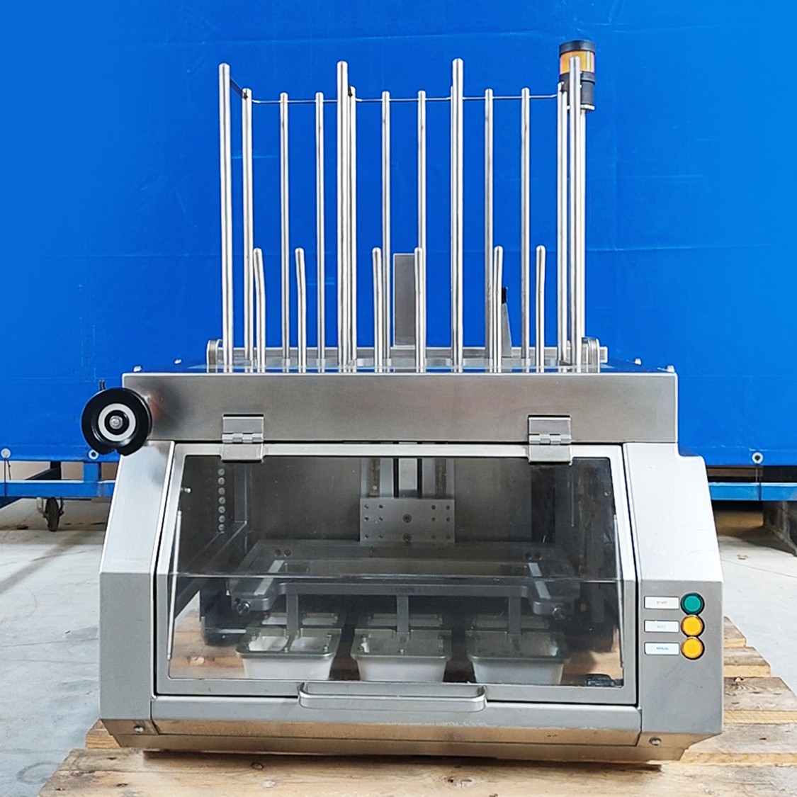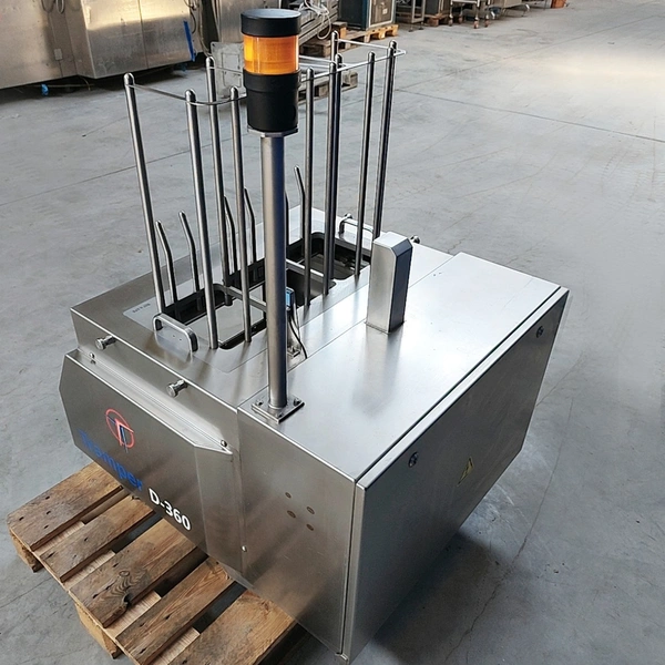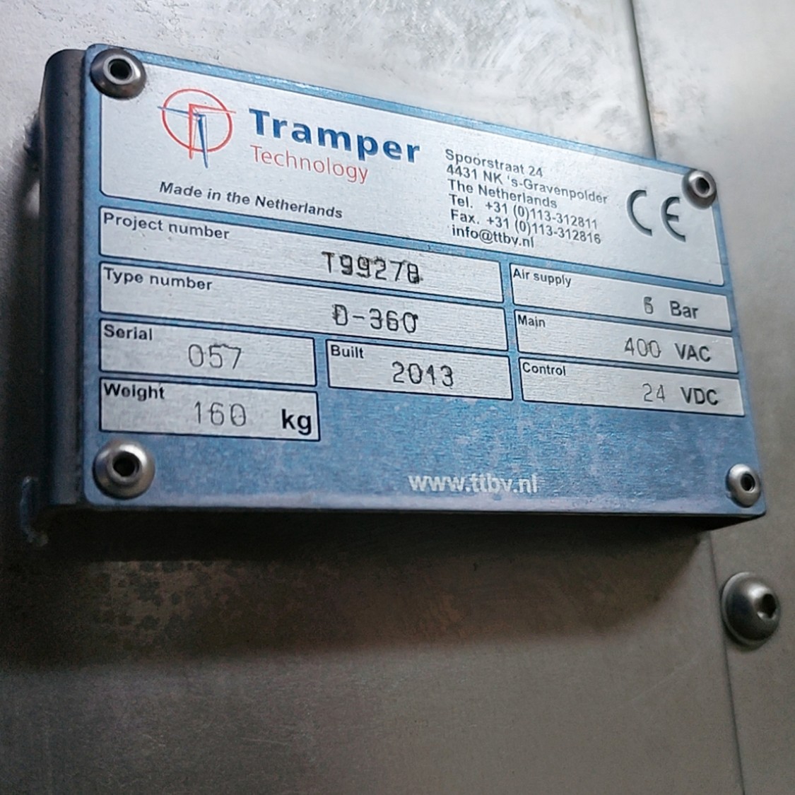 Tramper denester, type: D-360, serial number: 057, year of construction: 2013, 400 Vac, 6 bar, 160 kg, dimensions tray: (3x) 200 mm x 145 mm, total dimensions: 950 mm x 920 mm x 1400 mm.
