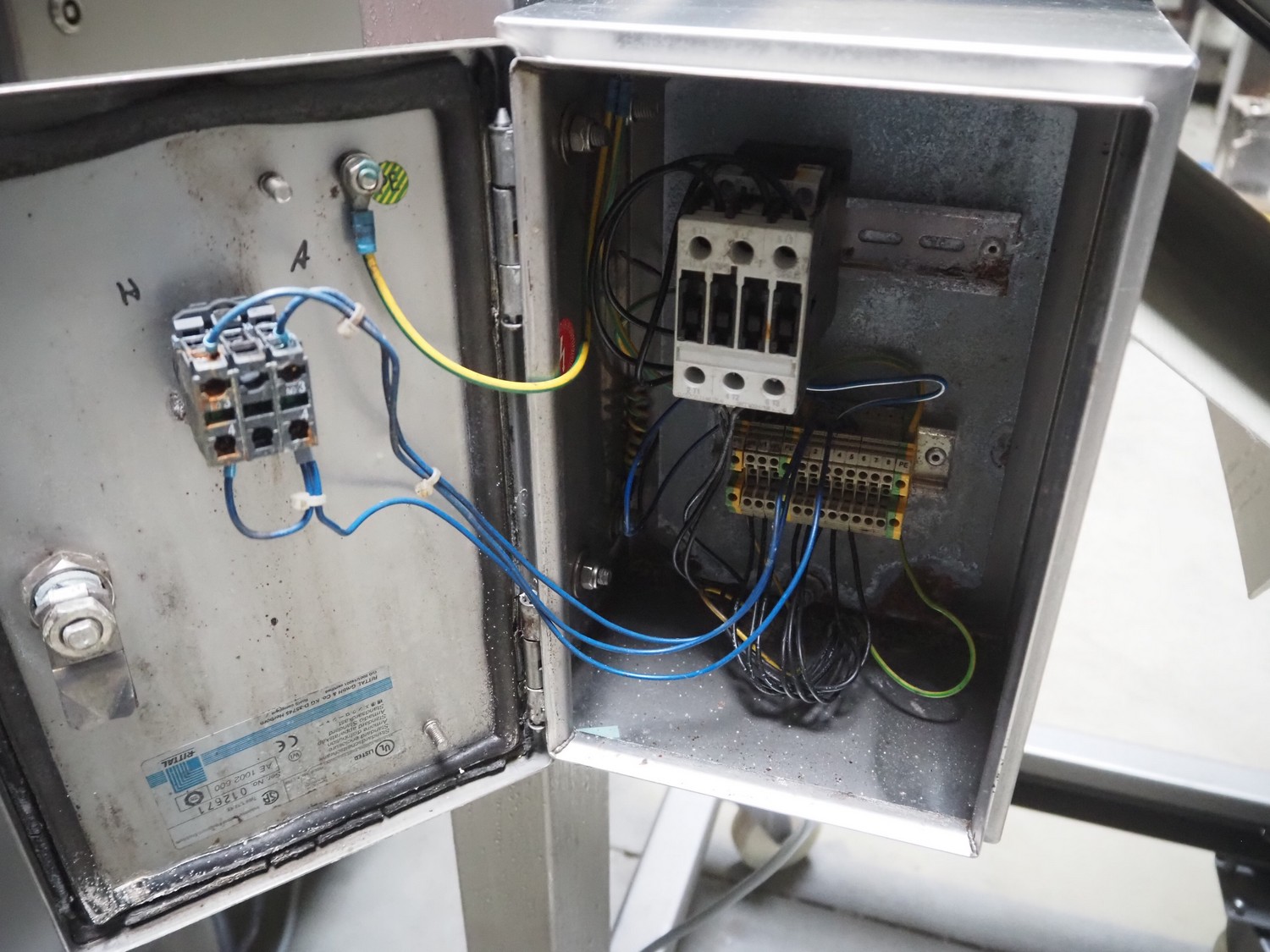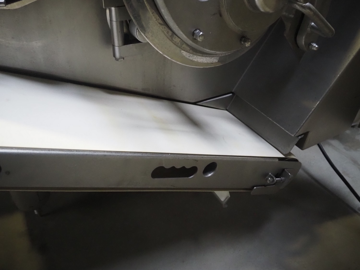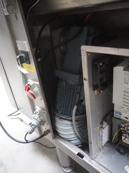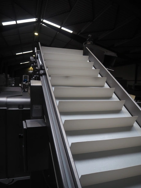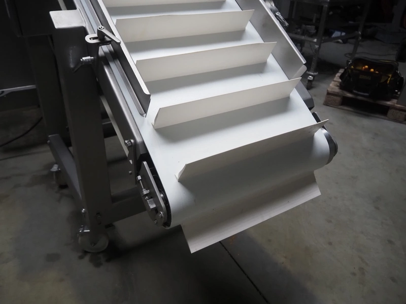 Treif Maschinenbau GmbH dicer, model: Twister G, serial number: 412605.77551.108141, year of construction: 2010, 380-480 V, 3 Ph, 50/60 Hz, 6 / 8.16 kW, chamber dimensions: 120 mm x 120 mm, plastic outfeed belt, belt width: 245 mm, total dimensions: 2000 mm x 1750 mm x 1820 mm, with mobile elevating belt, plastic belt, belt width: 560 mm, divider width: 480 mm, divider height: 85 mm, distance between dividers: 140 mm, elevating height: 1100 mm, total dimensions: 1900 mm x 800 mm x 1900 mm.