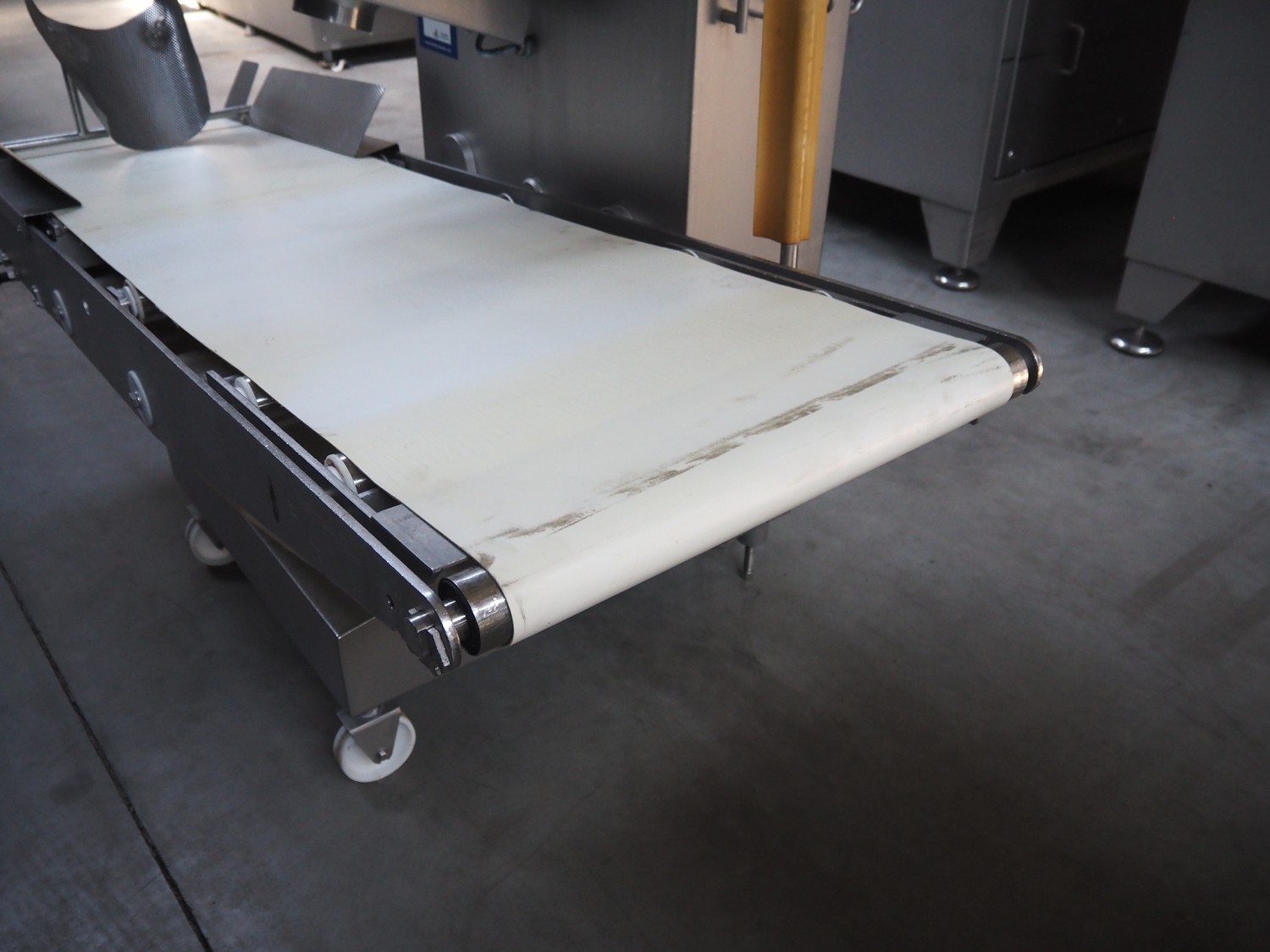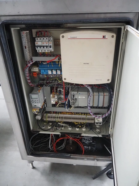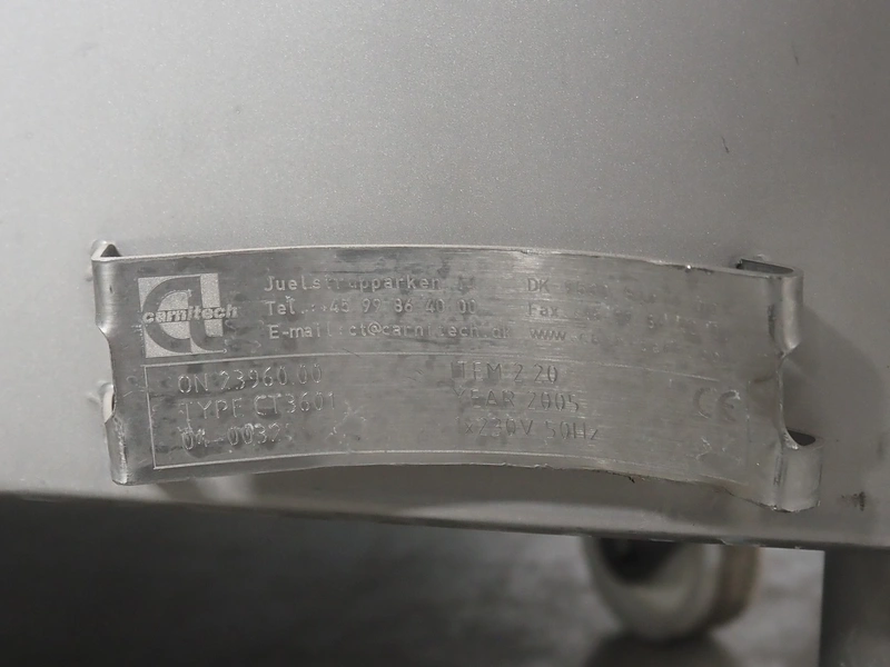 Carnitech mobile fat analyser, type: CT3601, number: 04-0032, year of construction: 2005, 230 V, 1 Ph, 50 Hz, plastic belt, belt width: 550 mm, total dimensions: 2300 mm x 1400 mm x 1780 mm.