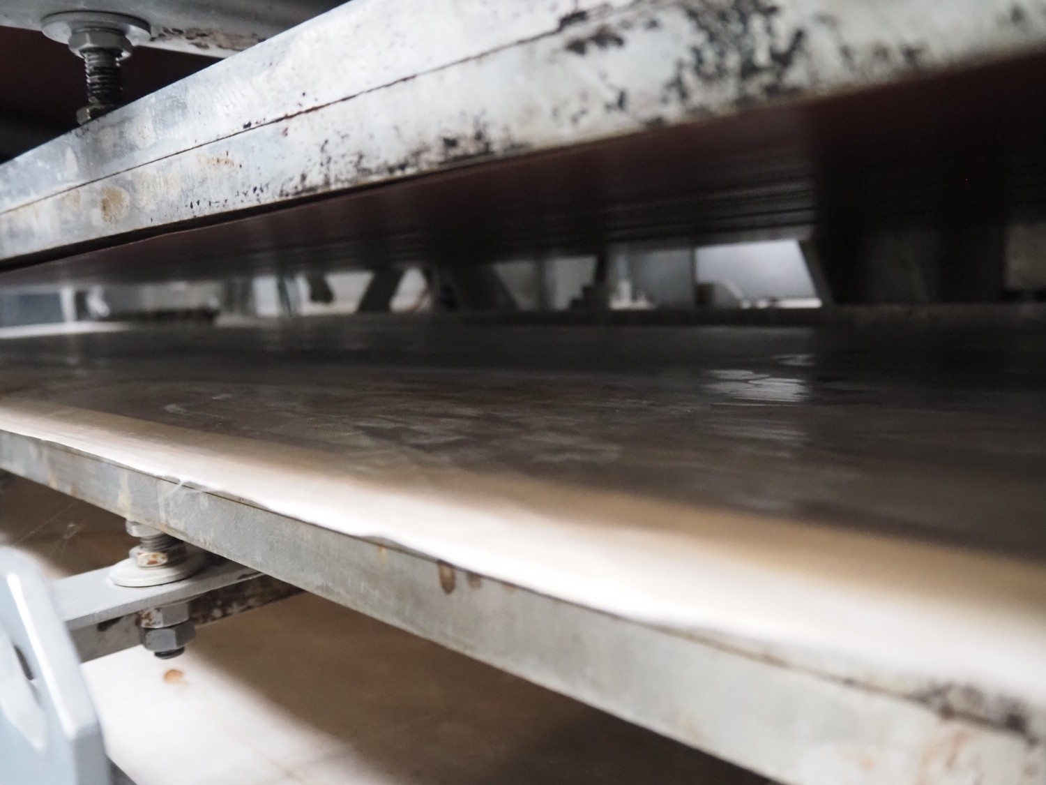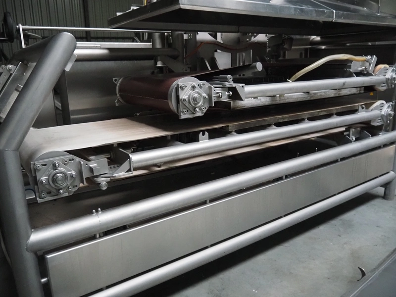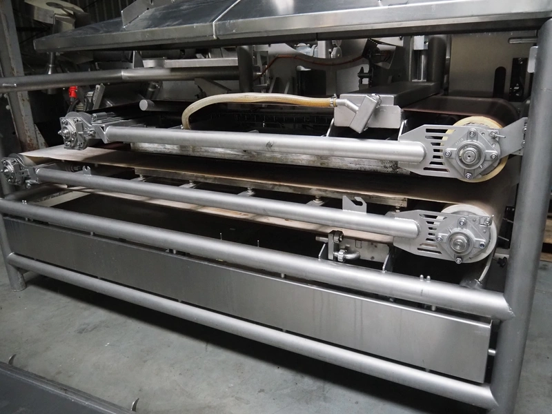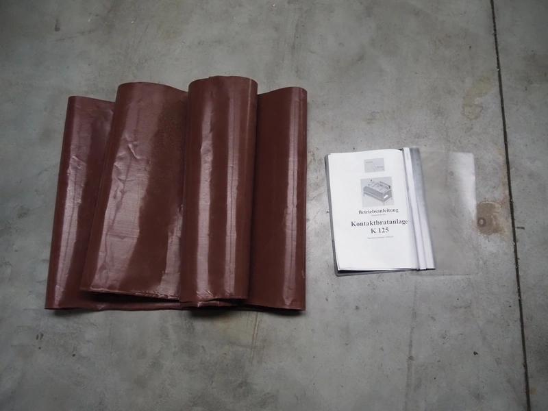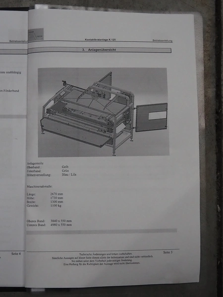 Food Tech contact cooker, type: KBA 550/2500, serial number: 0103.10, year of construction: 10/2010, teflon belts, belt width: (2x) 540 mm, total dimensions: 2700 mm x 1300 mm x 1650 mm.