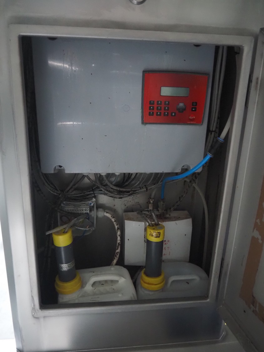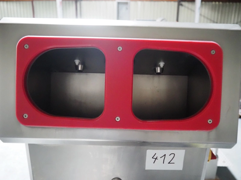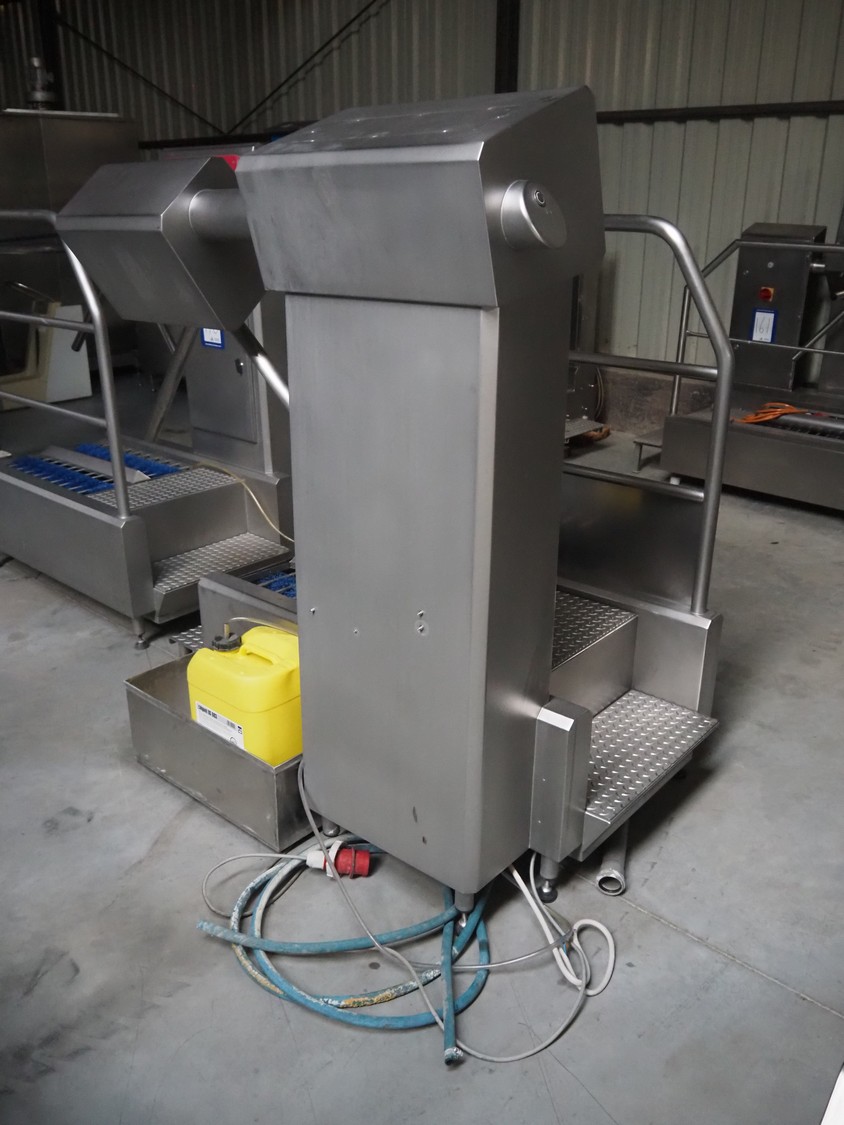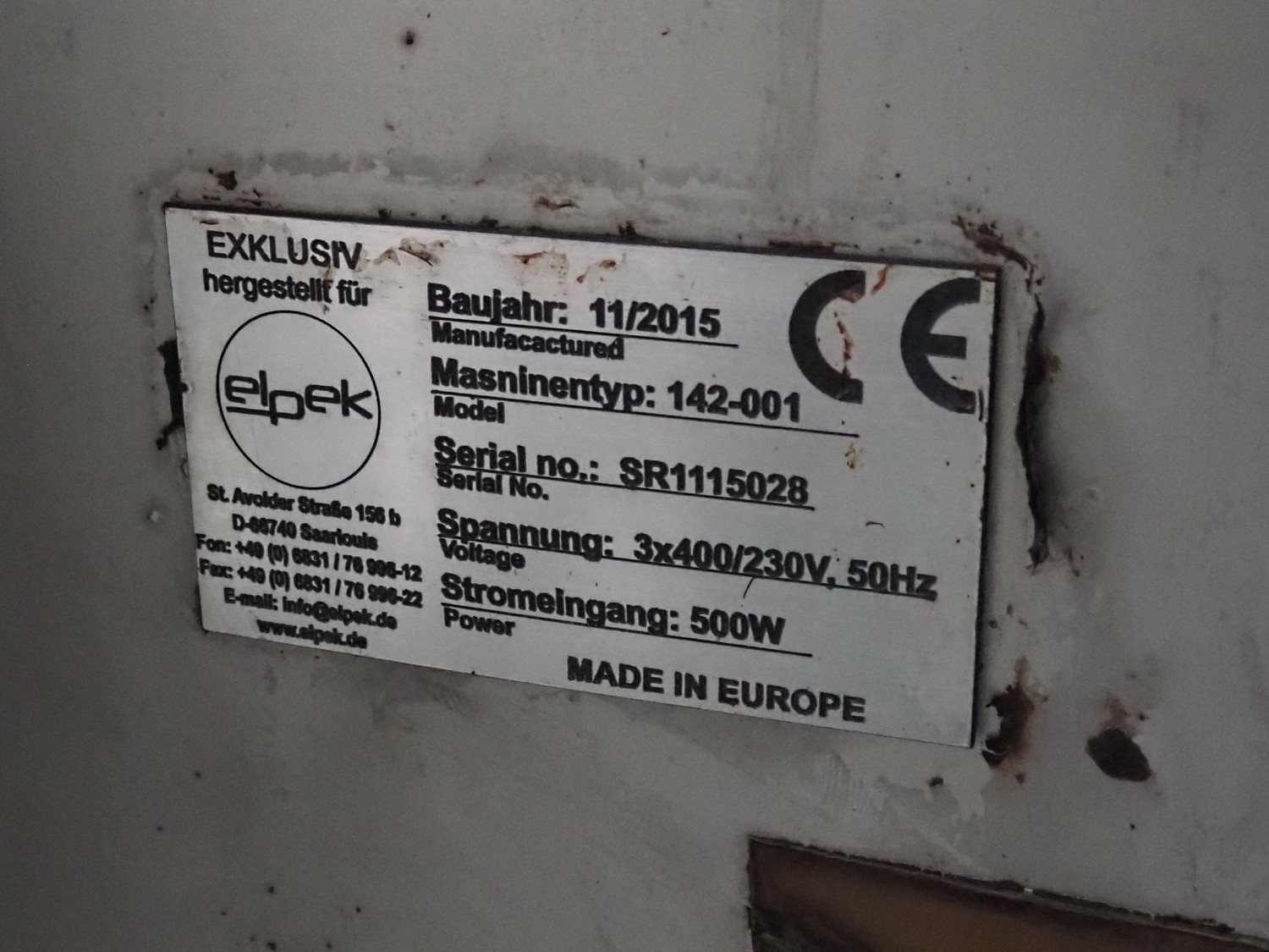 Elpek hygiene station with sole cleaner, hand disinfection and tourniquet, type: 142-001, serial number: SR1115028, year of construction: 11/2015, 230/400 V, 3 Ph, 50 Hz, 500 W, brush length: (2x) 700 mm, total dimensions: 1500 mm x 1000 mm x 1640 mm.