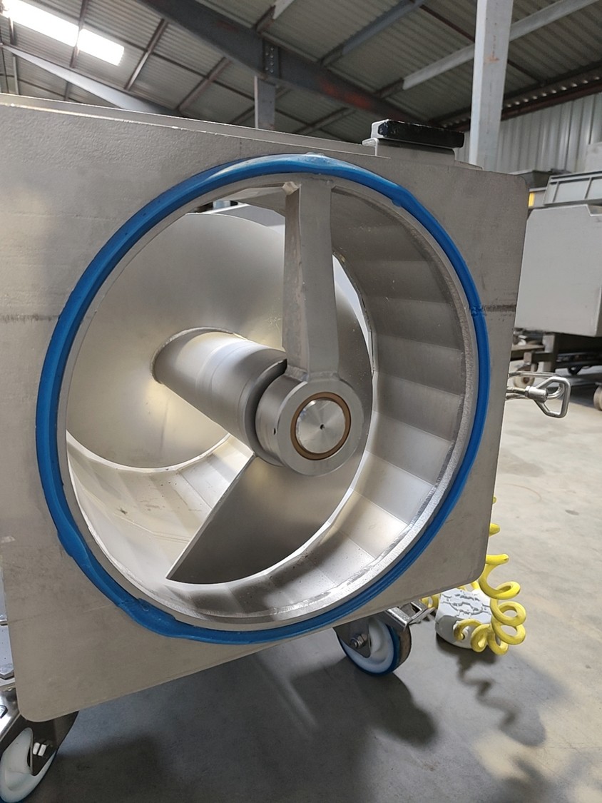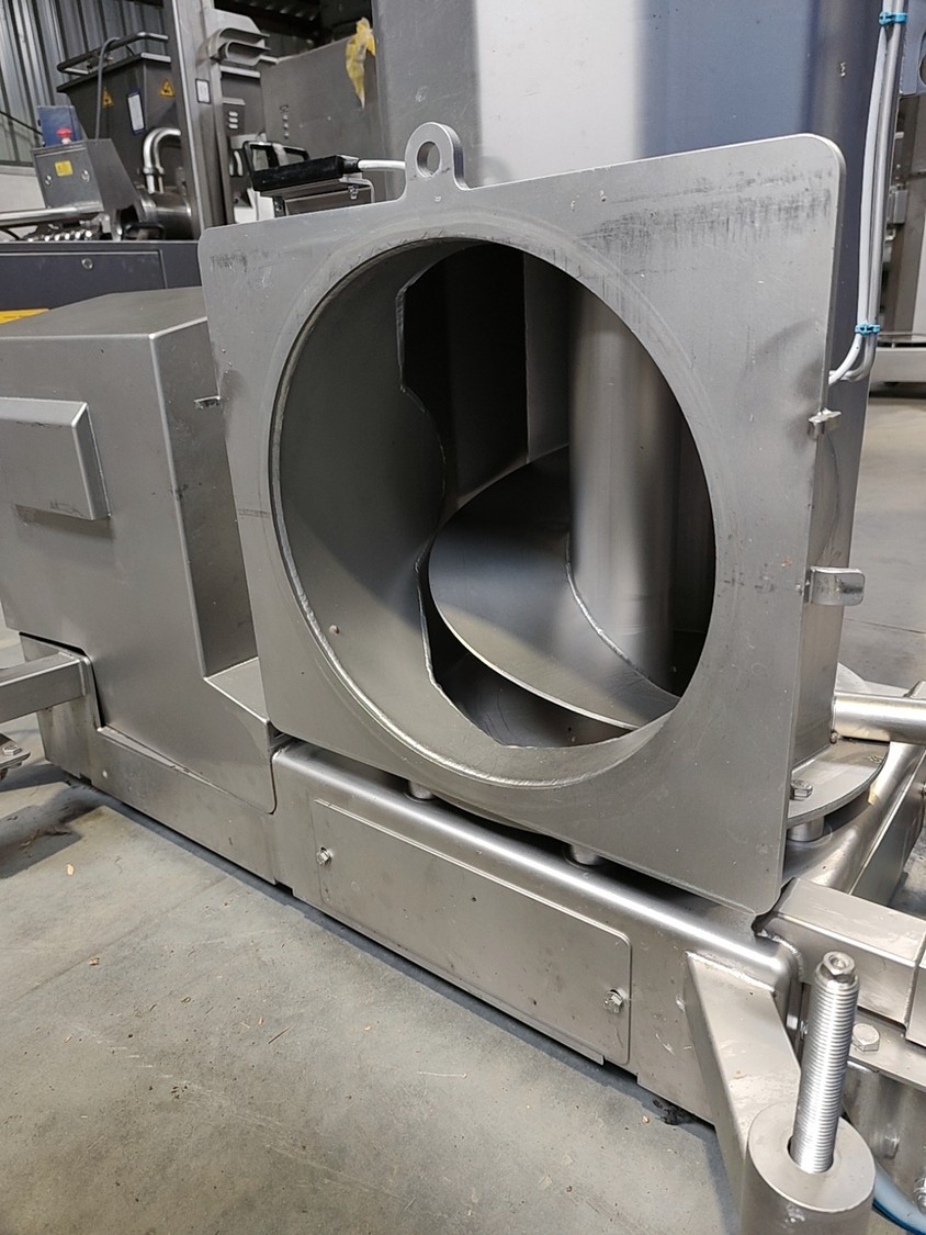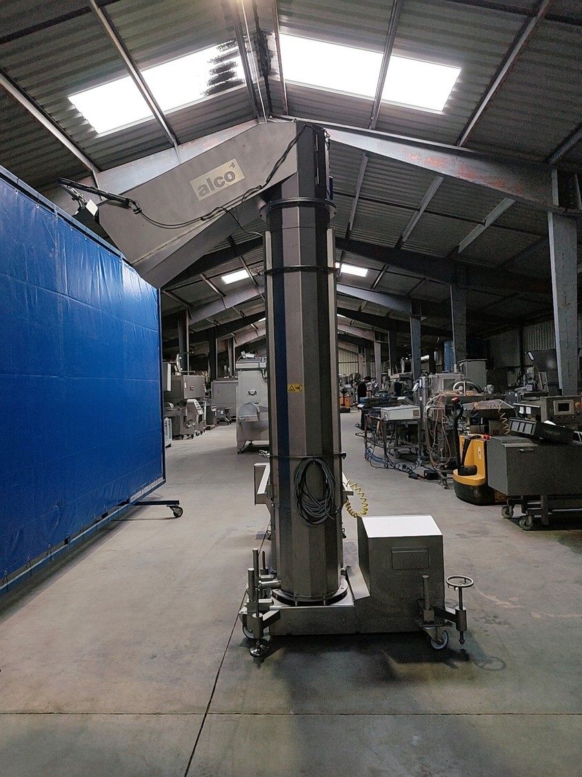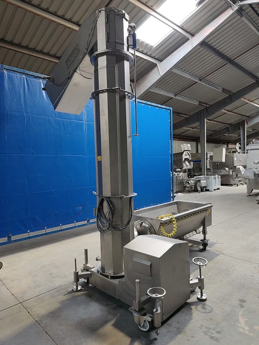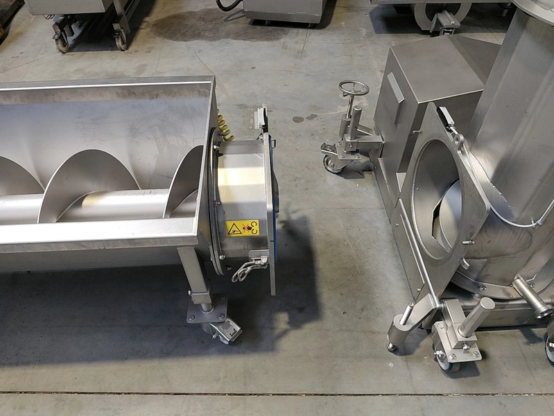 Alco infeed bunker with elevating screw, model: AGS 350/2100, serial number: 03863232, year of construction: 2021, 400 V, 50 Hz, 6.6 kW, weight: approx. 800 kg, elevating height: 1950 mm, total dimensions: 2700 x 2300 x 3200 mm.