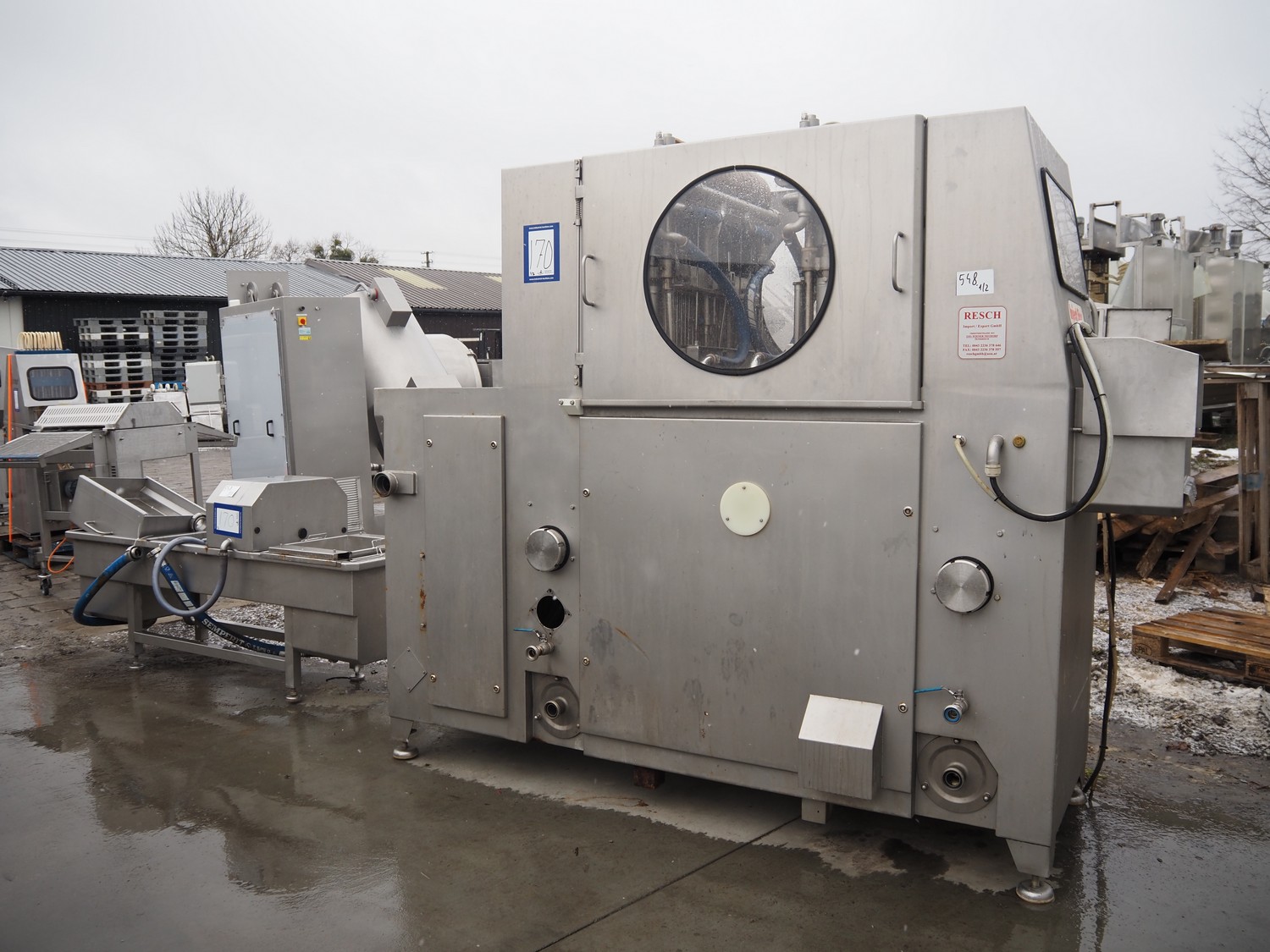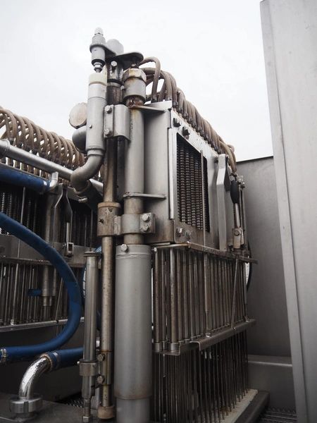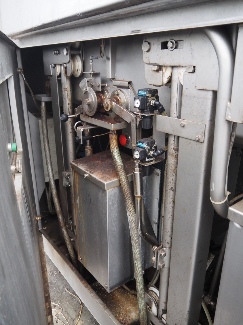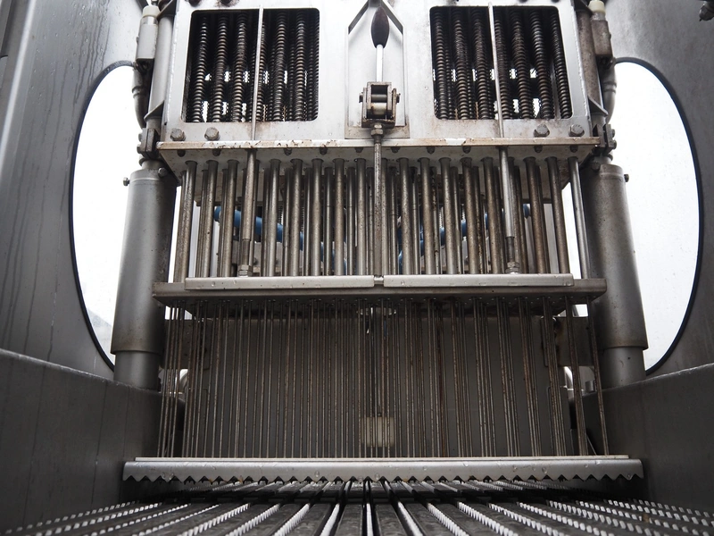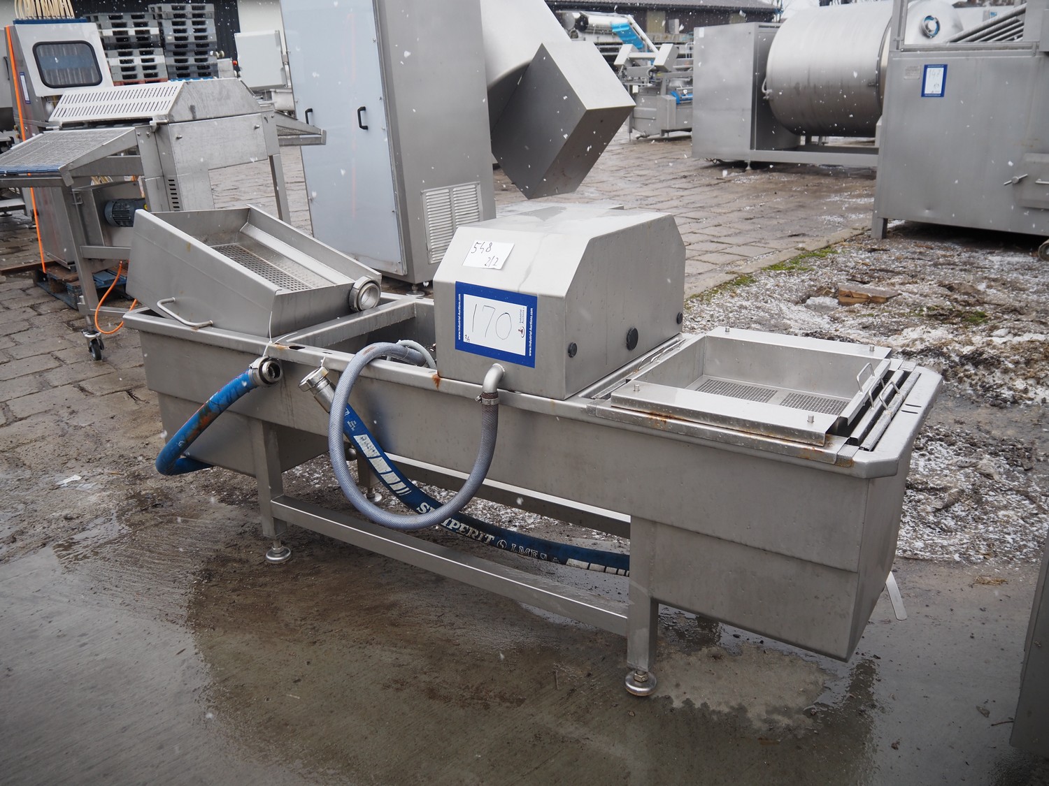 Inject star double injector, type: BI-408-C/152, serial number: BI408-169, year of construction: 2006, 400 V, 3 Ph, 50 Hz, 26 kW, belt width: 600 mm, (2x) 76 needles, total dimensions: 2900 mm x 1100 mm x 2300. Including mobile filter tub, dimensions: 2150 mm x 600 mm x 1050 mm.