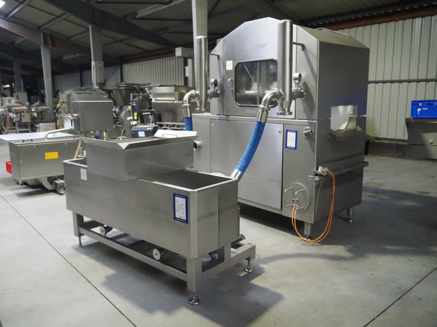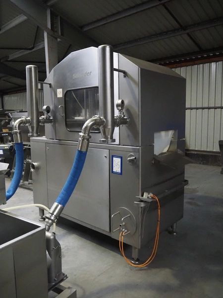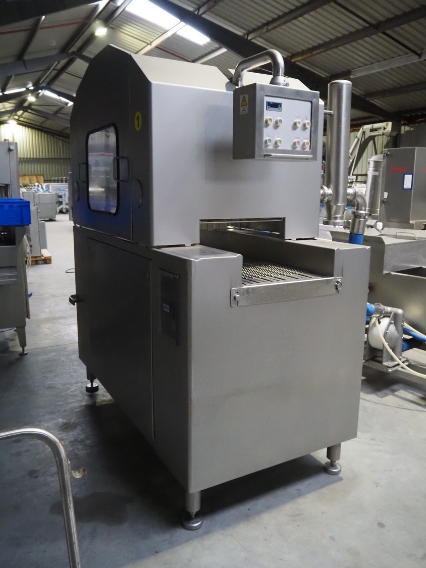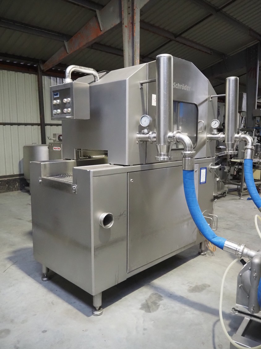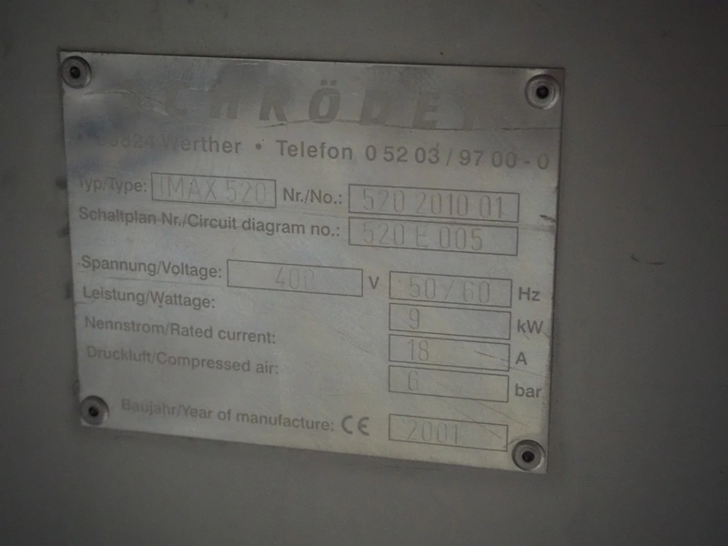 Schröder injector, type: IMAX 520, serial number: 520 2010 01, year of construction: 2001, 400 V, 50/60 Hz, 18 A, 9 kW, s/s walking beam, beam width: 510 mm, total dimensions: 2250 mm x 1600 mm x 2350 mm. Including filter tub, dimensions: 1900 mm x 1200 mm x 1500 mm.