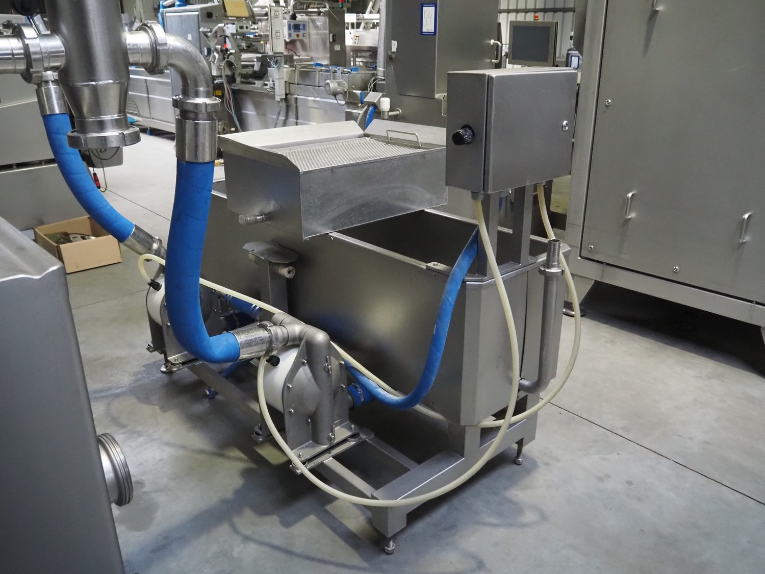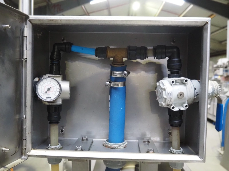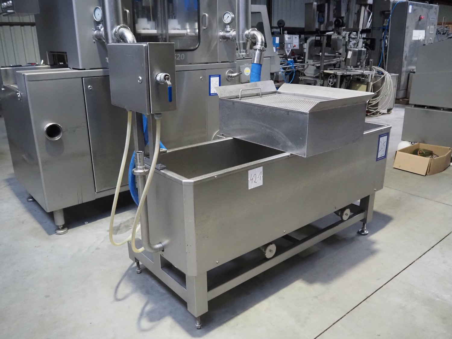 Schröder injector, type: IMAX 520, serial number: 520 2010 01, year of construction: 2001, 400 V, 50/60 Hz, 18 A, 9 kW, s/s walking beam, beam width: 510 mm, total dimensions: 2250 mm x 1600 mm x 2350 mm. Including filter tub, dimensions: 1900 mm x 1200 mm x 1500 mm.