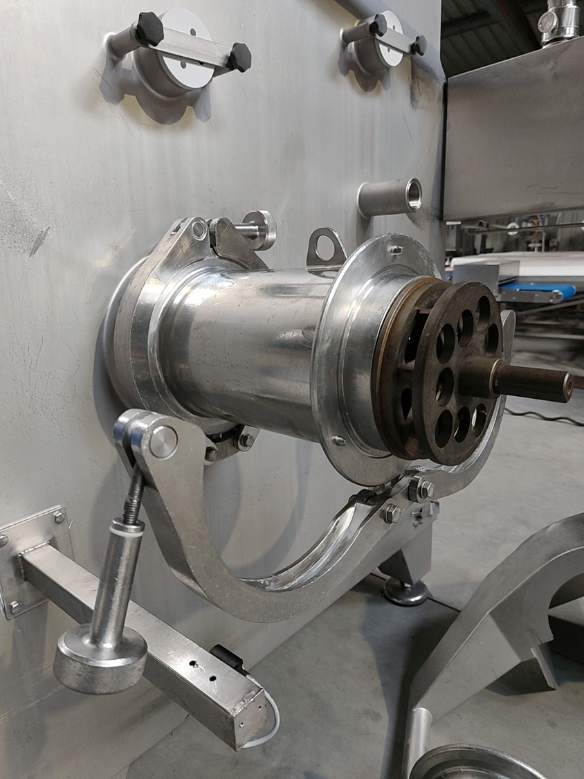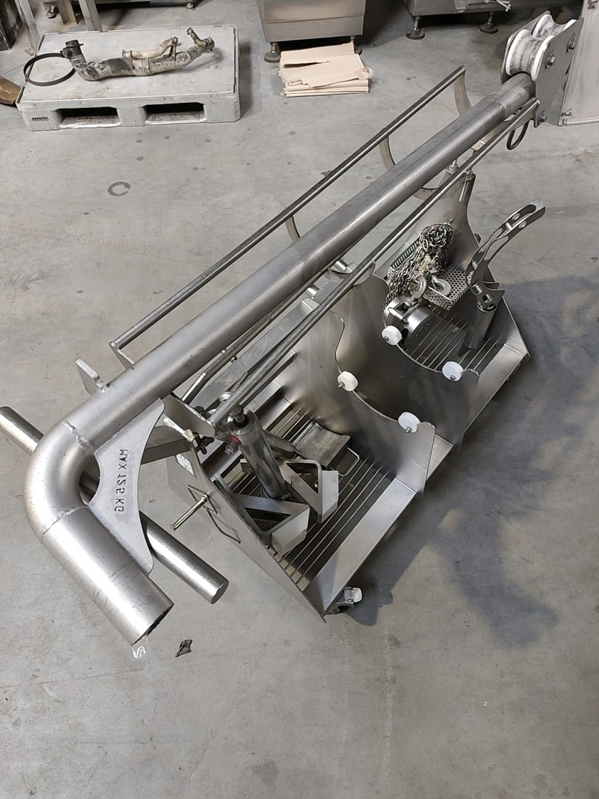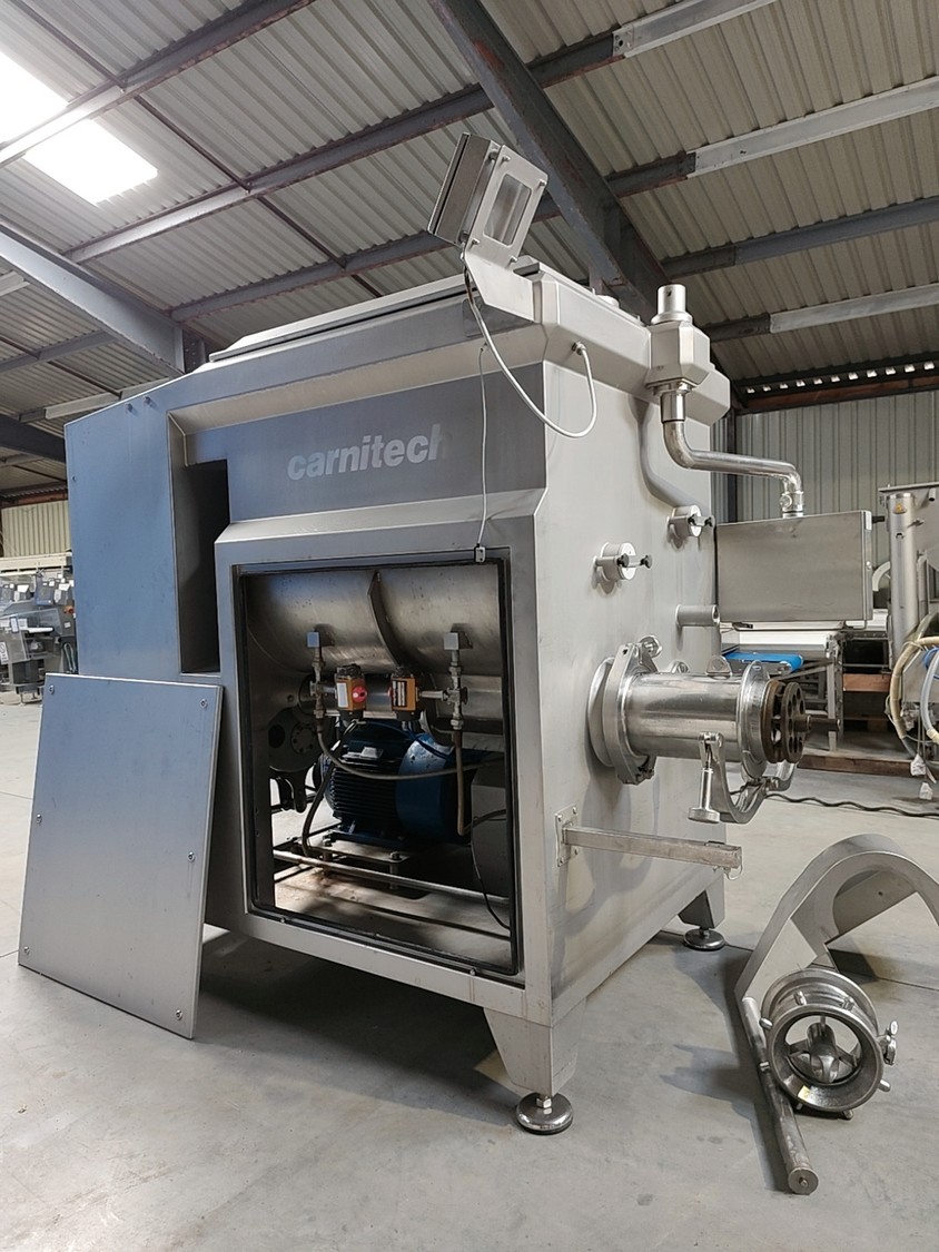Carnitech mixer-grinder, model: CT3204, year of construction: 2005, 400V, 3 Ph, 50 Hz, dimensions: 3900 mm x 1450 mm x 2500 mm. Including trolley for components, dimensions: 1800 mm x 700 mm x 1100 mm.