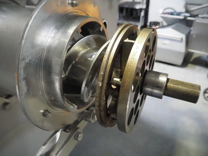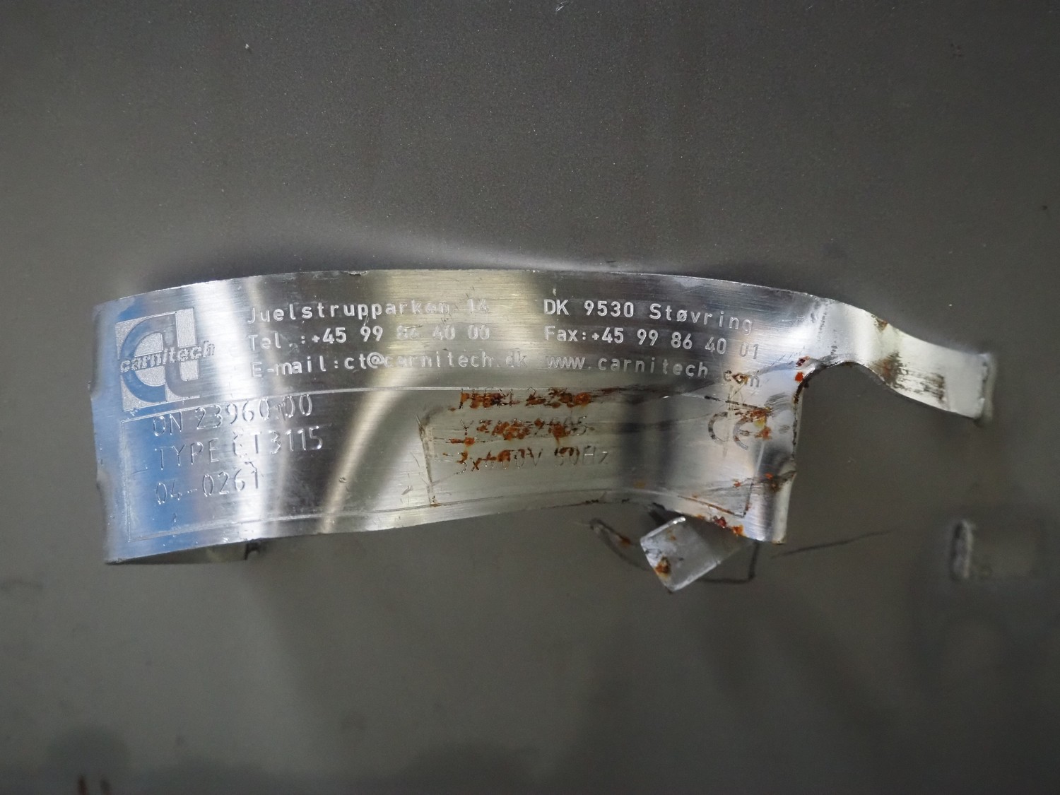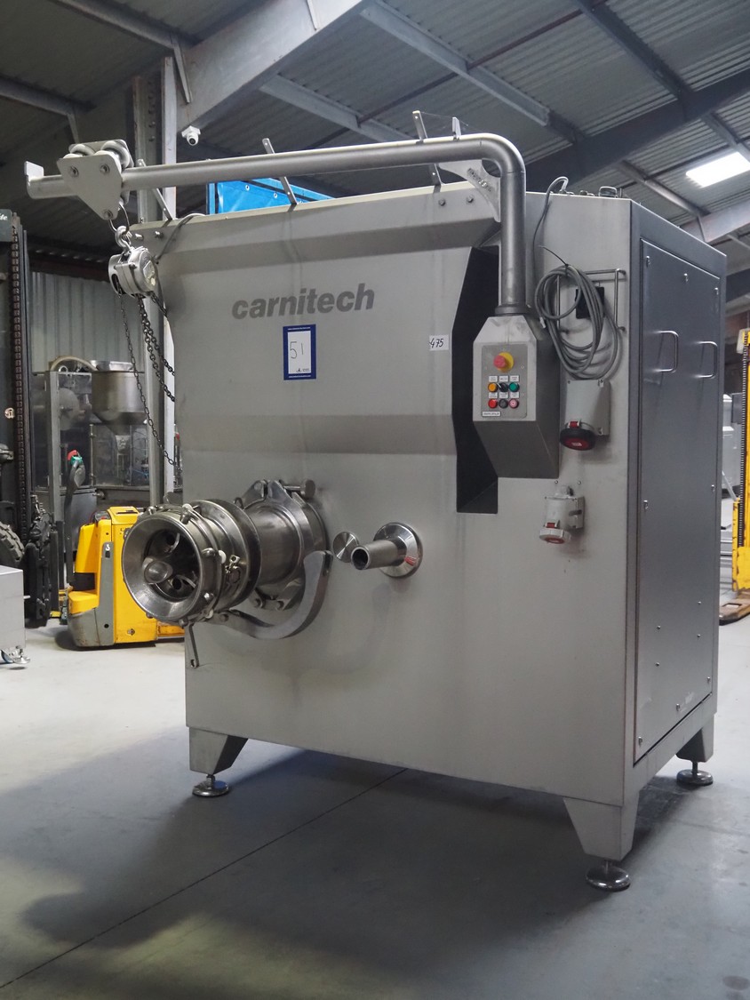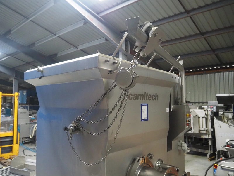 Carnitech mixer-grinder, type: CT3115, serial number: 04-0261, year of construction: 2005, 400 V, 3 Ph, 50 Hz, plate diameter: 250 mm, total dimensions: 2300 mm x 1950 mm x 2500 mm.