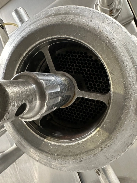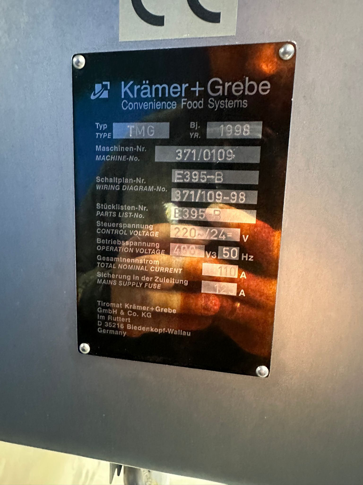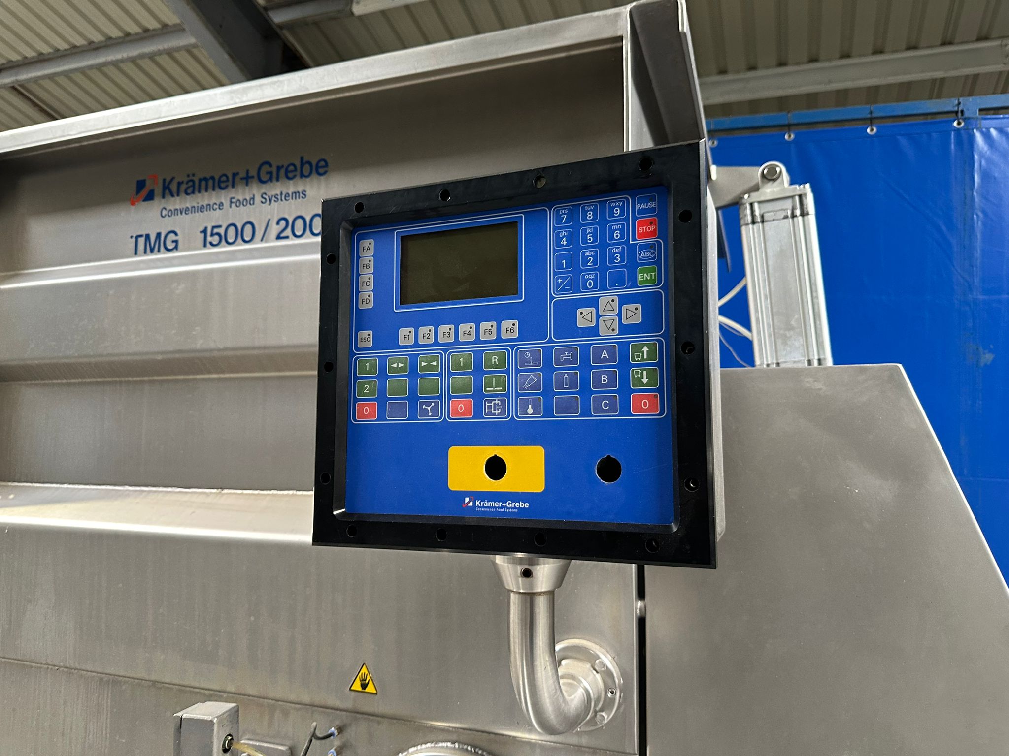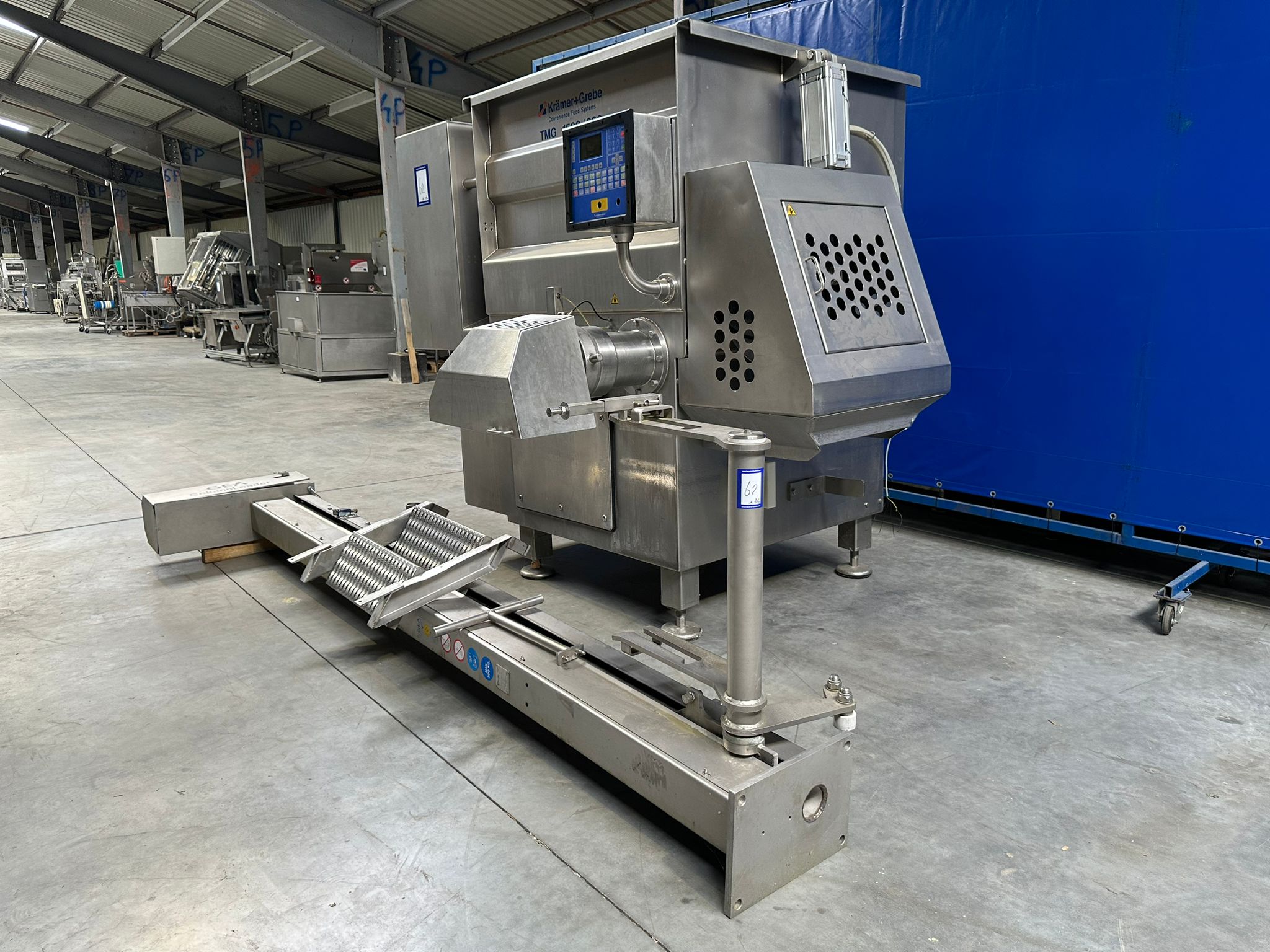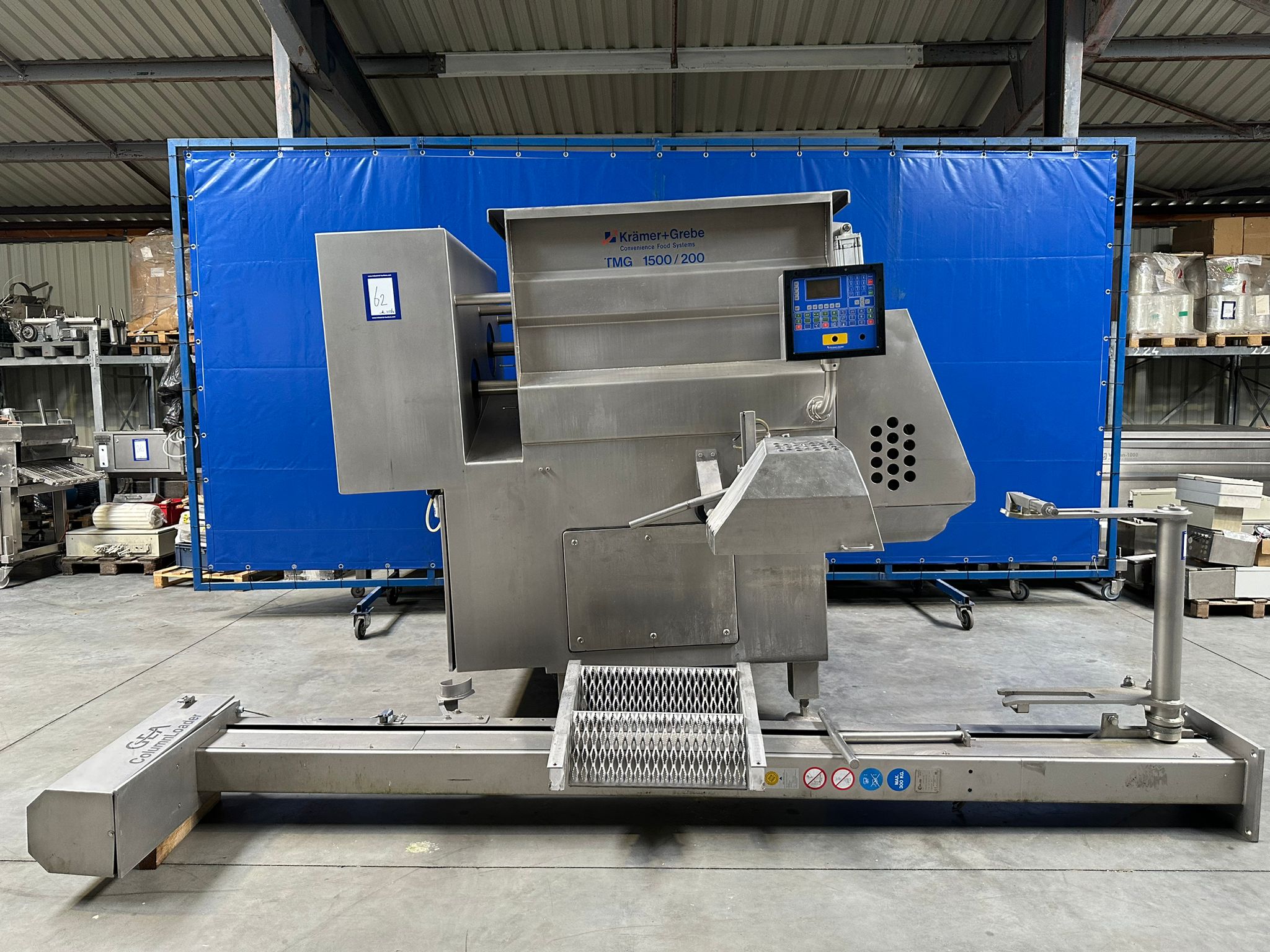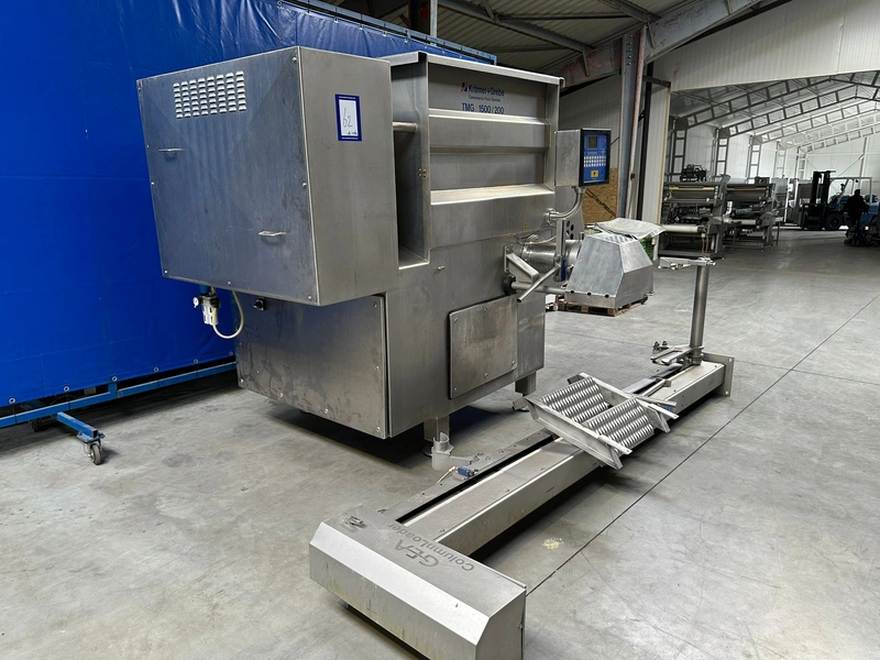 Krämer + Grebe mixer-grinder with GEA lifter for 200 liter meat bins, type lifter: Column Loader 300S, serial number: E011270605473/7984, year of construction: 04/2010, 400 V, 3 Ph, 50 Hz, 2.1 A, 0.75 kW, type grinder: TMG, machine number: 371/0109, year of construction: 1998, 400/2000 V, 3 Ph, 50 Hz, 110/125 A, capacity: 1500 liter, diameter plate: 200 mm, dimensions grinder: 2900 mm x 2400 mm x 2350 mm, dimensions lifter: 2900 mm x 600 mm x 100 mm.