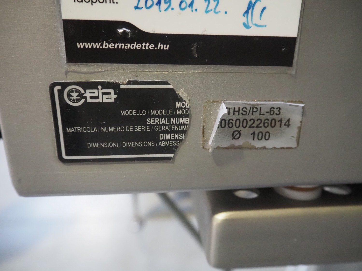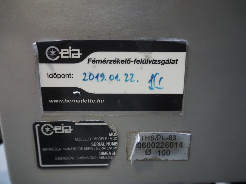Ceia S.p.A. mobile pipeline metal detector, model: THS/PL-63, serial number: 20600226014, 230 V, 50-60 Hz, clearance: Ø 100 mm, total dimensions: 580 mm x 360 mm x 1580 mm.