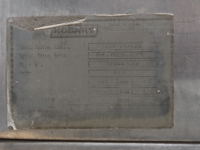 Hobart combi steamer, type: CD.20126, serial number: 81.825.475, 415 V, 3 Ph, 50 Hz, 20 floors, floor dimensions: (20x) 325 mm x 535 mm, total dimensions: 1100 mm x 1150 mmm x 1920 mm.