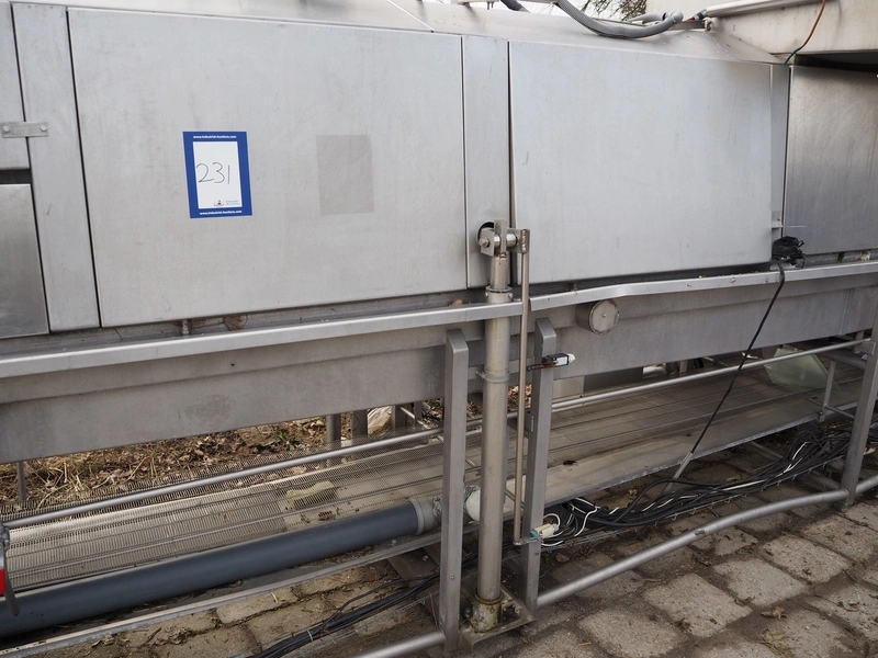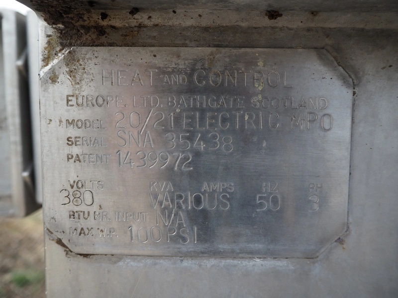 Heat and Control linear oven, model: 20/21 Electric MPO, serial number: SNA 35438, 380 V, 3 Ph, 50 Hz, s/s mesh belt, belt width: 600 mm, electric heated, total dimensions: 9230 mm x 1610 mm x 2530 mm.