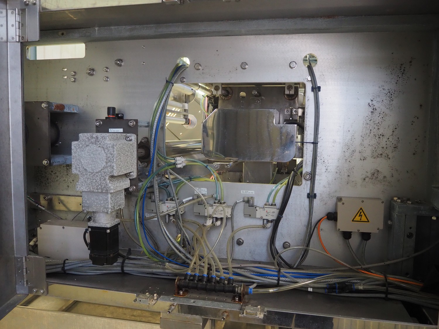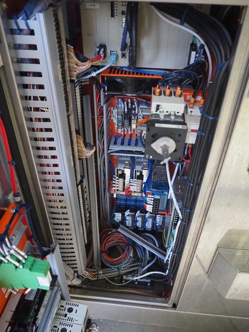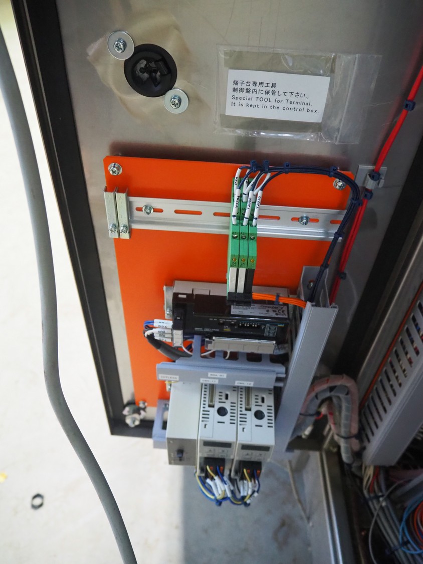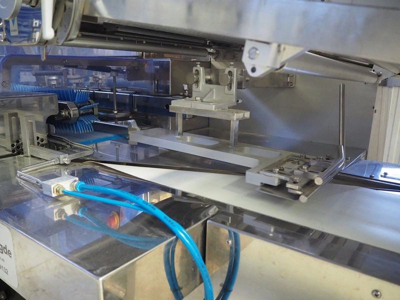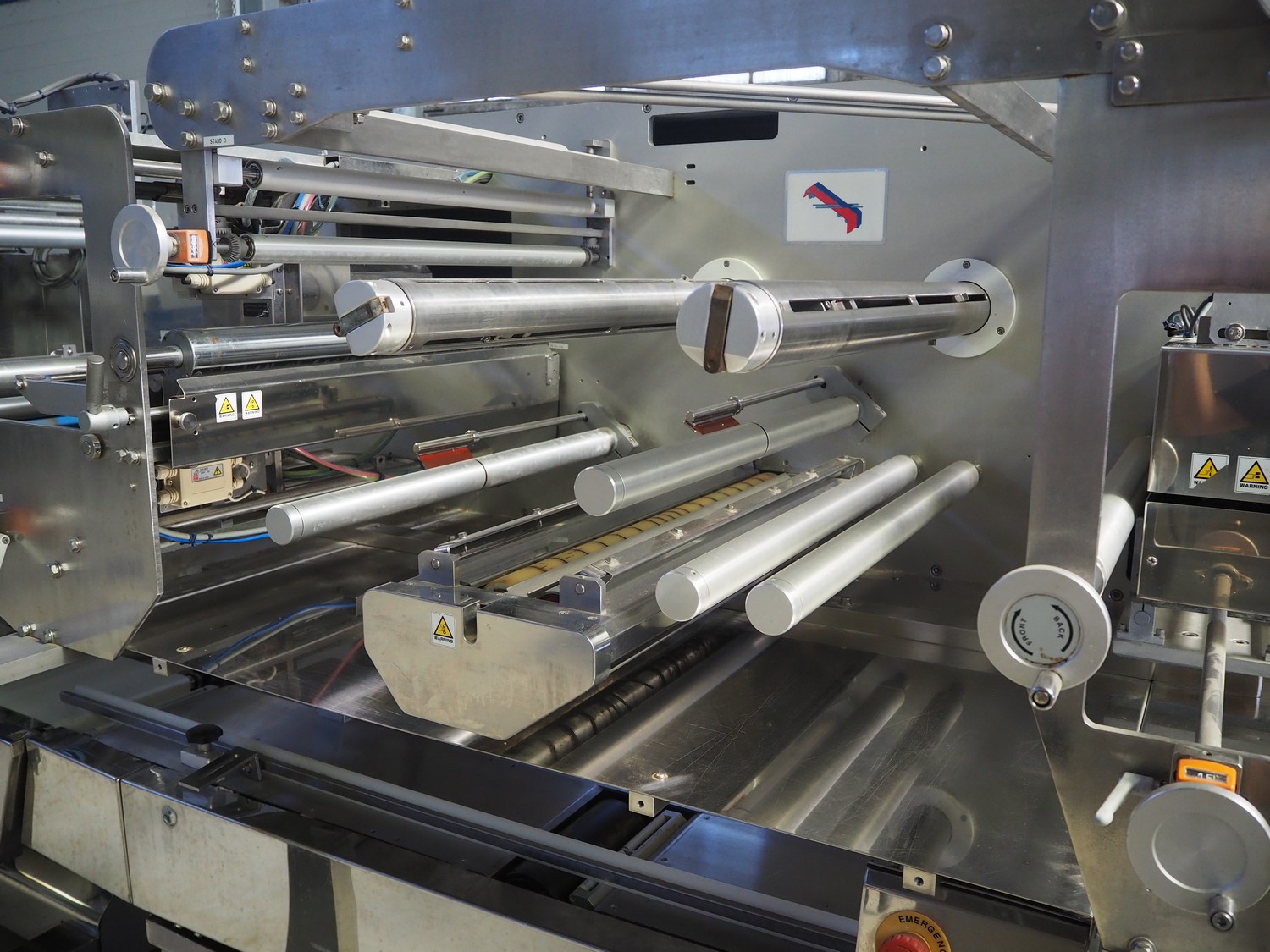 Fuji Machinery Co., Ltd. flowpacker, model: DDWQF-F10200A, type: FW3430, serial number: D0157J525010009, year of construction: 7-2015, 200/220 V, 3 Ph, 50/60 Hz, 5 KVA, with film printing units, plastic belt, belt width: 240 mm, seal length: 295 mm, total dimensions: 5650 mm x 1500 mm x 1950 mm.