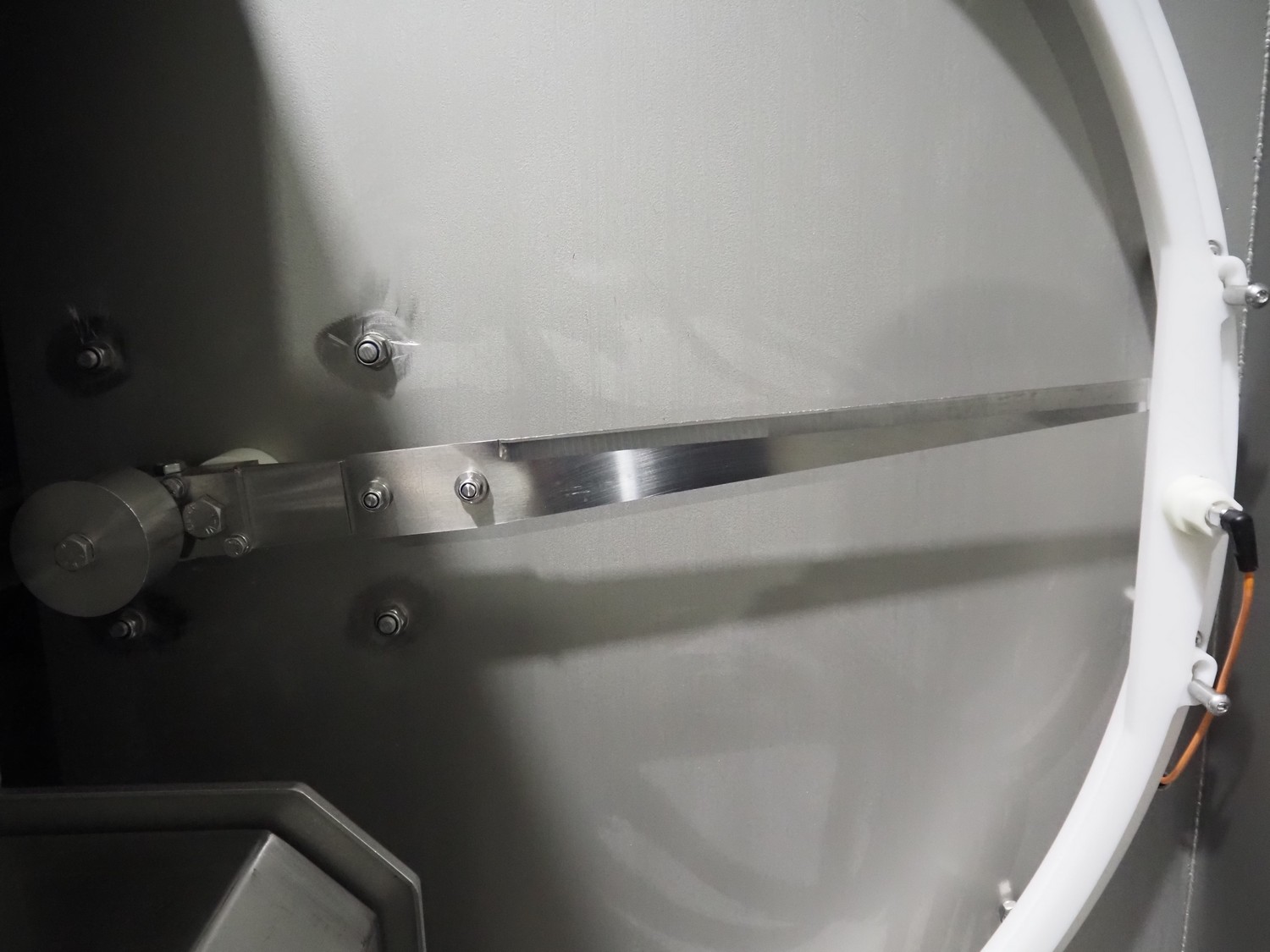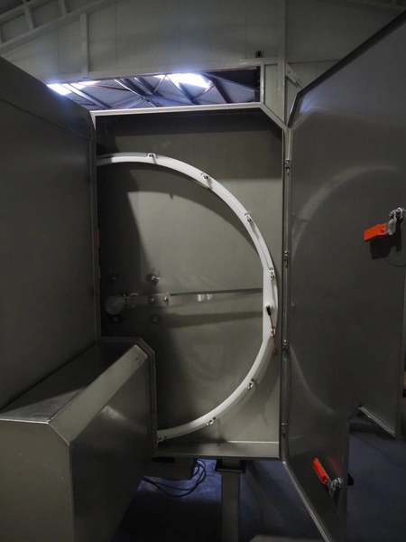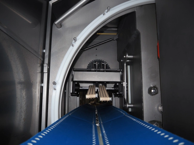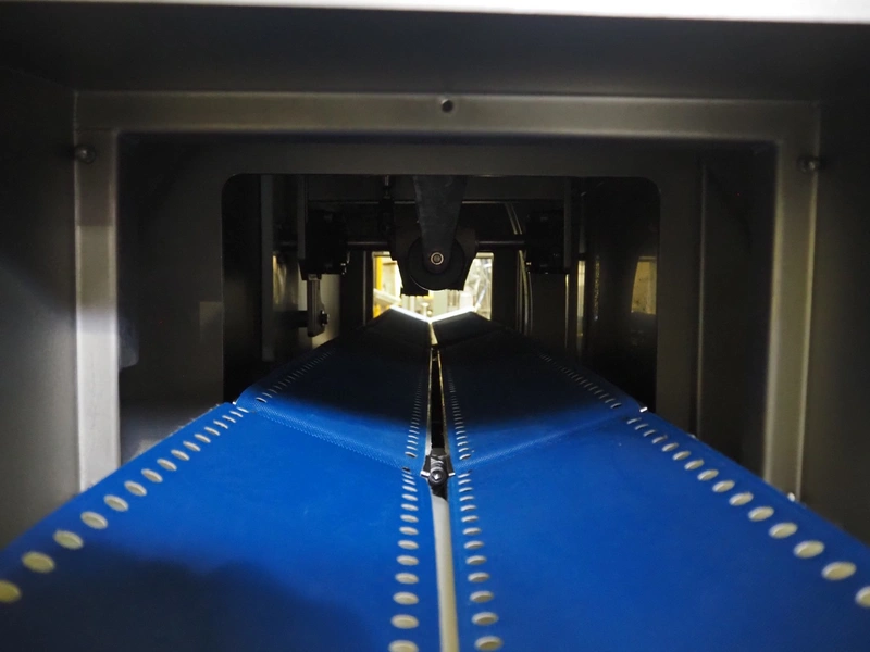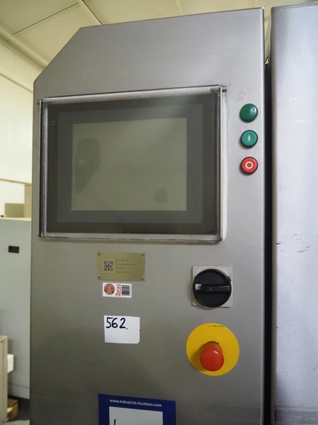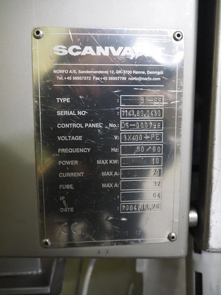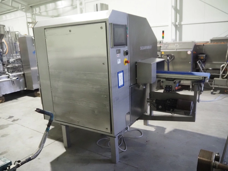 Scanvaegt / Marel portion cutter, type: B-55, serial number: 7143.80.0430, year of construction: 26-08-2004, 400 V, 3 Ph, 50/60 Hz, 20 A, 10 kW, plastic belt, belt width: 290 mm, clearance: 390 mm x 190 mm, total dimensions: 3400 mm x 1650 mm x 1800 mm.