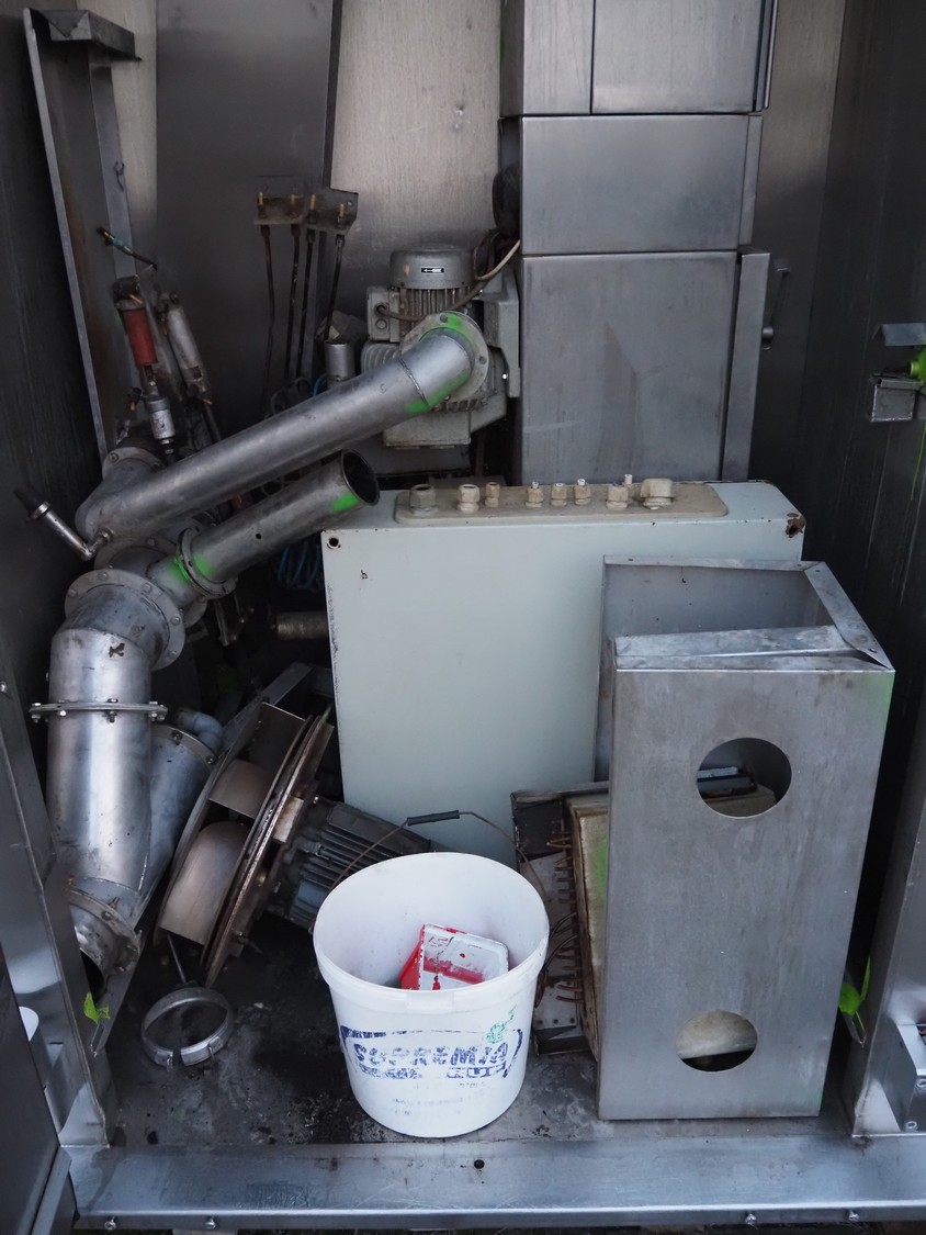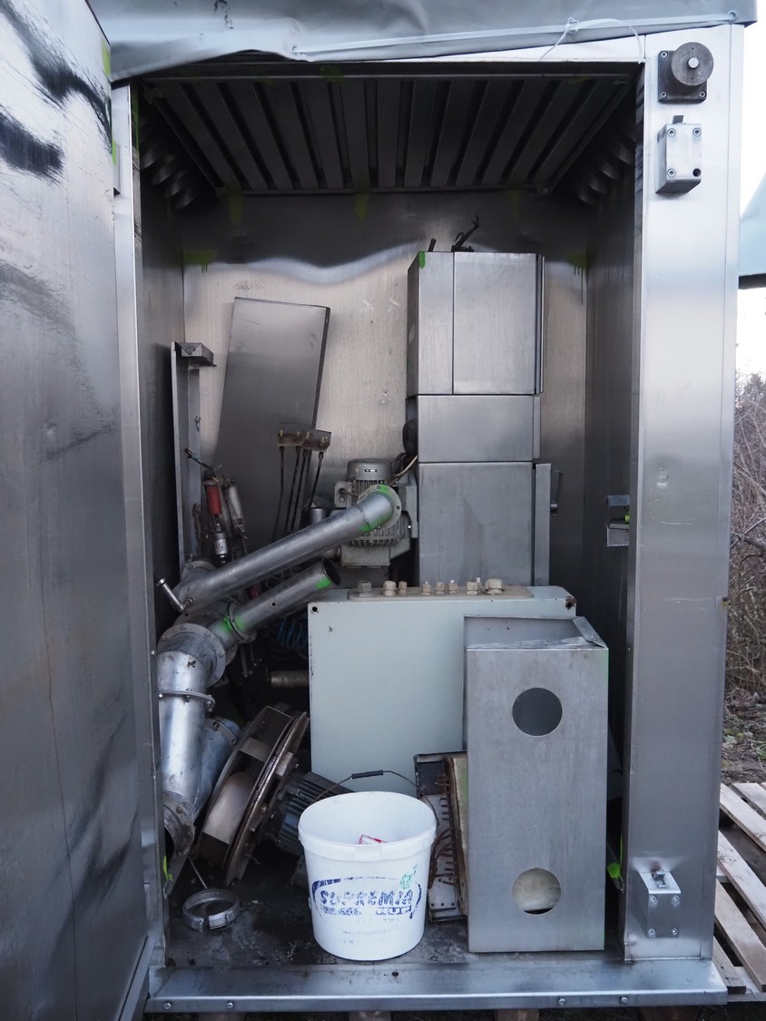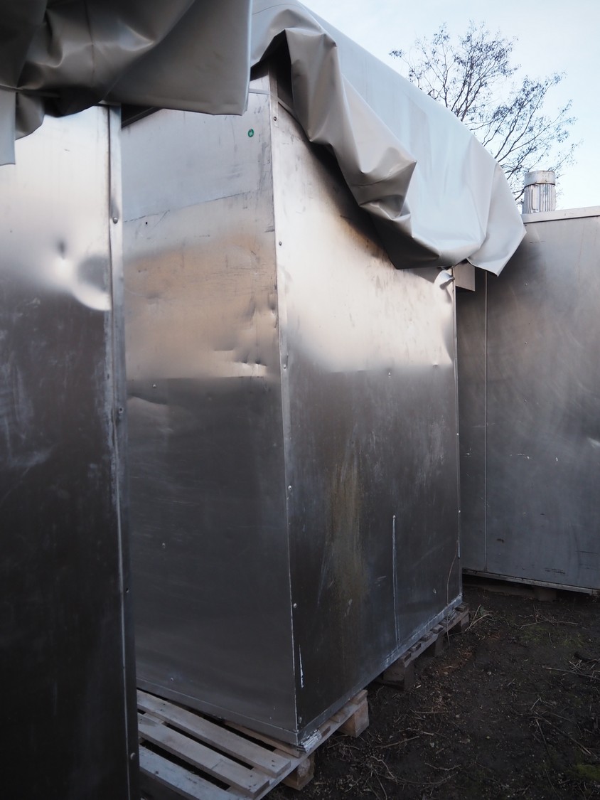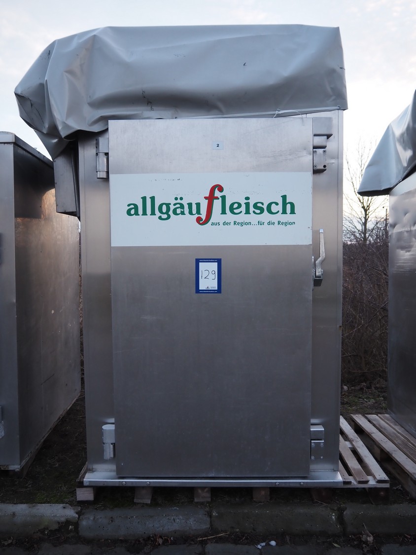 Fessmann smoke chamber for 1 trolley, inside dimensions: 1090 mm x 1030 mm x 2000 mm, with smoke generator, total dimensions: 1780 mm x 1280 mm x 2550 mm.