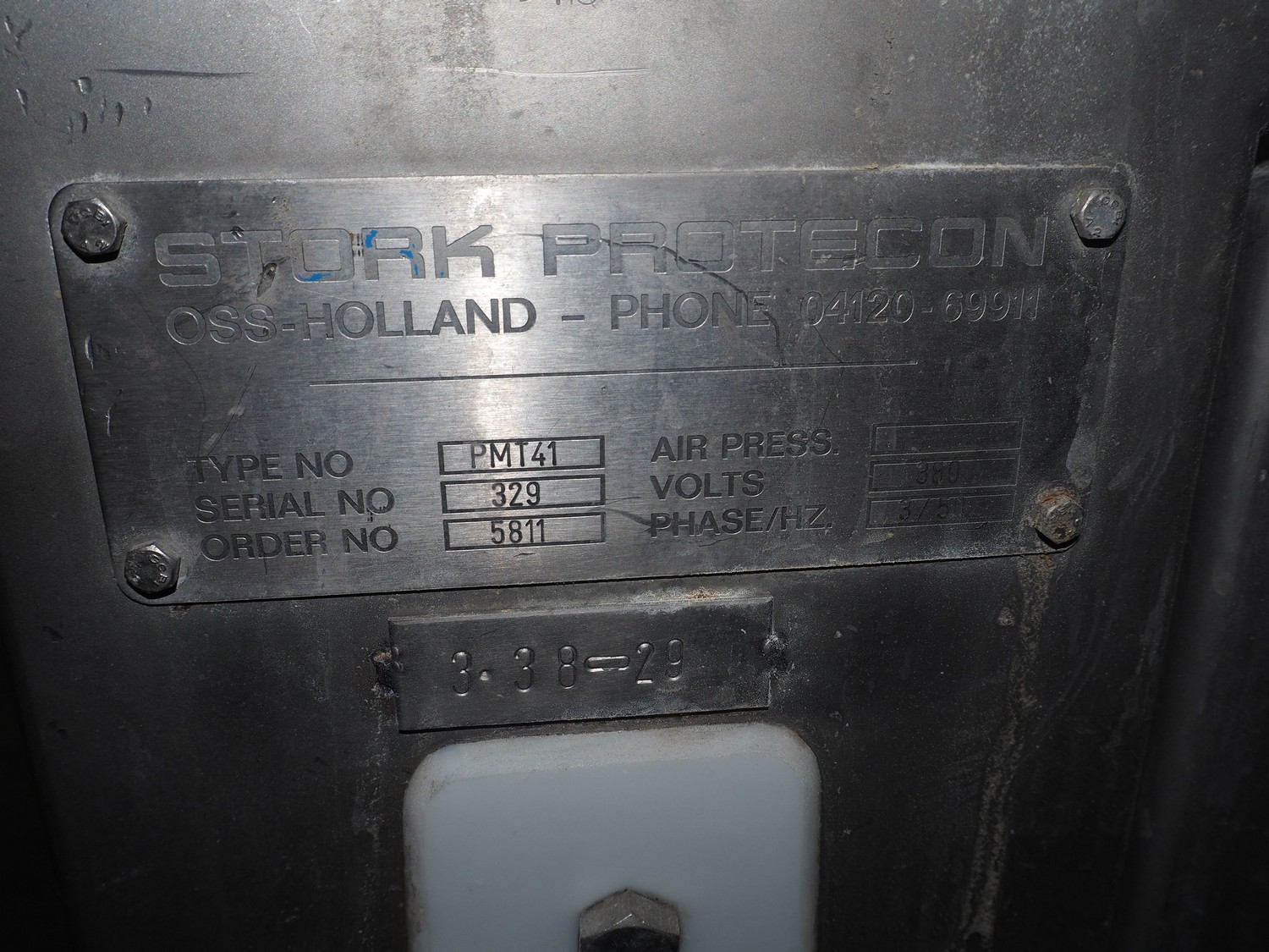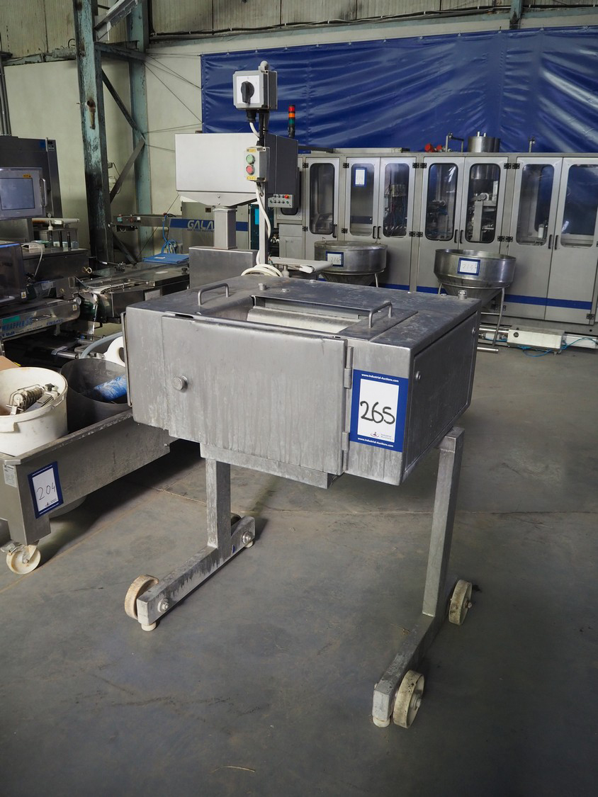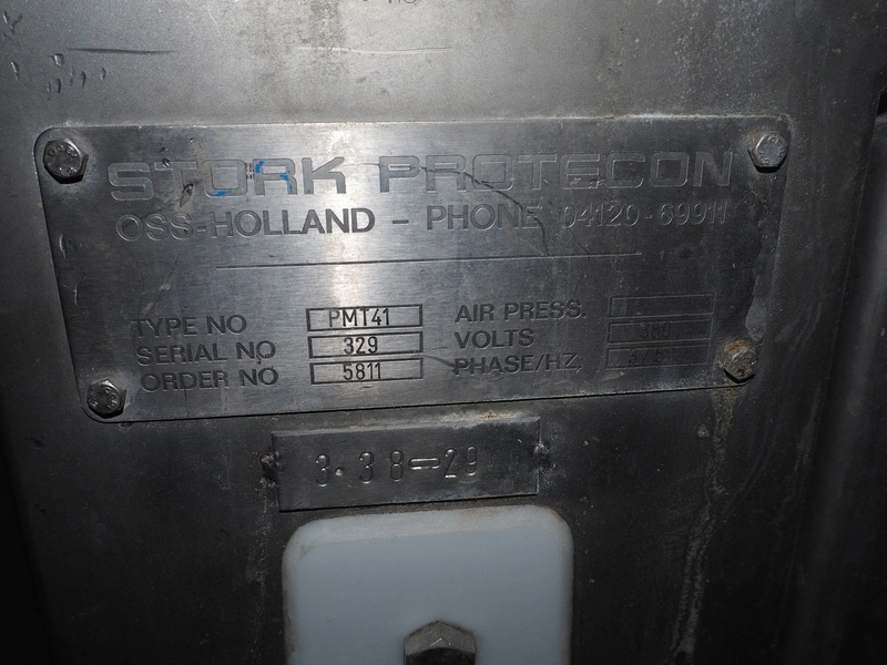 Stork Protecon mobile tenderizer, type: PMT41, serial number: 329, 380 V, 3 Ph, 50 Hz, working width: 410 mm, total dimensions: 1060 mm x 750 mm x 1940 mm.