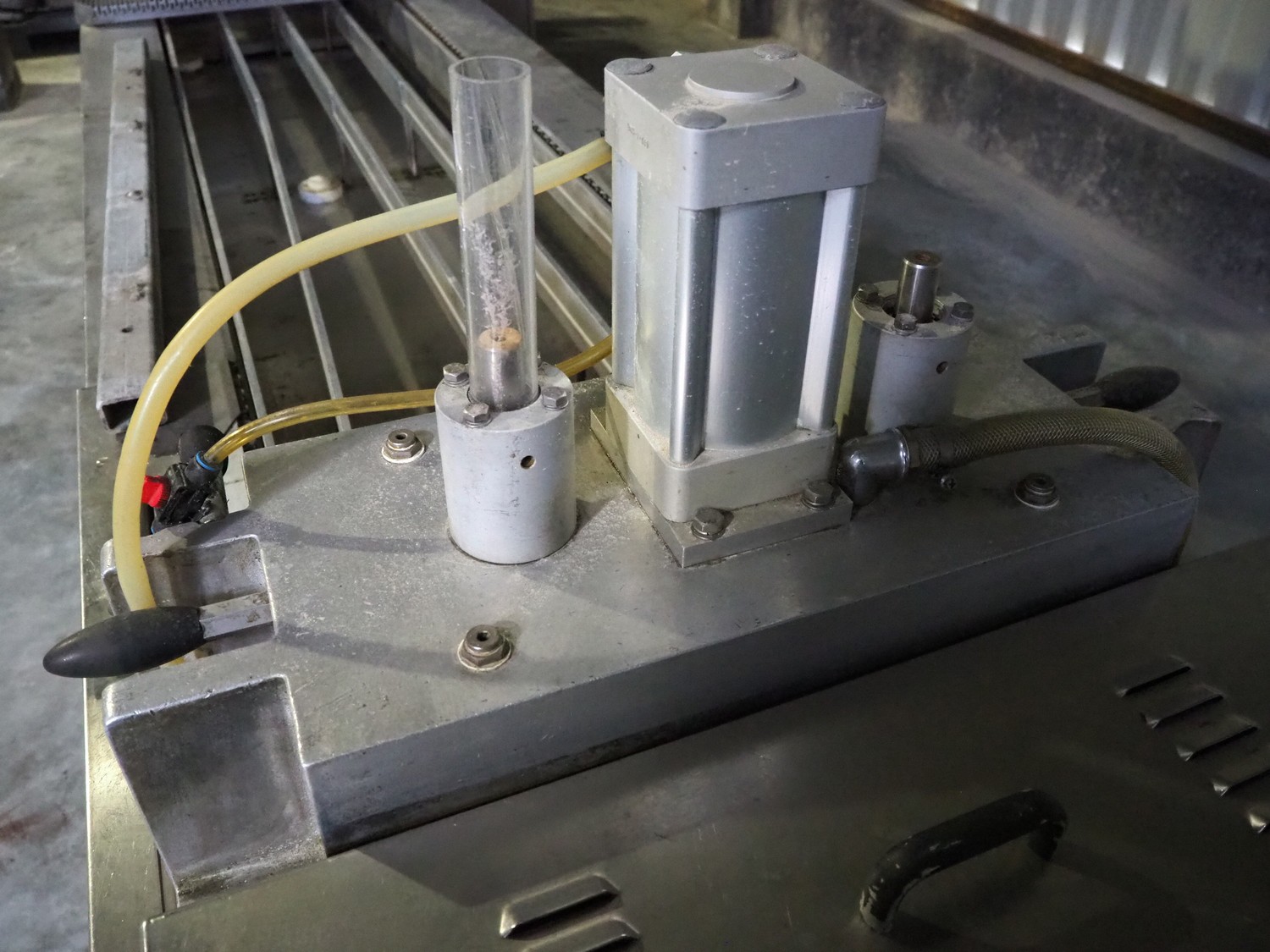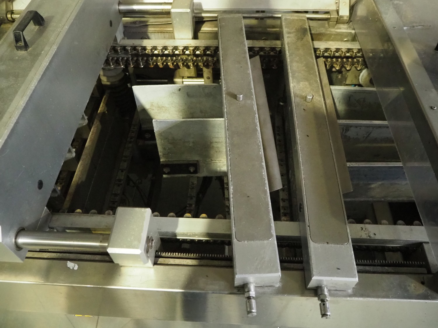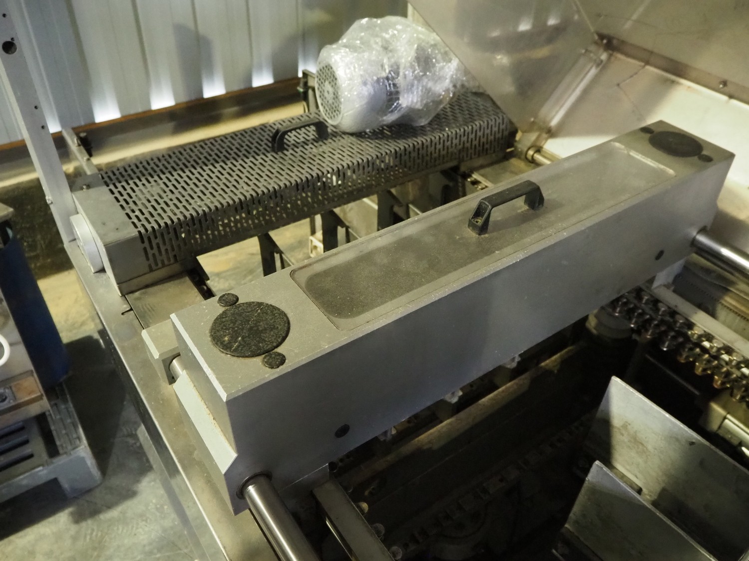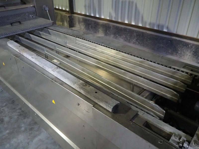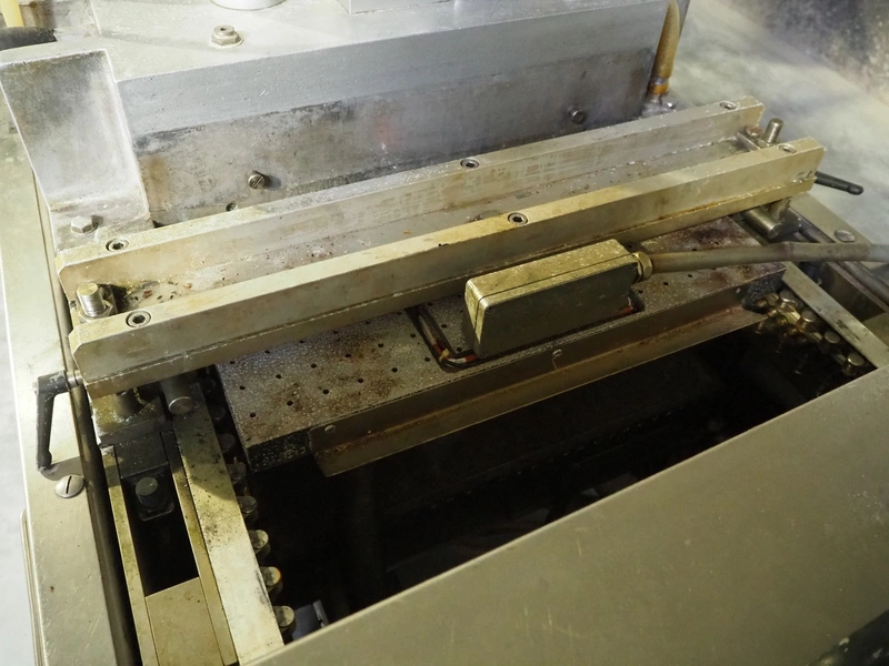 Tiromat thermoformer, type: Powerpack/680, number: 681/0245-98, dye: (4x) 250 mm x 115 mm, total dimensions: 7000 mm x 1300 mm x 2400 mm. Including outfeed belt, plastic belt, belt width: 600 mm, dimensions: 1500 mm x 800 mm x 600 mm. Without vacuum pump.